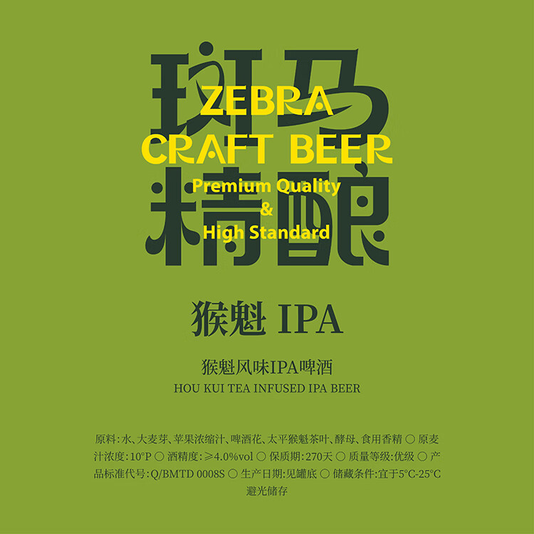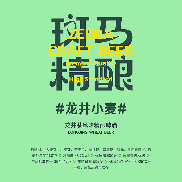 斑马精酿清新绿茶啤酒国风中式大容量原浆精酿IPA茶酒 龙井小麦 980mL 2罐