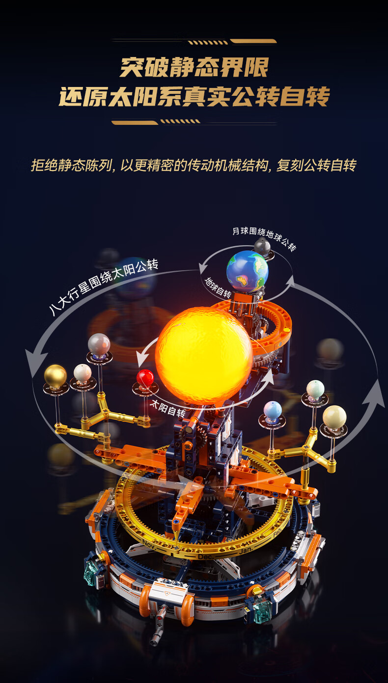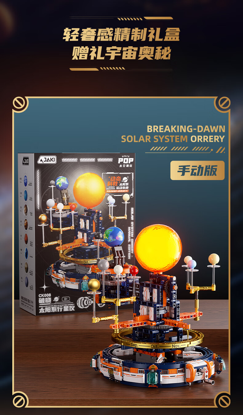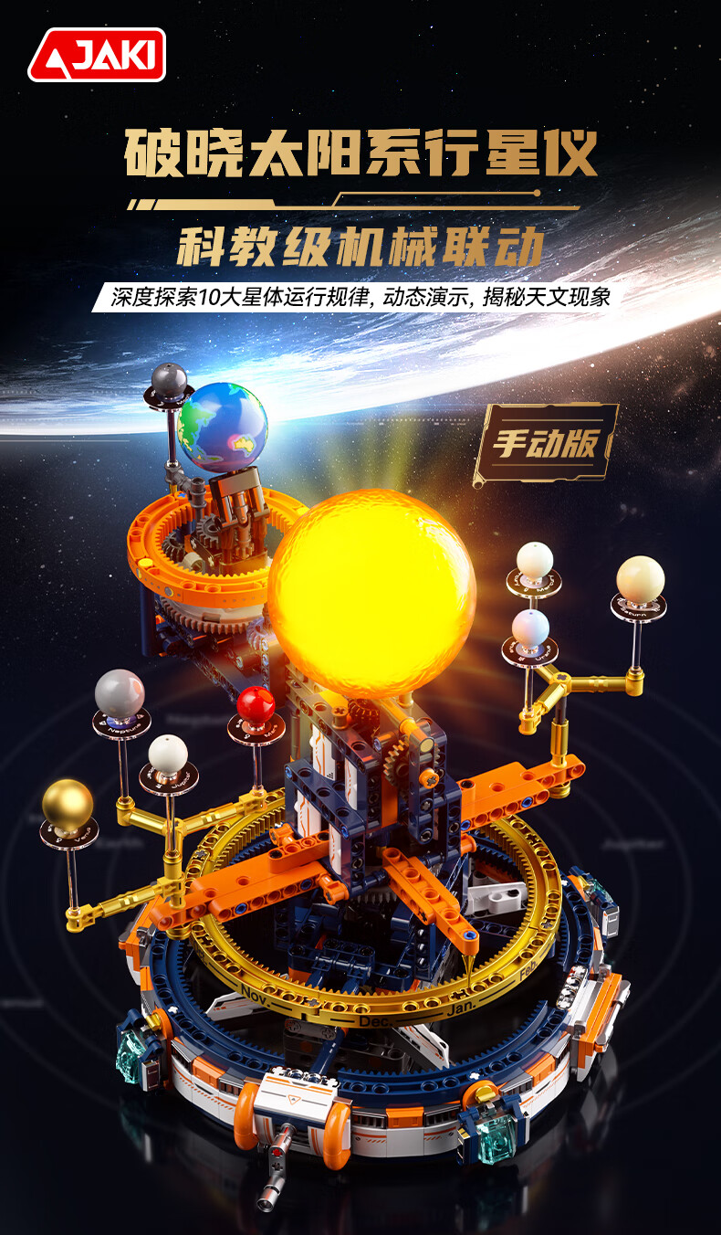 JAKI 佳奇积木拼装破晓太阳系行星仪模型儿童玩具成人男女孩生日礼物 破晓太阳系行星仪【电动版 顺丰包邮】