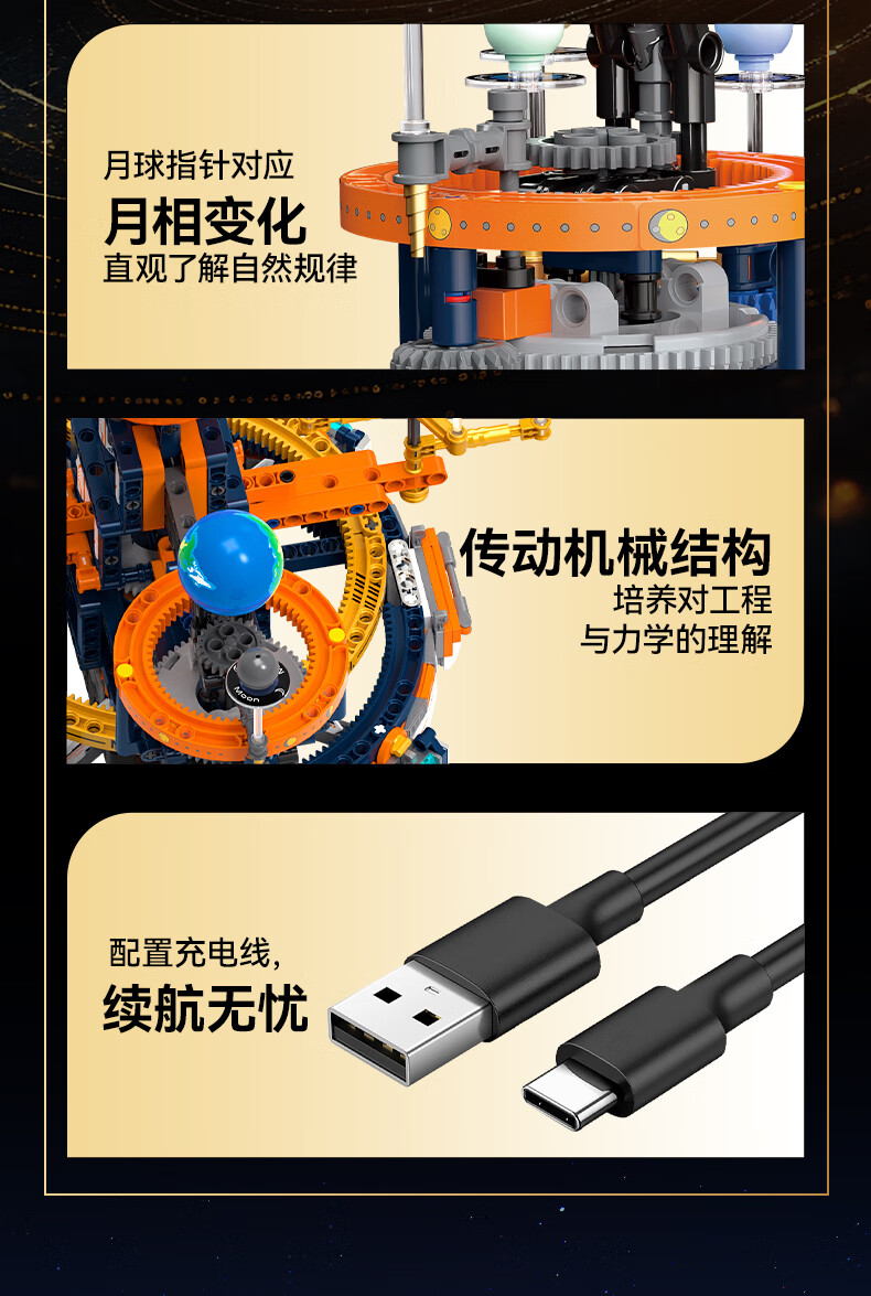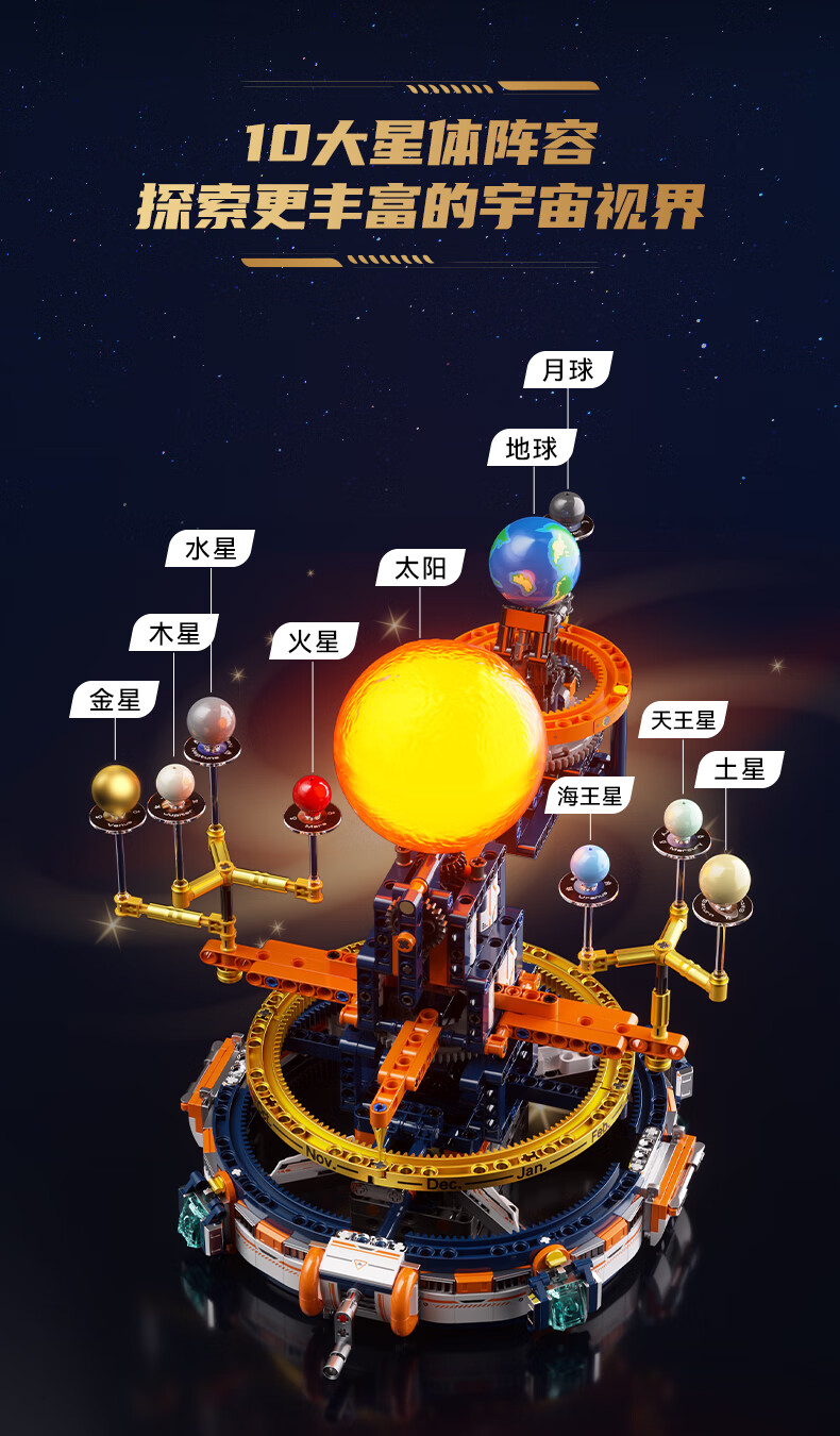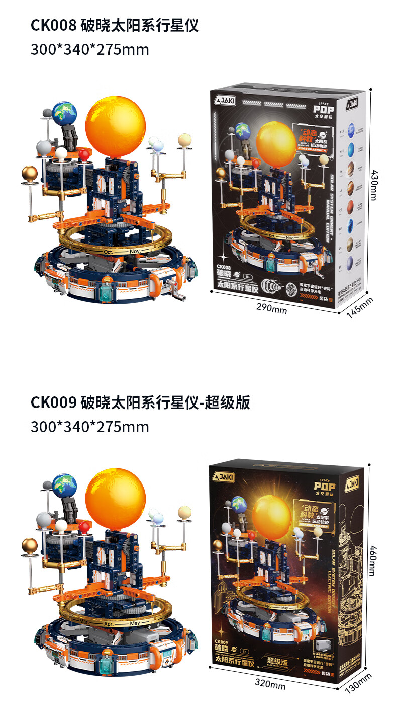 JAKI 佳奇积木拼装破晓太阳系行星仪模型儿童玩具成人男女孩生日礼物 破晓太阳系行星仪【电动版 顺丰包邮】