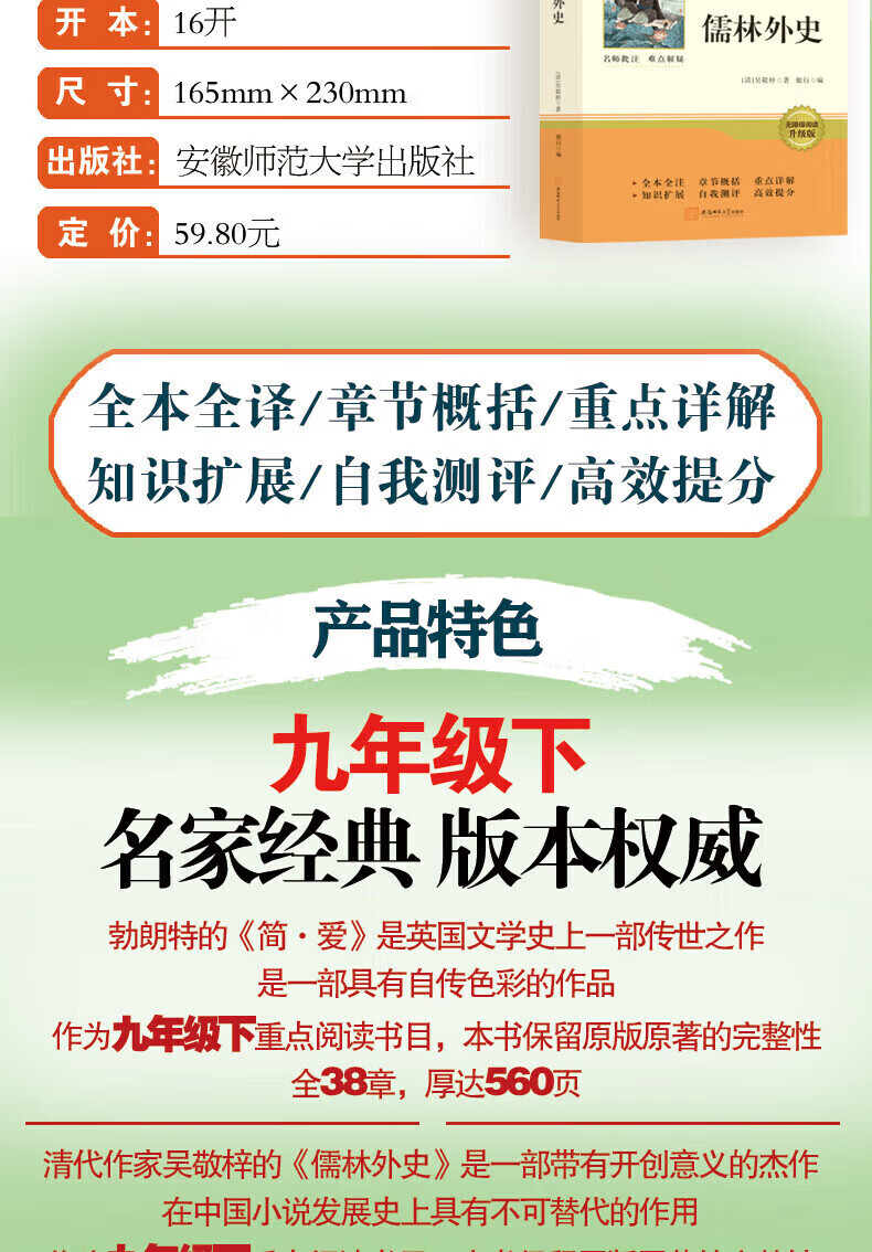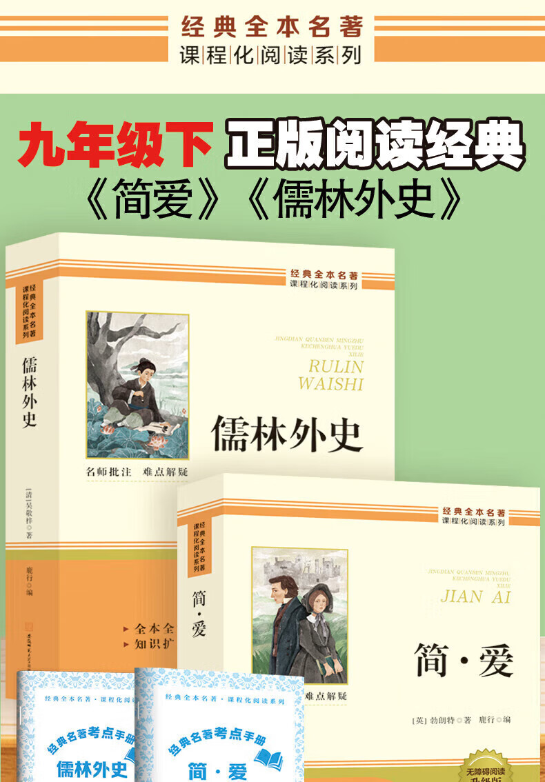当当【官方正版包邮】儒林外史 简爱和儒林外史 吴敬梓原著全套九年级下册必读正版课外阅读书籍推荐 水浒传 唐诗三百首 初中生初三9下学期语文书目文学名著 儒林外史简爱人民教育出版社 【热销2册】儒林外史