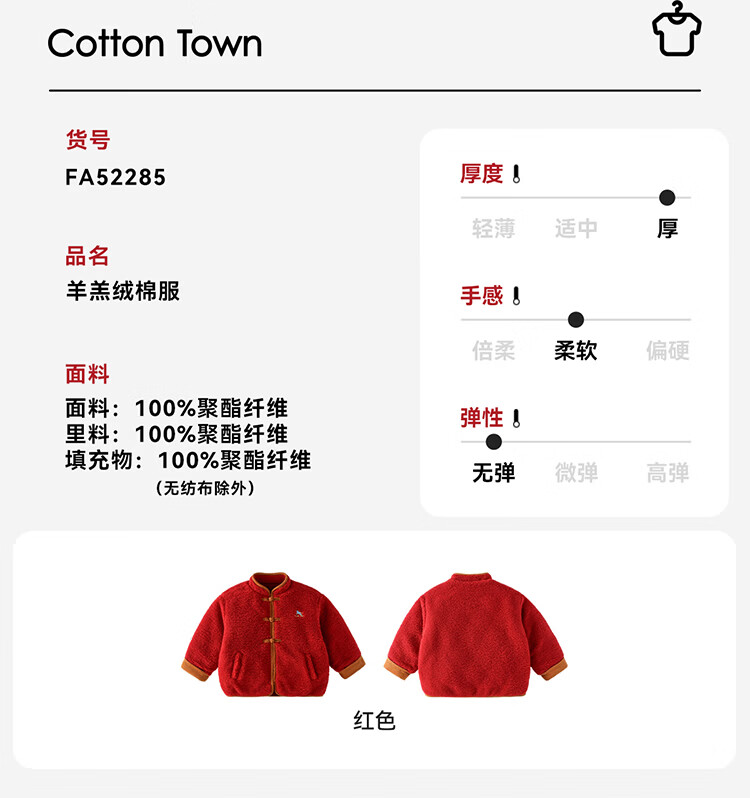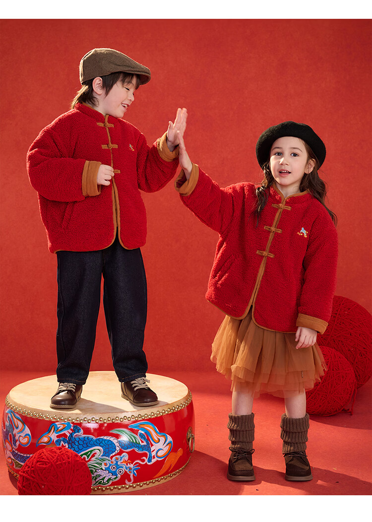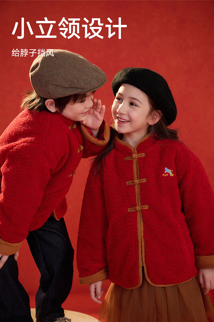 棉花堂(cottontown)【新年】棉花堂男童棉服红色拜年服儿童羊羔绒外套女童加厚棉袄冬 红色 140 140/68