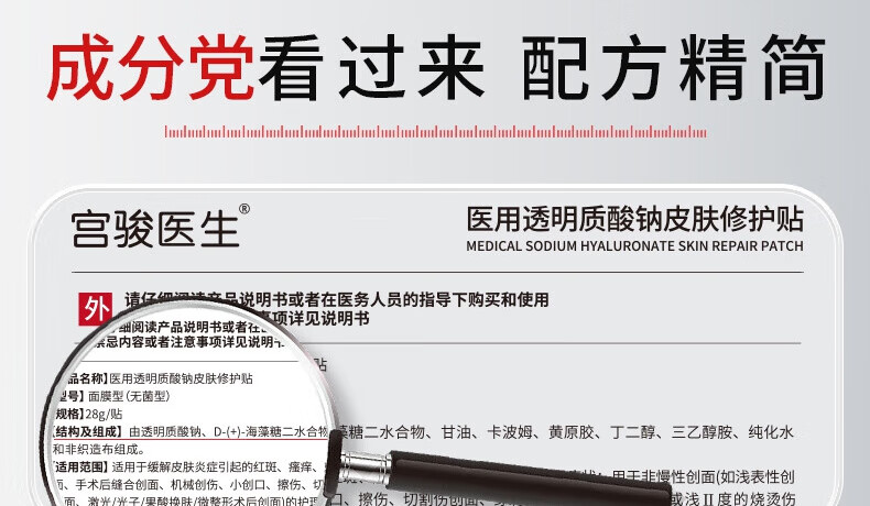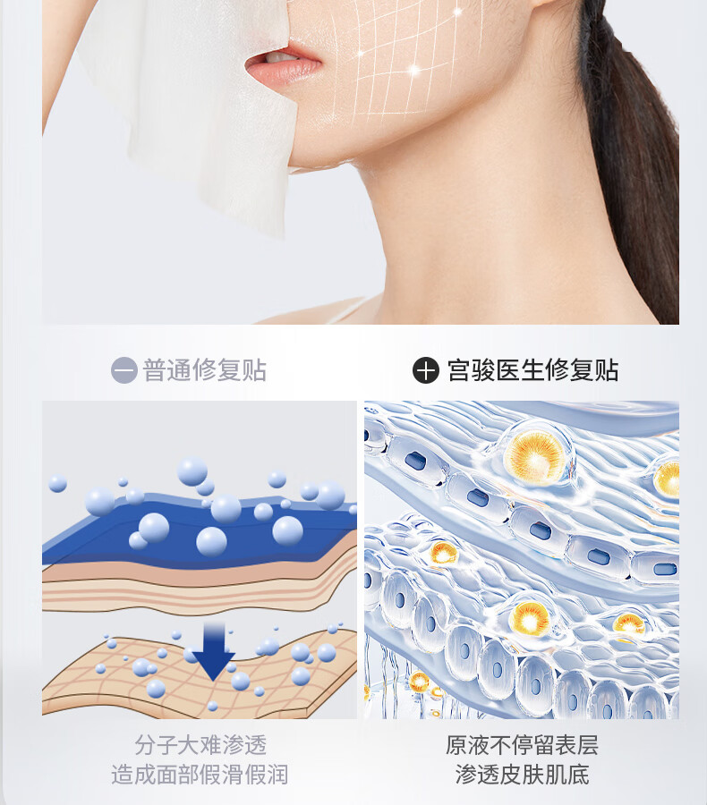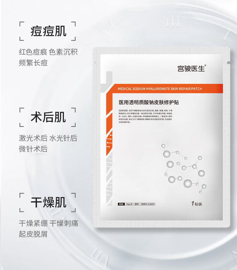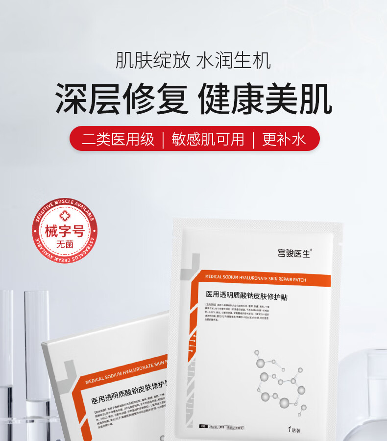 宫骏医生补水面膜医用面膜透明质酸钠修复贴光子术后修复面膜械字号 到手12贴【2盒一疗程】