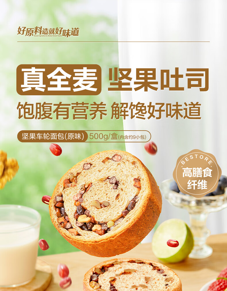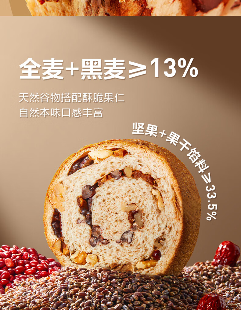 良品铺子全麦黑麦坚果面包早餐吐司欧包低脂代餐原味