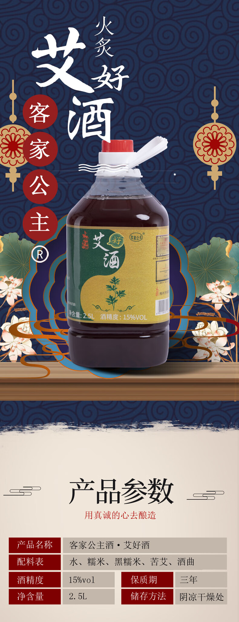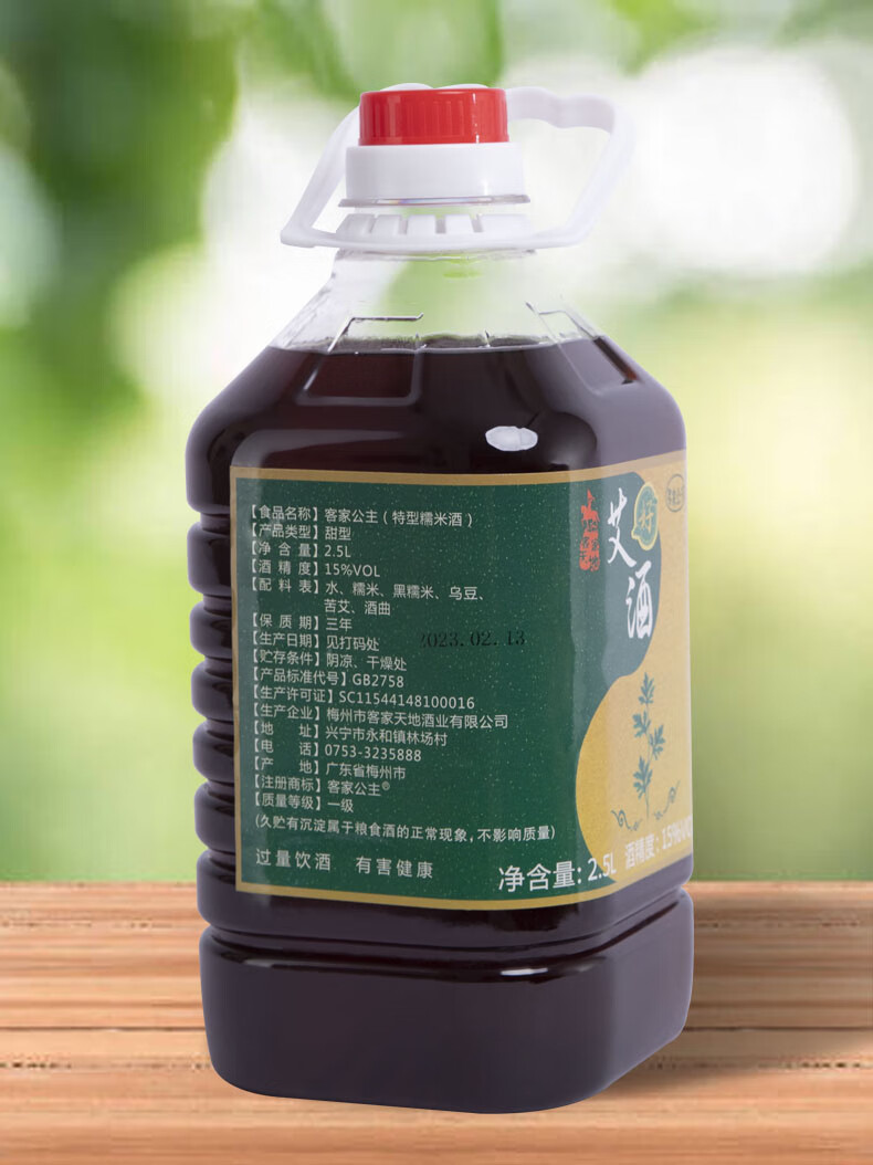 客家公主梅州火炙糯米黄酒娘酒 三年 甜型 五斤桶装 艾制品艾酒客家特产 火炙艾酒 2.5L 1桶