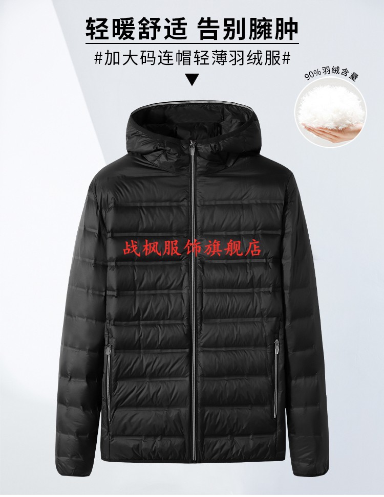 战枫特大码羽绒服男轻薄羽绒外套短款加肥加大胖子肥佬衣服300斤外套 黑色5501 L建议90-110斤