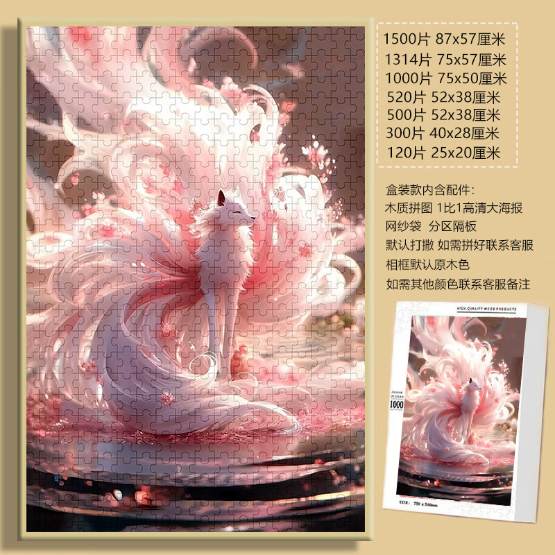 迪柏瑞国朝国风九尾狐龙虎拼图1000片带相框成人高颜值礼物儿童玩具 招狐-F471 120片拼图+实木相框