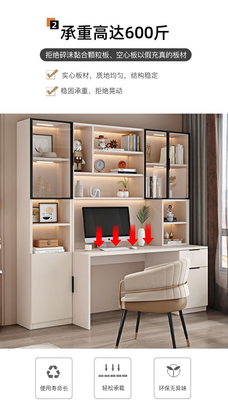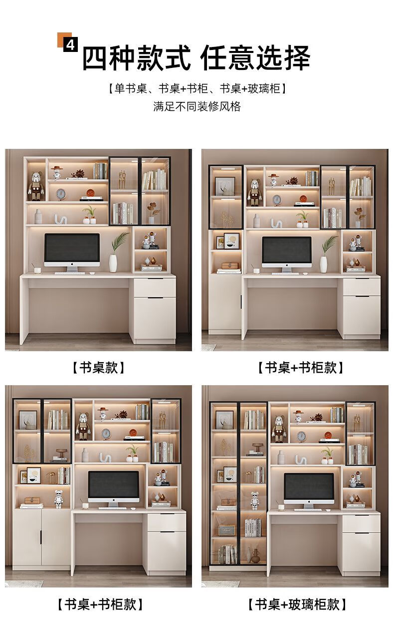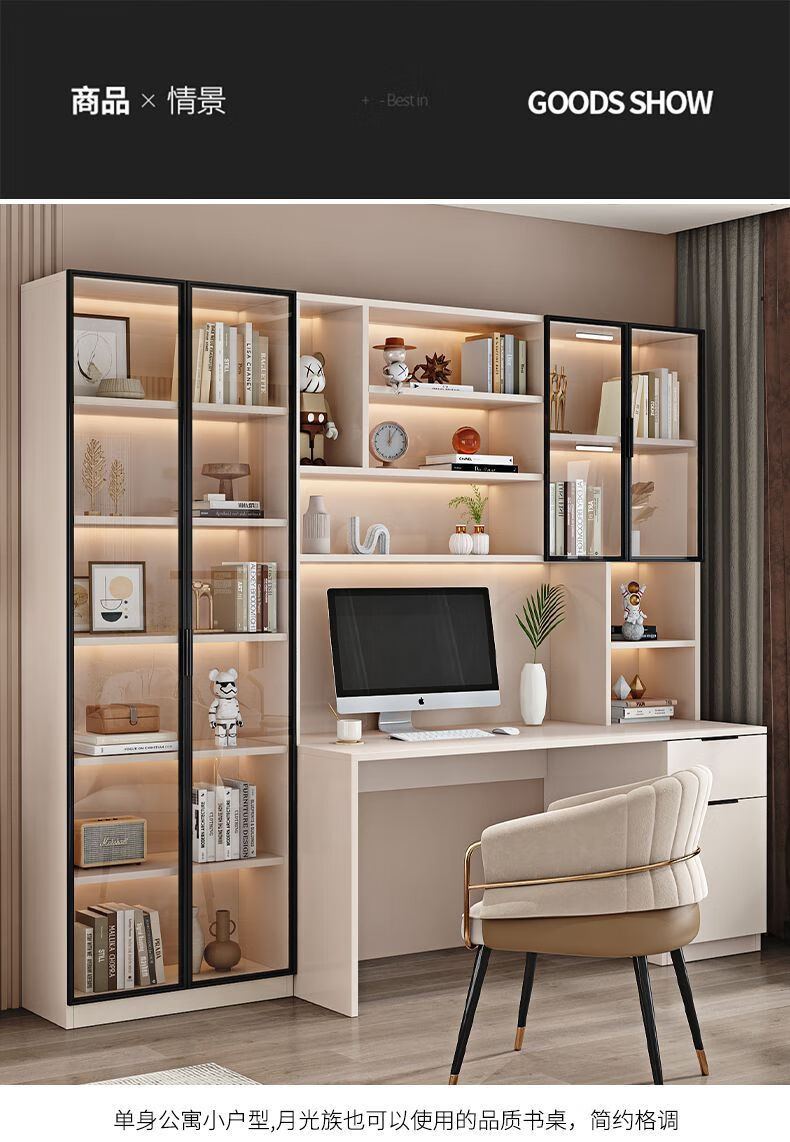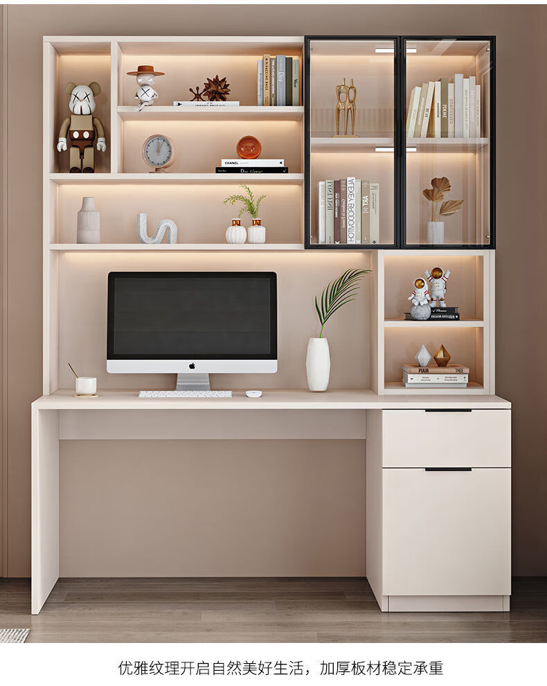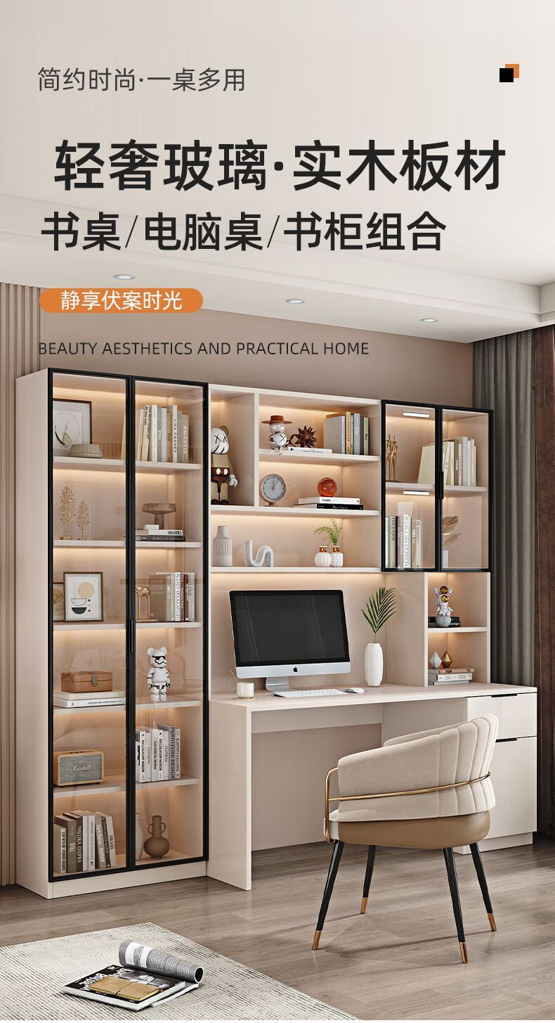 玉古轩2025新款电脑桌实木书桌书架一体桌台式组合办公桌学生家用学习桌 玻璃门100cm电脑桌 实木 送货到家包安装