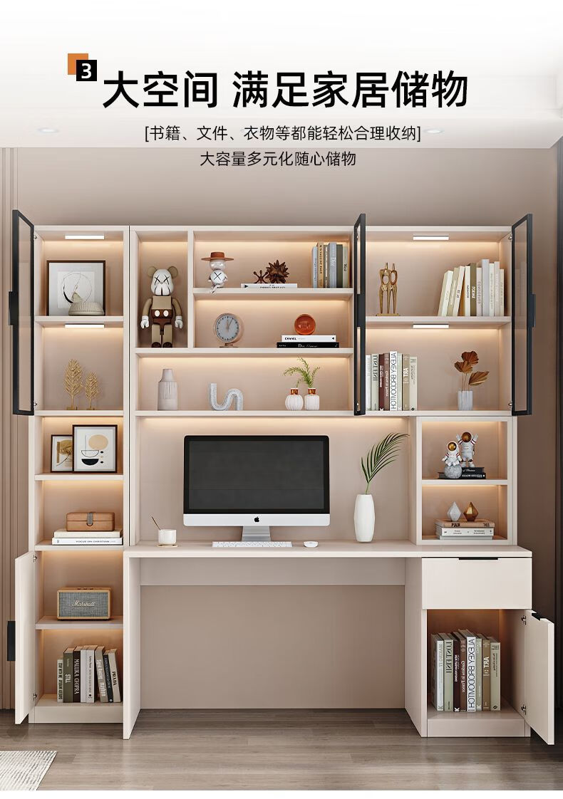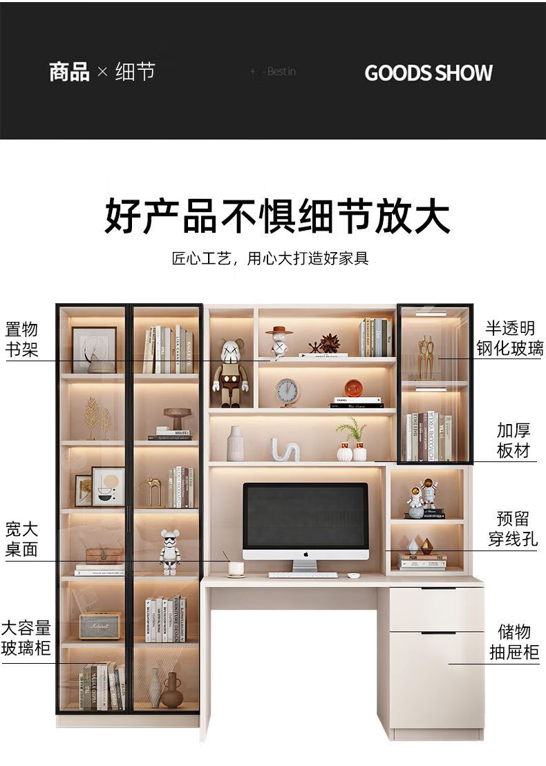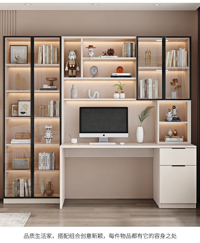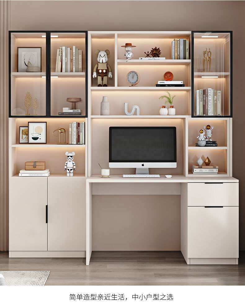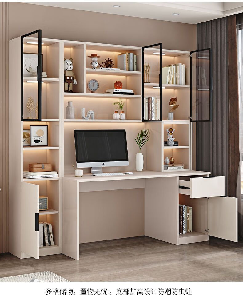 玉古轩2025新款电脑桌实木书桌书架一体桌台式组合办公桌学生家用学习桌 玻璃门100cm电脑桌 实木 送货到家包安装