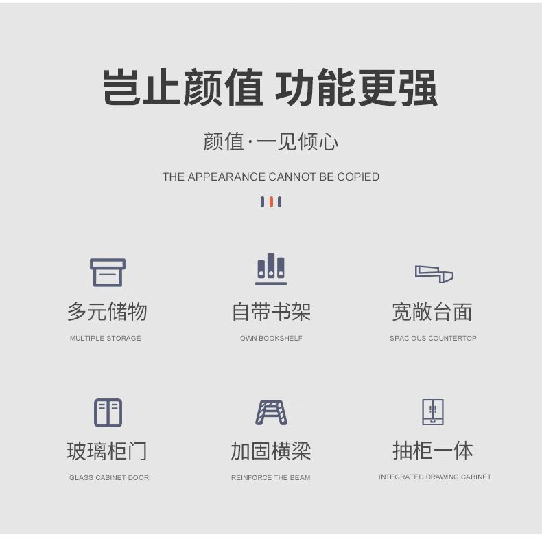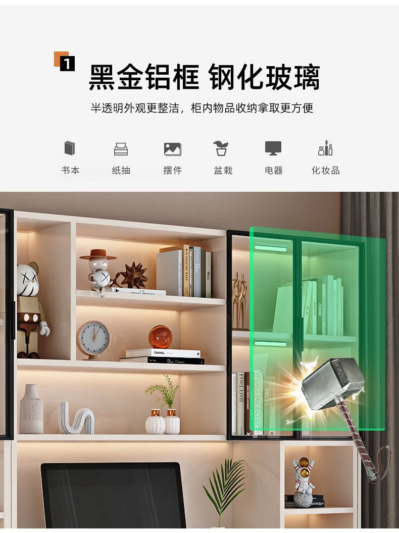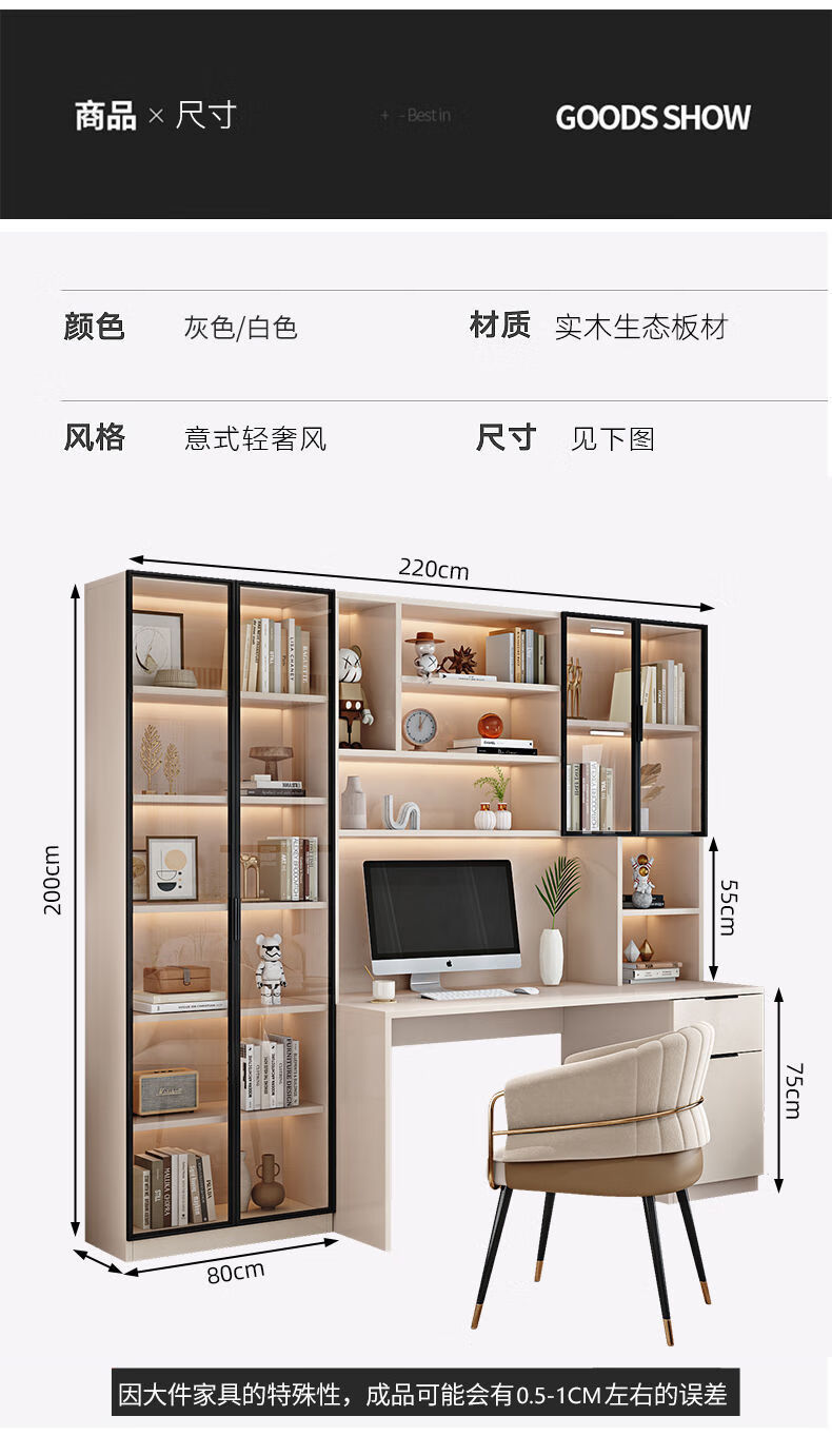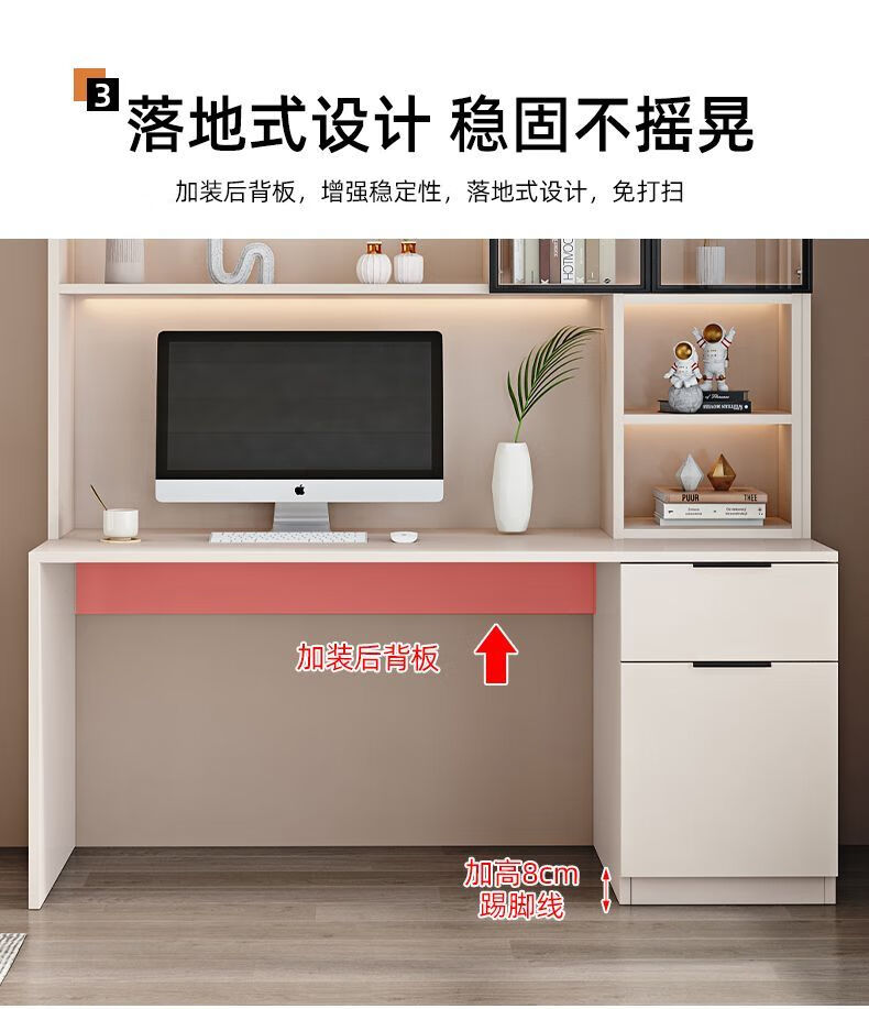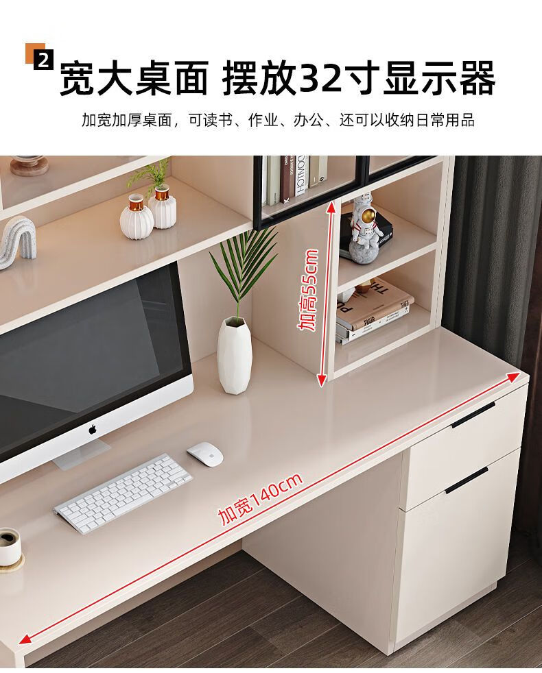 玉古轩2025新款电脑桌实木书桌书架一体桌台式组合办公桌学生家用学习桌 玻璃门100cm电脑桌 实木 送货到家包安装