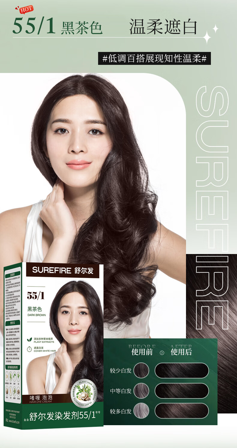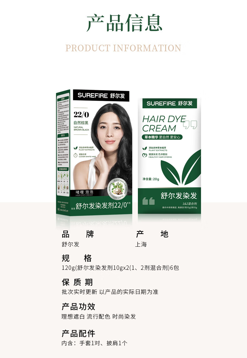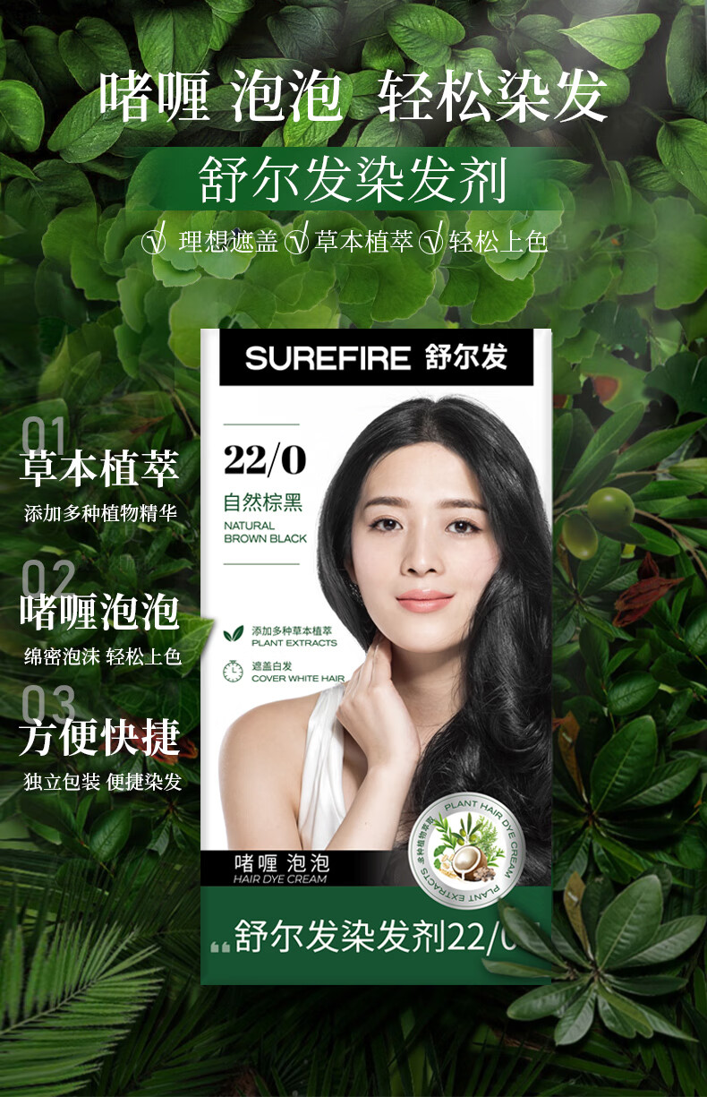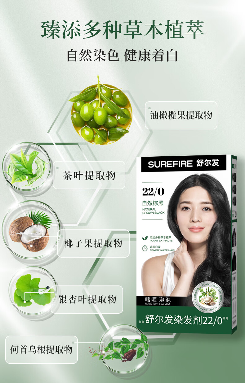 舒尔发泡泡染发剂植物萃取遮盖白发染发啫喱男女可用在家自己染染发霜膏 自然棕黑