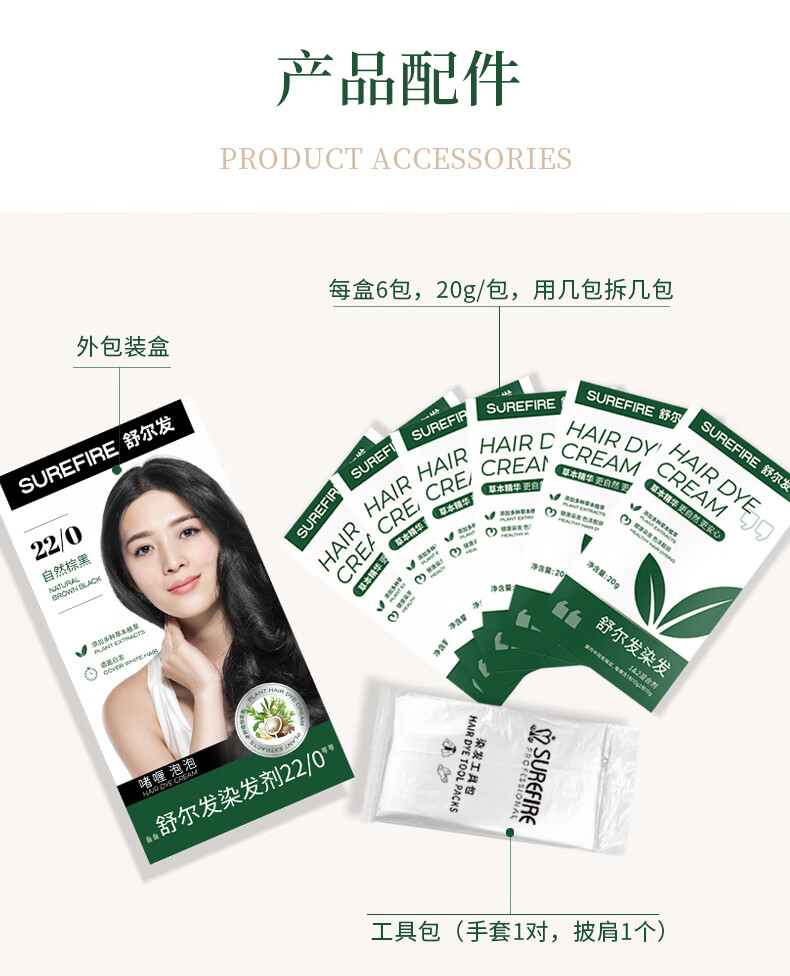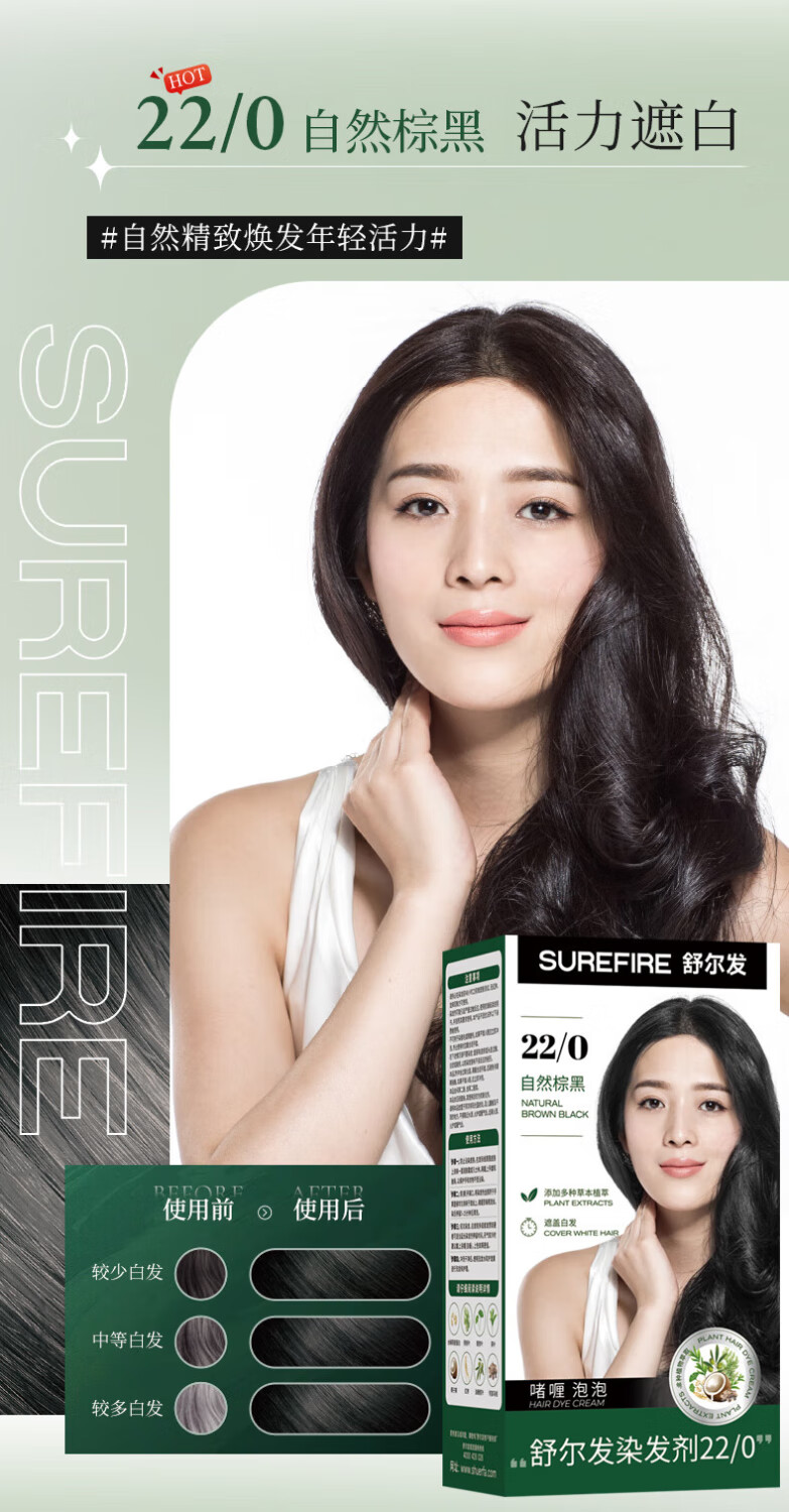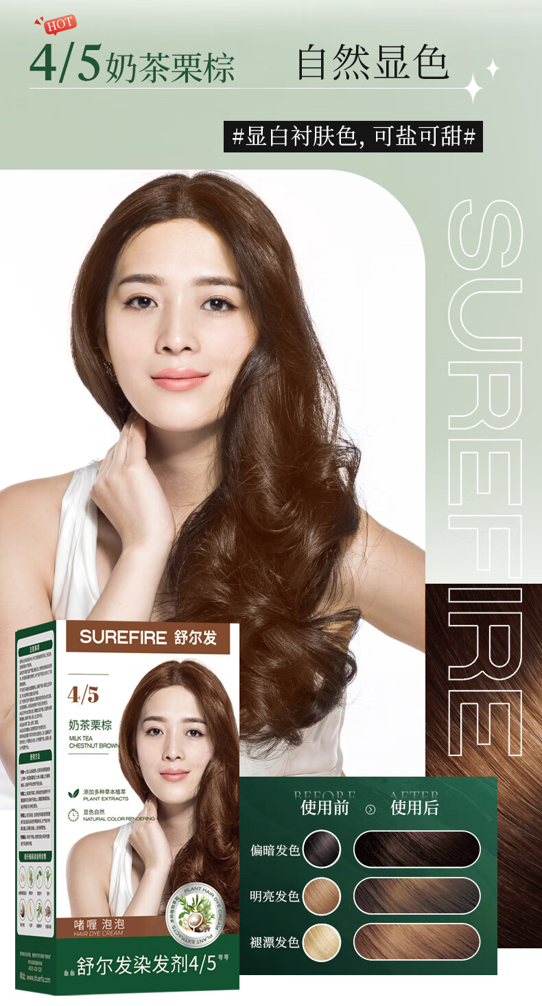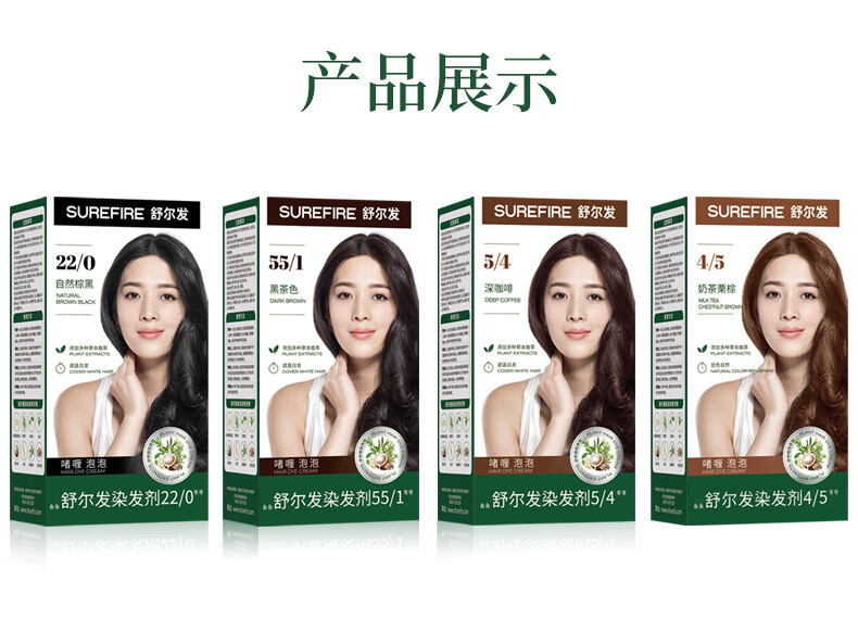 舒尔发泡泡染发剂植物萃取遮盖白发染发啫喱男女可用在家自己染染发霜膏 自然棕黑