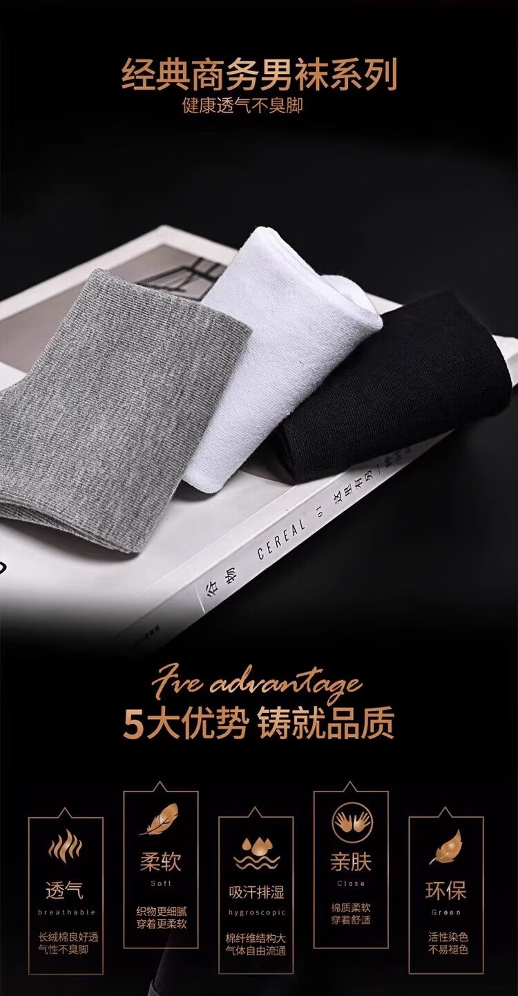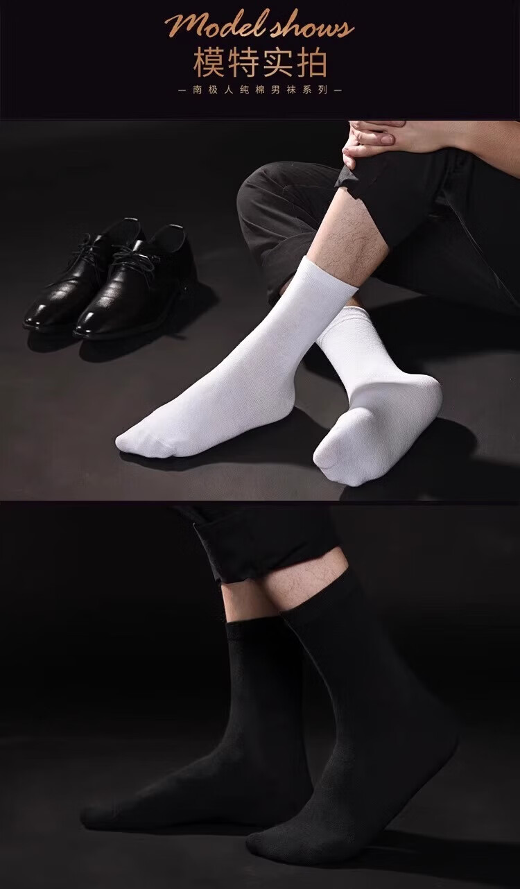 雅鹿男士秋冬季袜子厚款透气纯色中筒袜吸汗防臭旅游袜7a抗菌袜 【10白色+10黑色】共20双 均码 yaloo/雅鹿正品【男士均码】