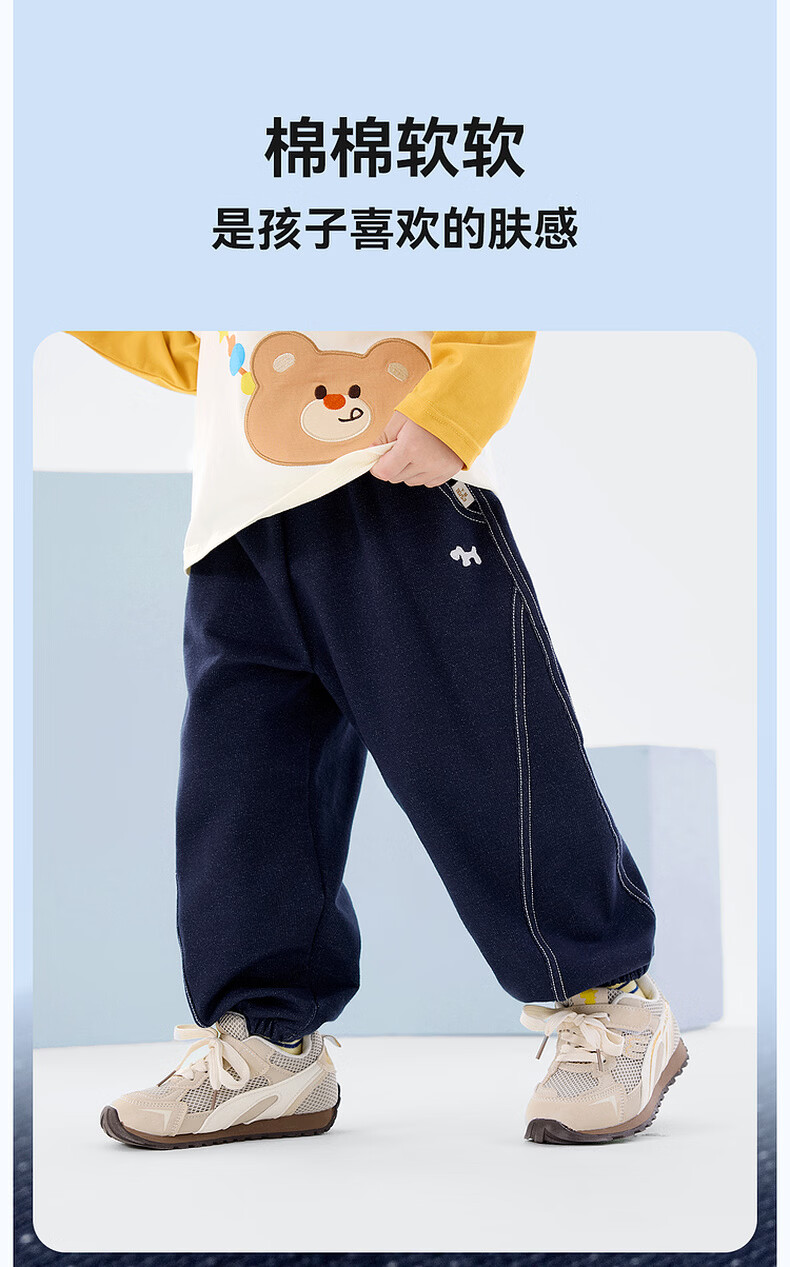 嘟嘟家【软牛仔】儿童牛仔裤春款宝宝裤子春装男童长裤休闲女童童装衣服 藏青色 100
