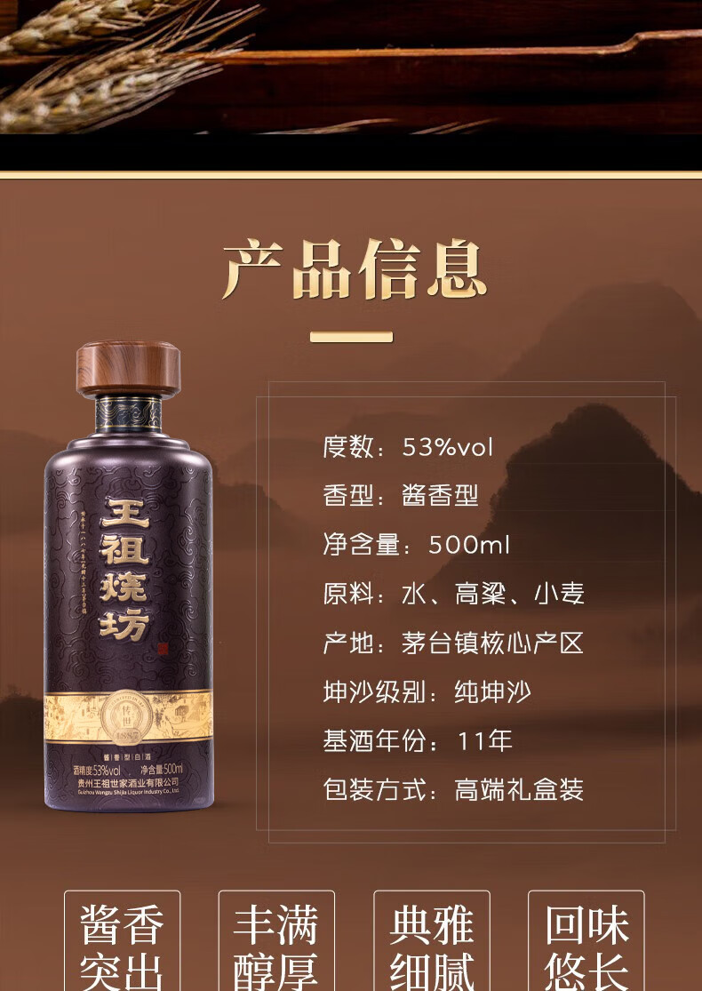 王祖燒坊【传世】53° 贵州酱香型白酒 大曲坤沙工艺茅台镇白酒 礼品礼盒 53%vol 500mL 6瓶 限量版 原箱