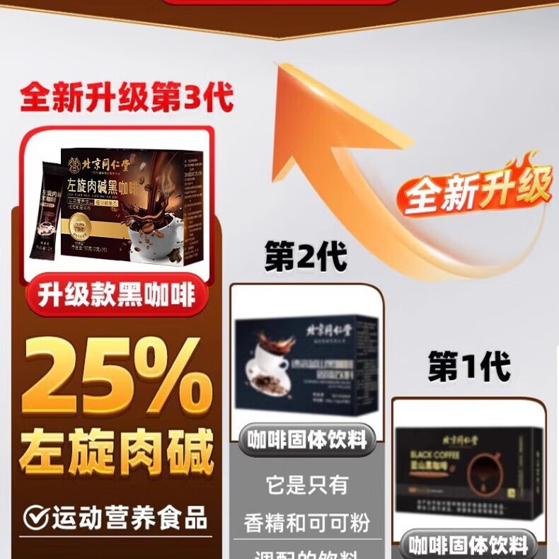 北京同仁堂左旋肉碱黑咖啡0糖0脂100%正品非药 5盒125袋【巩固装】