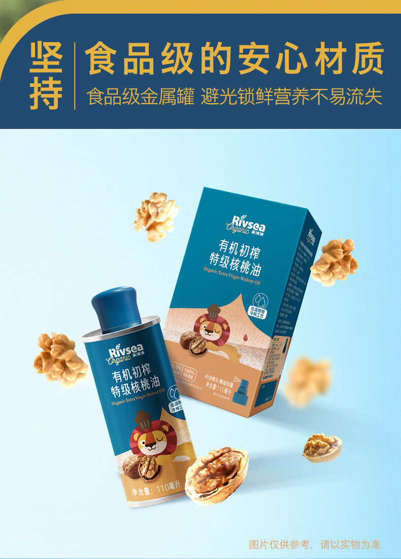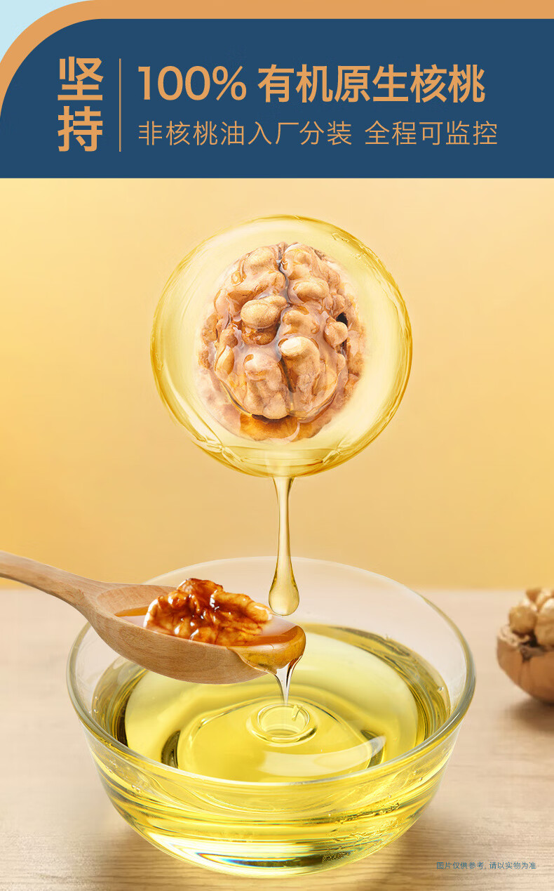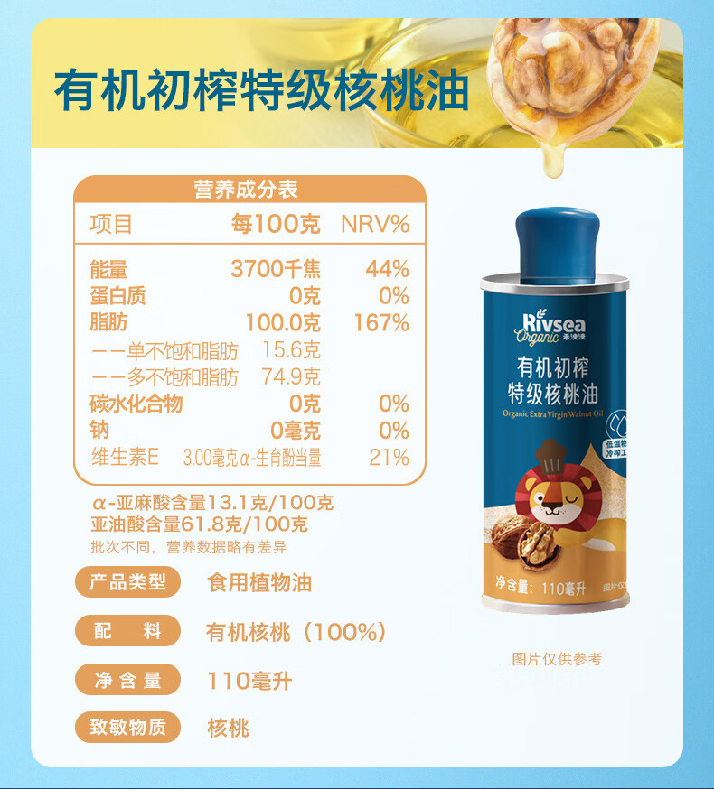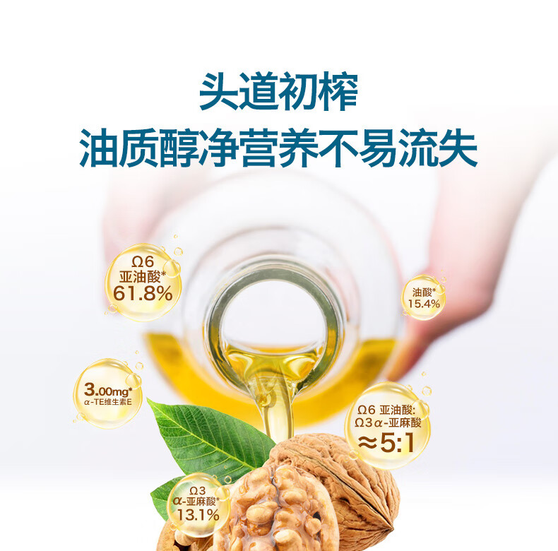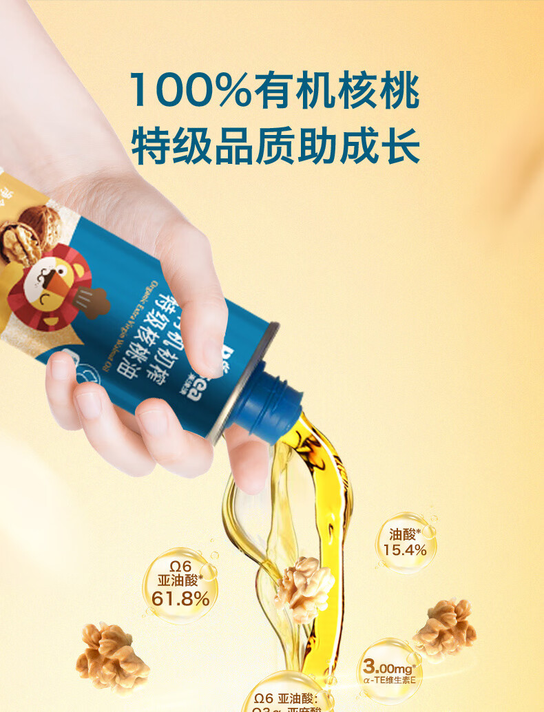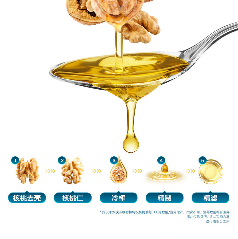 禾泱泱有机初榨特级核桃油110ml宝宝辅食搭配热炒凉拌食用油