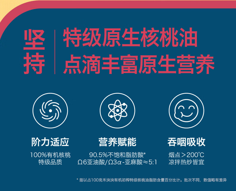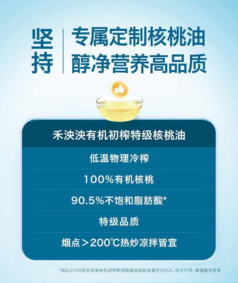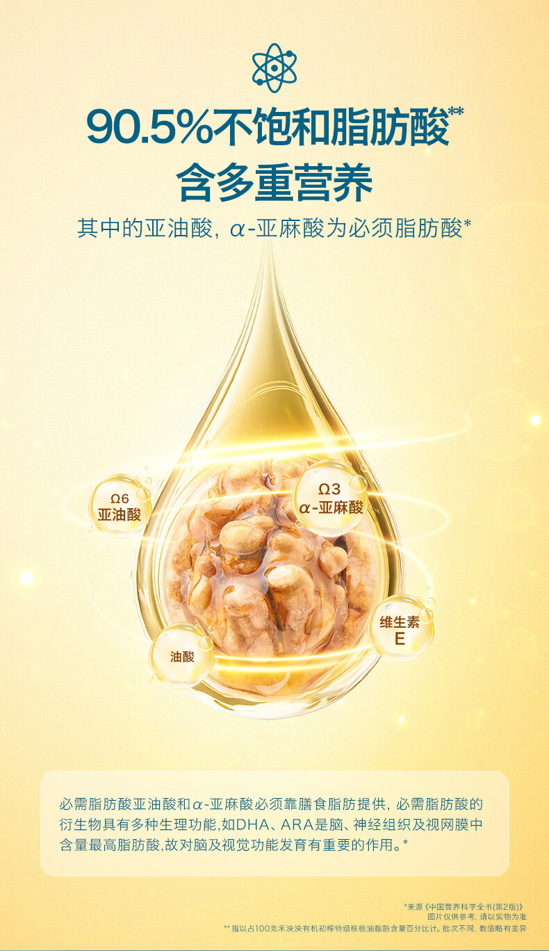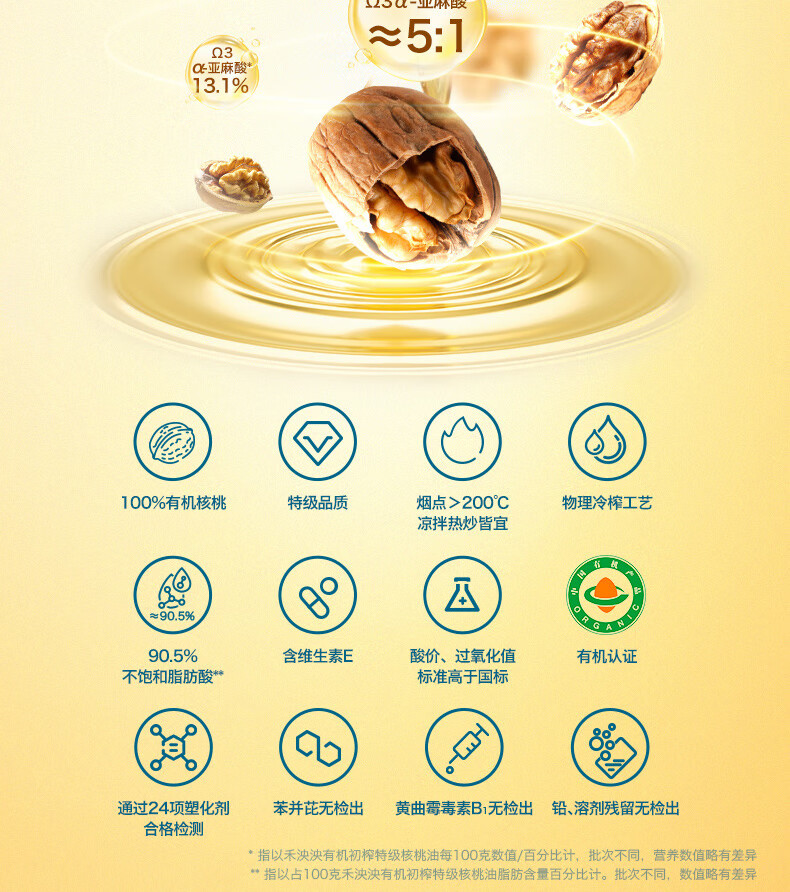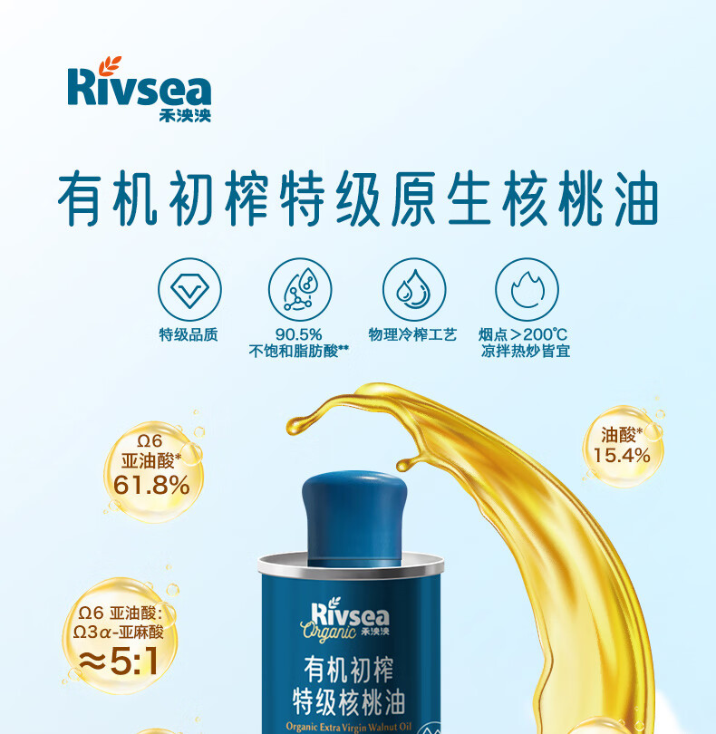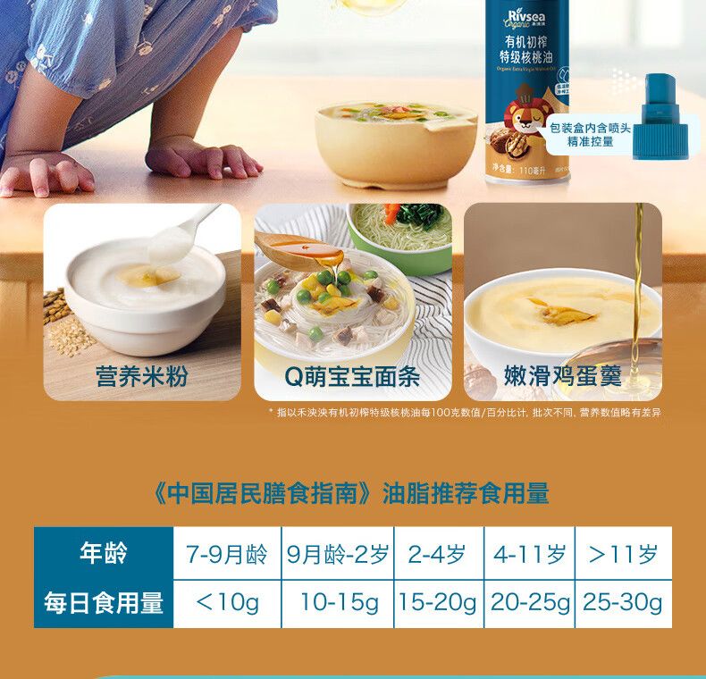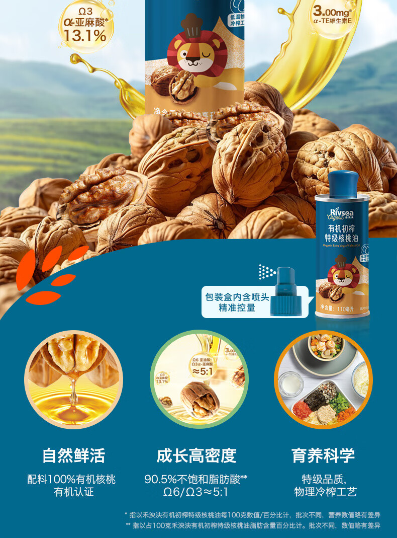 禾泱泱有机初榨特级核桃油110ml宝宝辅食搭配热炒凉拌食用油