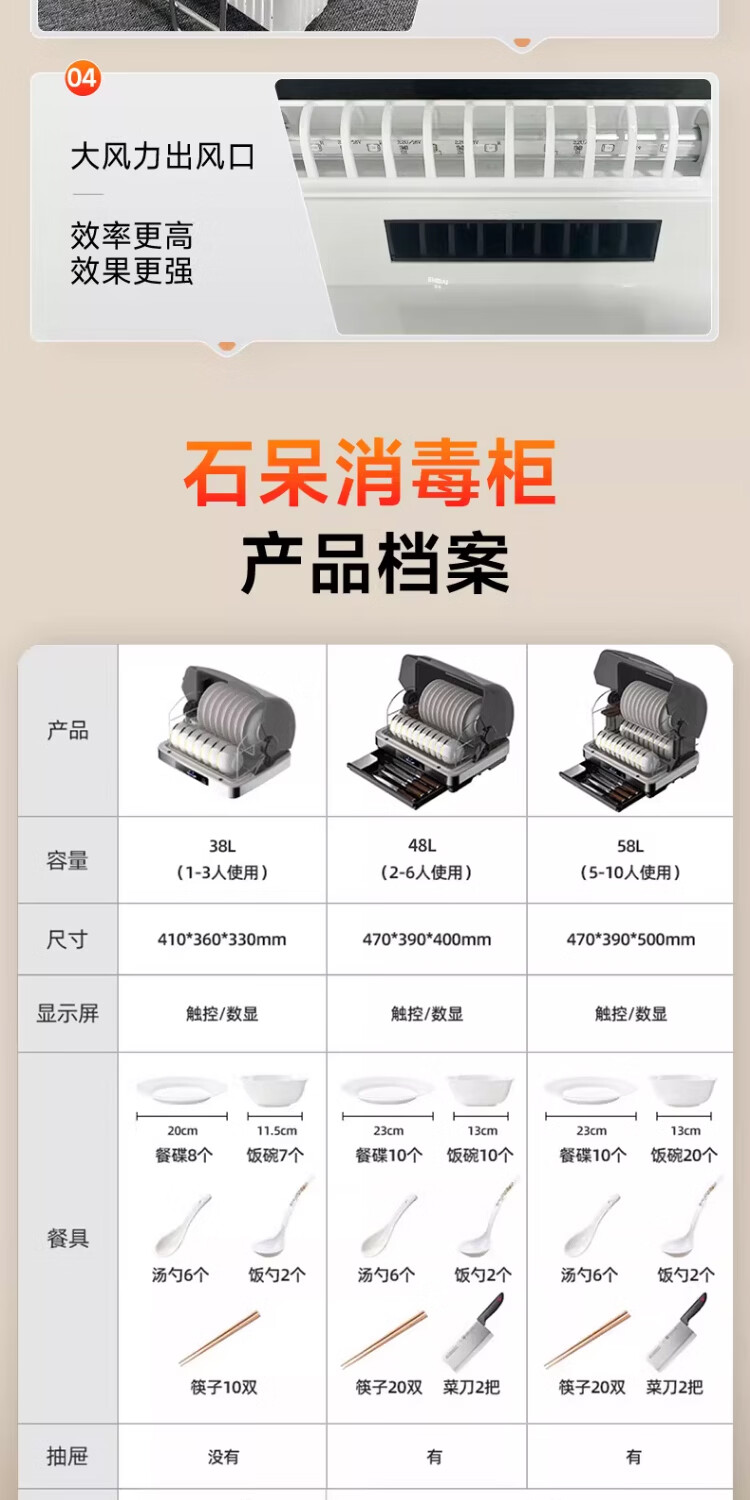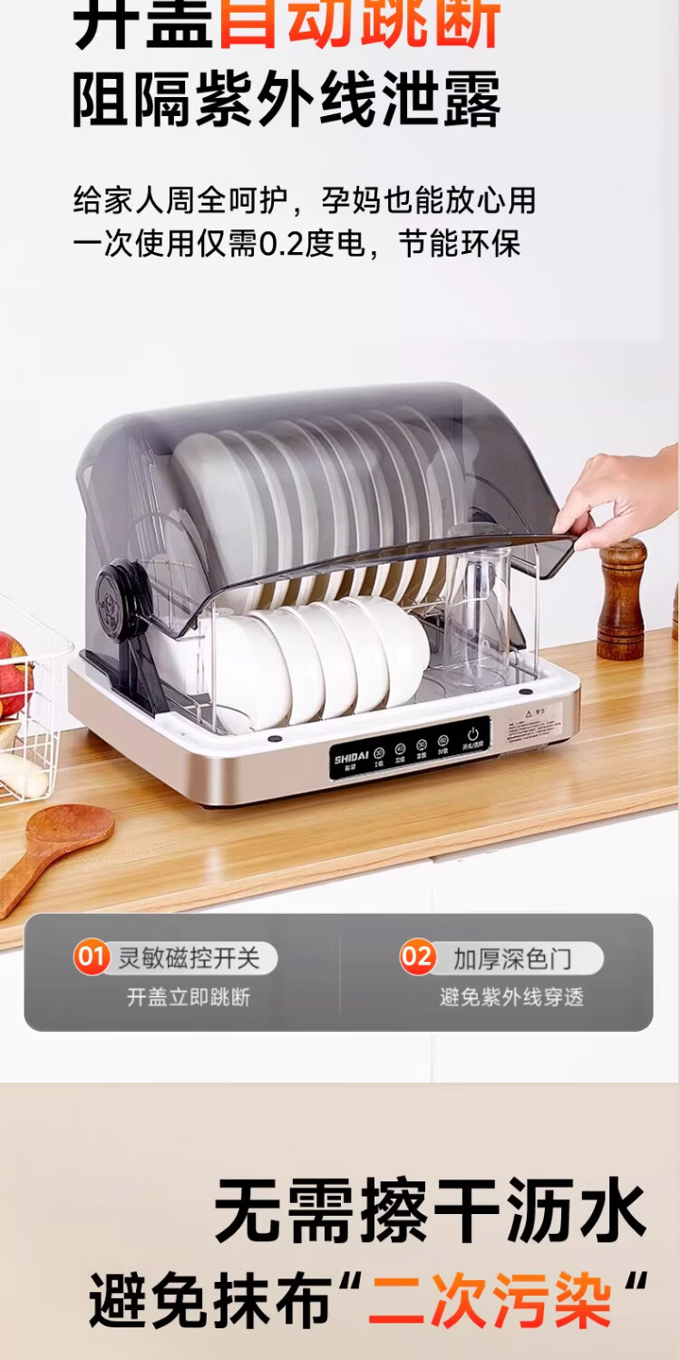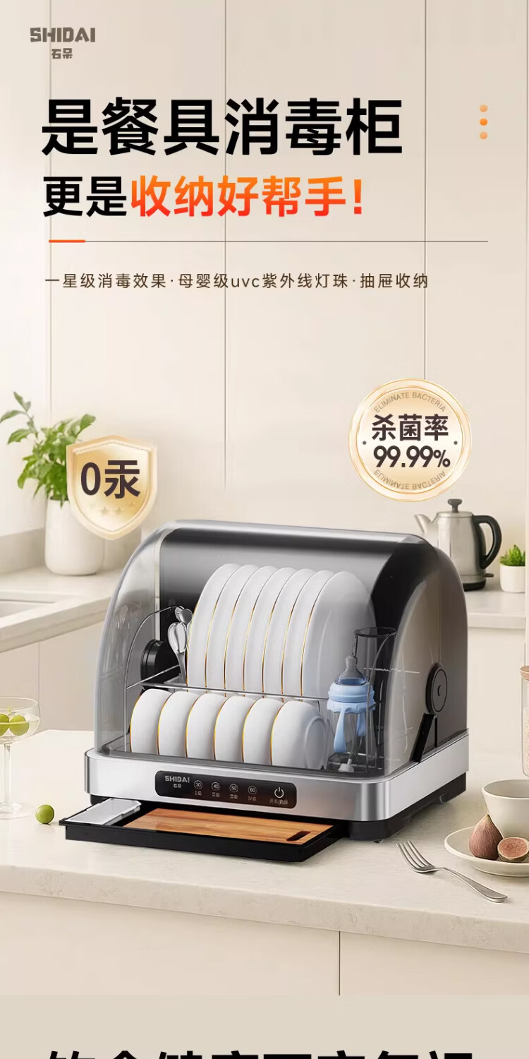 石呆消毒柜家用小型碗筷收纳台式刀具餐具保洁柜厨房碗柜紫外线茶杯消毒烘干一体机母婴新款筷子消毒机 38L旗舰版:无汞灯珠杀菌+高温免沥水+负离子