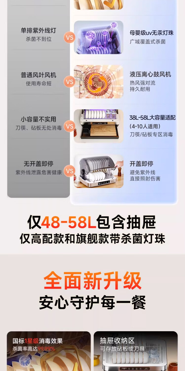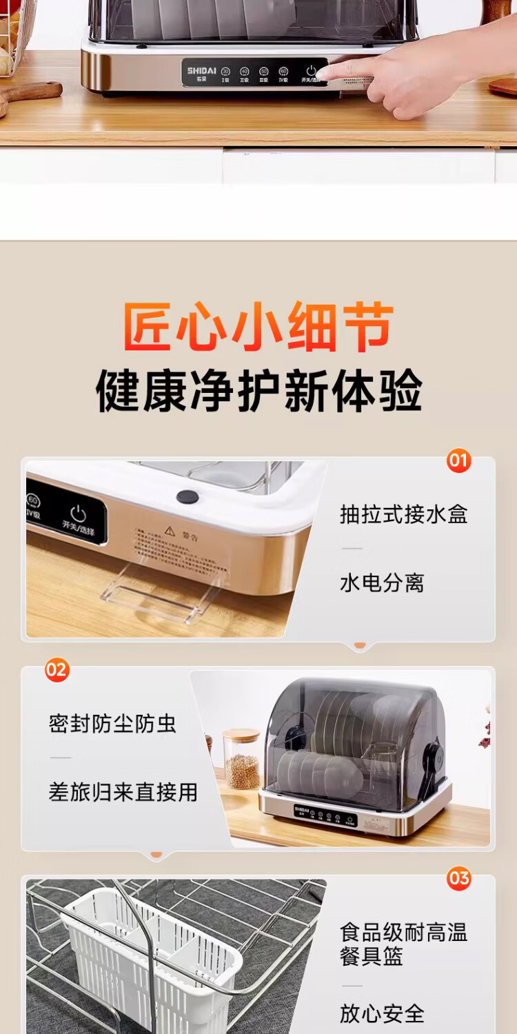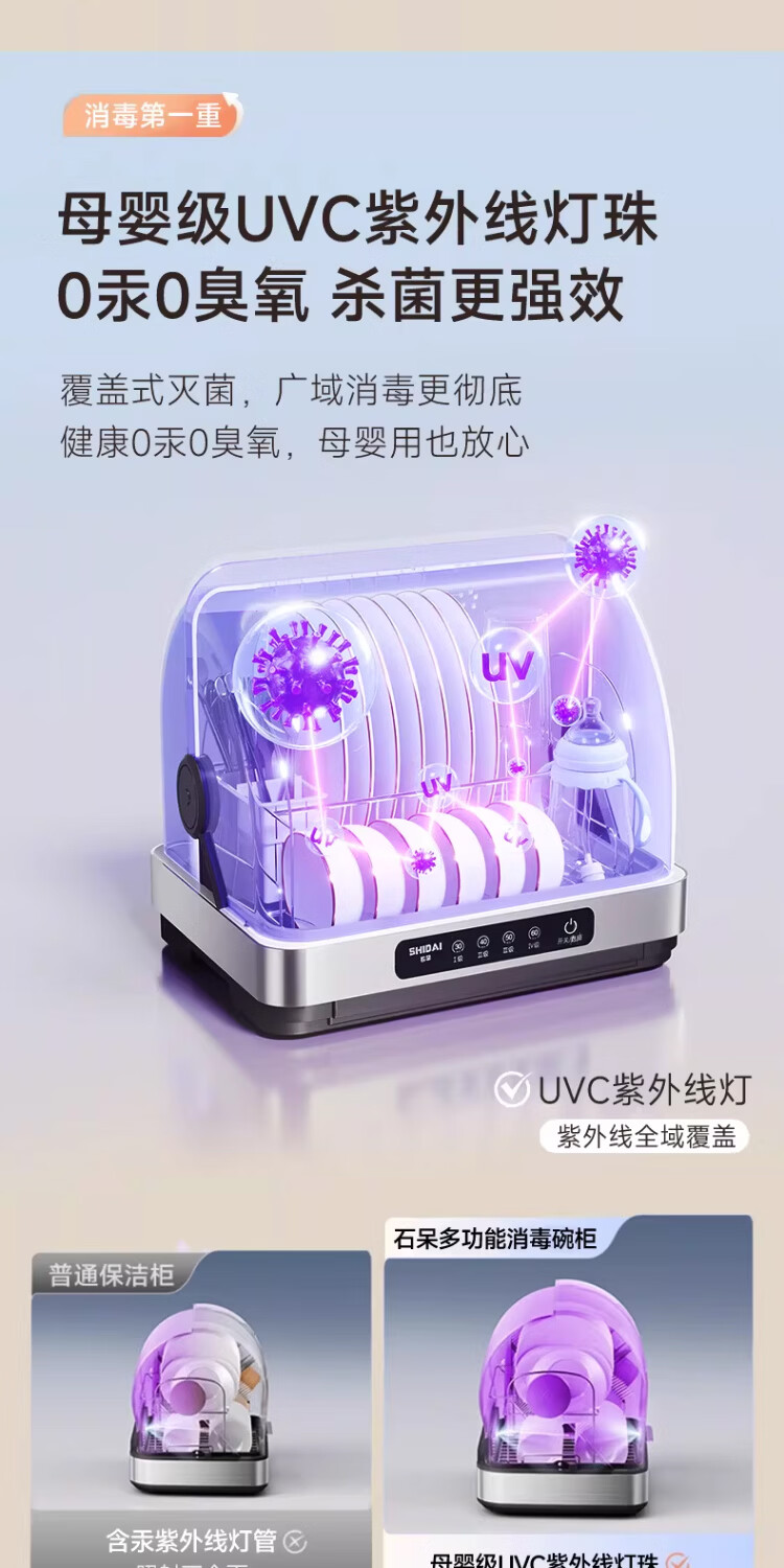 石呆消毒柜家用小型碗筷收纳台式刀具餐具保洁柜厨房碗柜紫外线茶杯消毒烘干一体机母婴新款筷子消毒机 38L旗舰版:无汞灯珠杀菌+高温免沥水+负离子