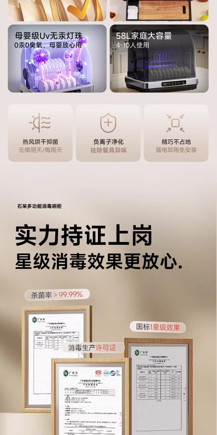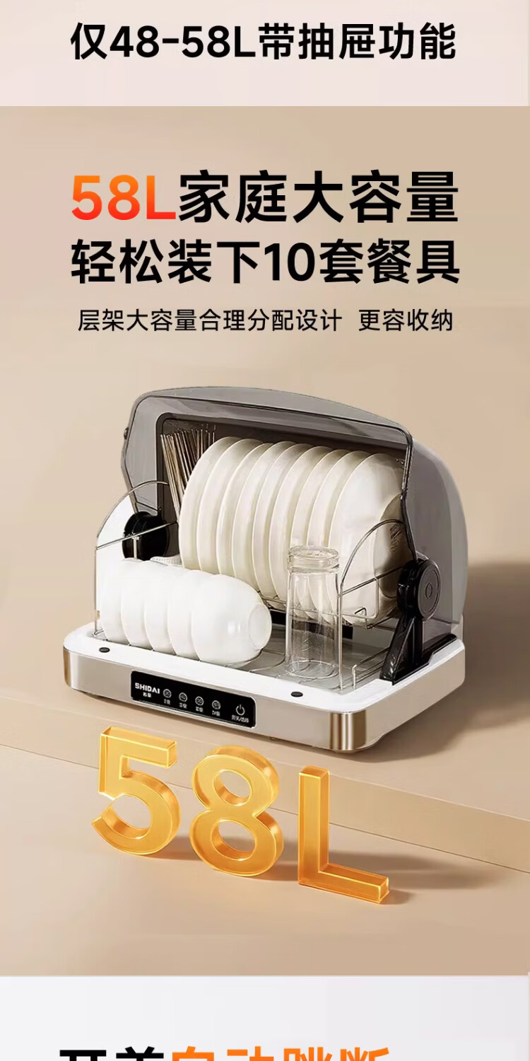石呆茶杯消毒柜家用小型桌面紫外线消毒烘干加热一体机收纳柜办公室功夫茶杯子茶具婴儿奶瓶台式消毒柜 58L【数显】烘干+无汞灯珠+免沥水+负离子+抽屉