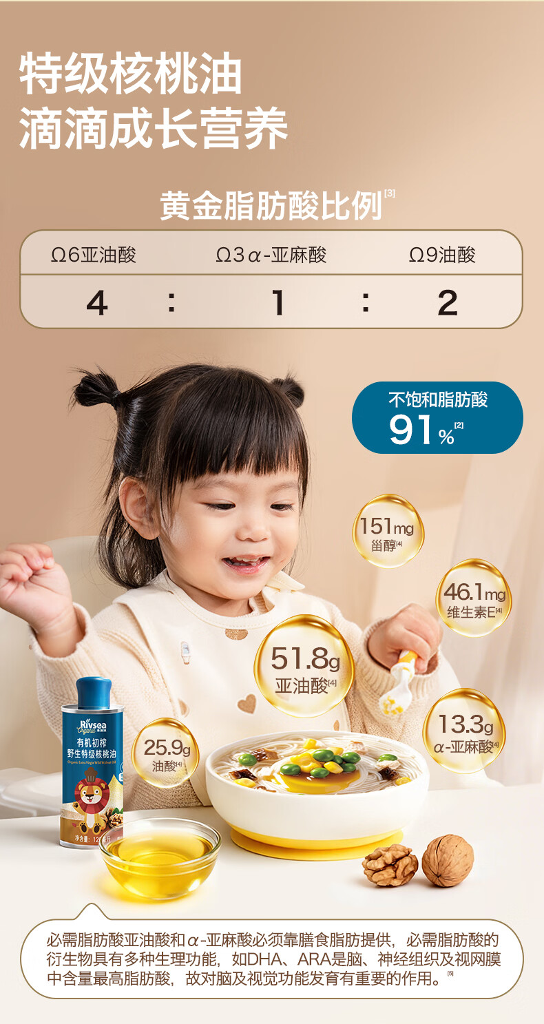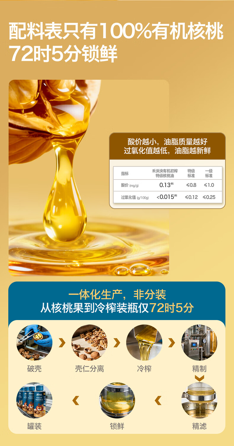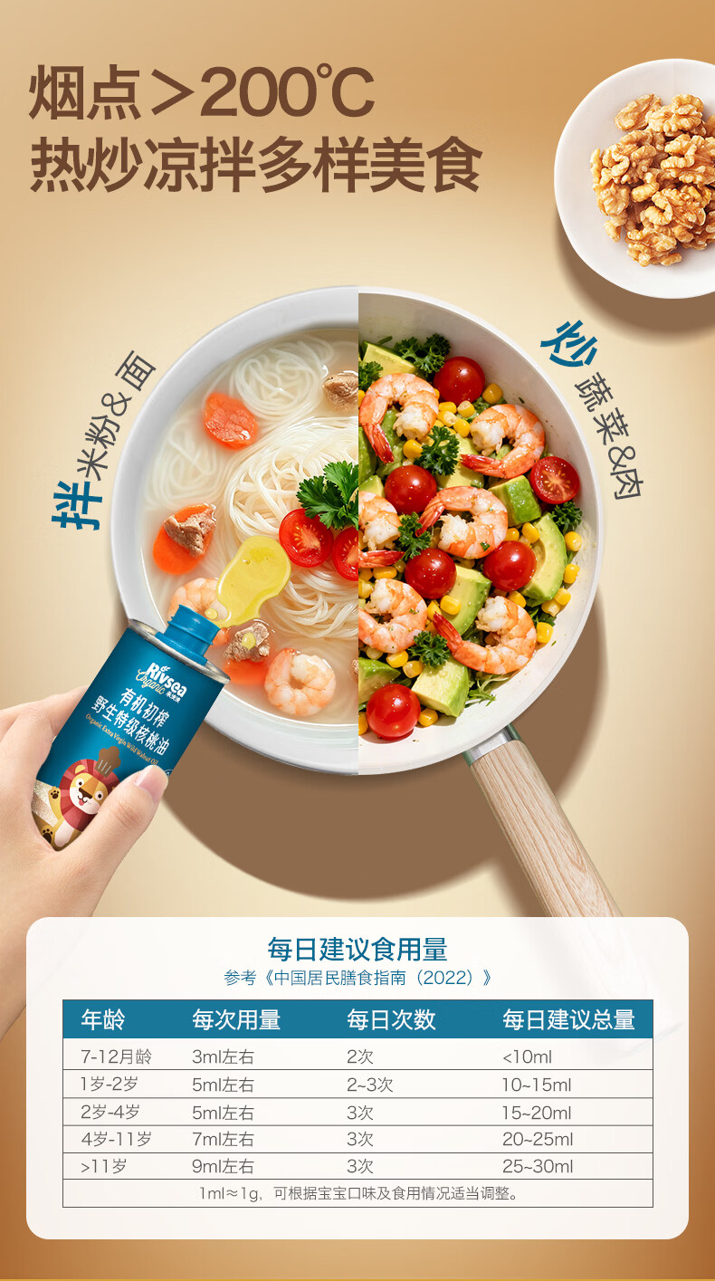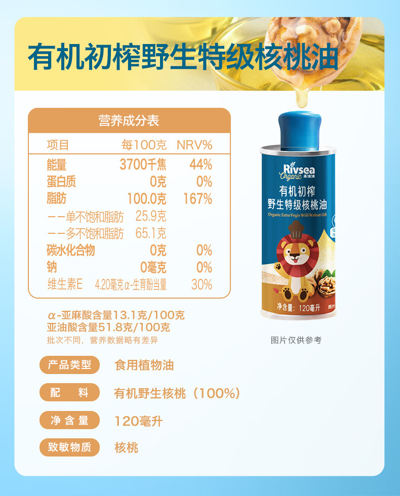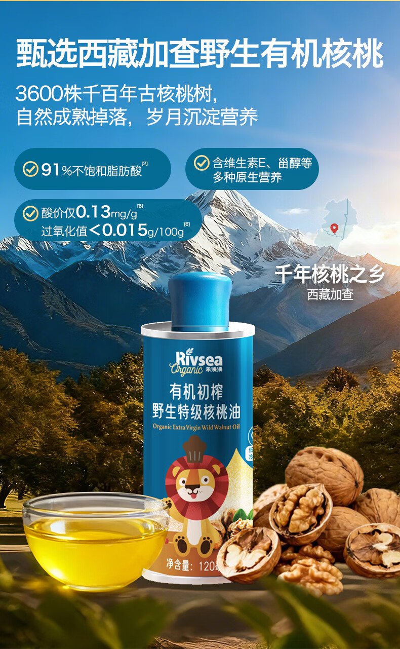 禾泱泱有机初榨野生特级核桃油120ml 搭配热炒宝宝辅食凉拌食用油