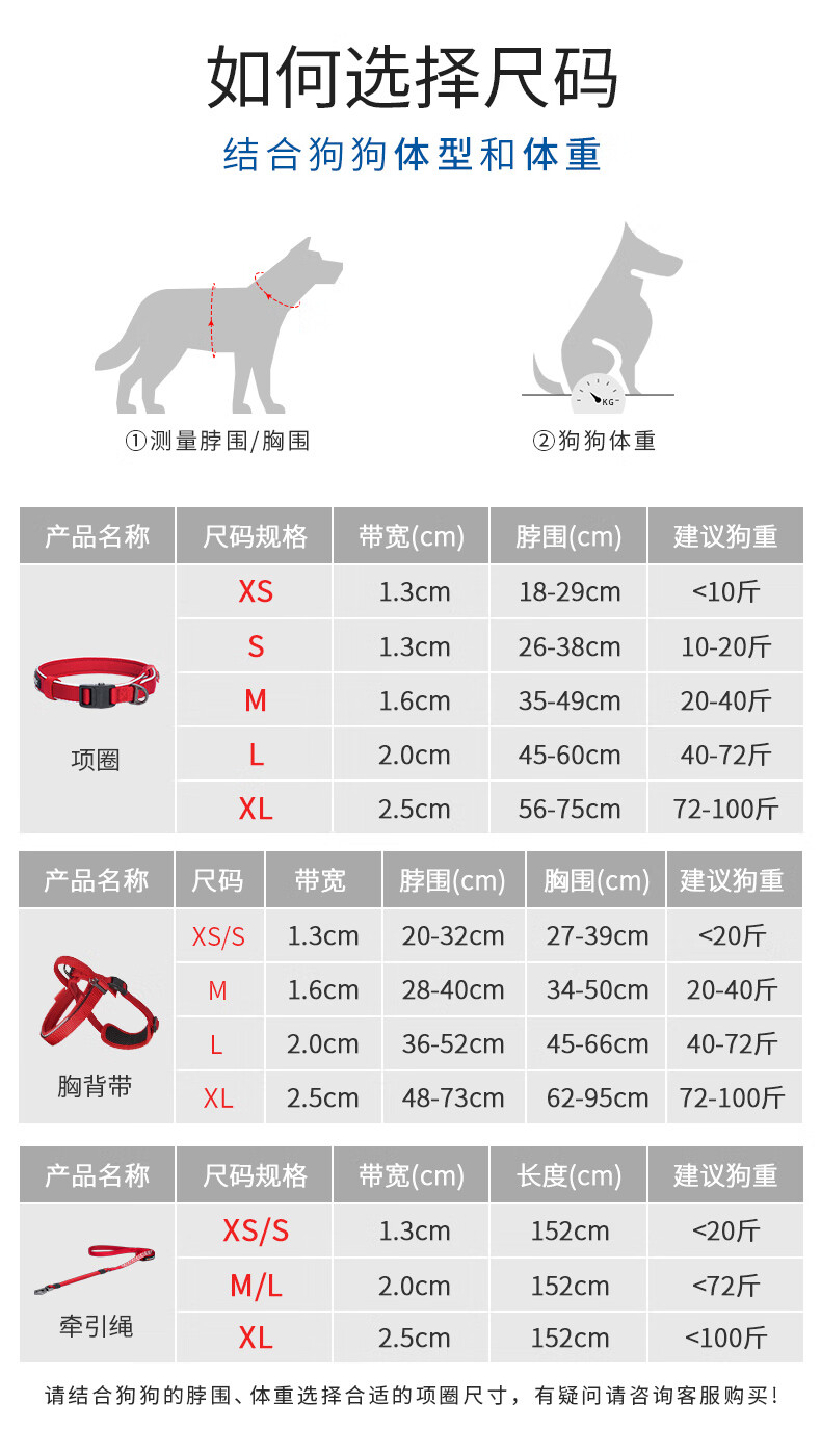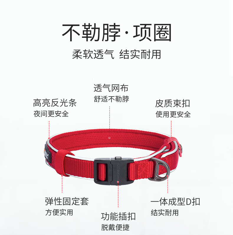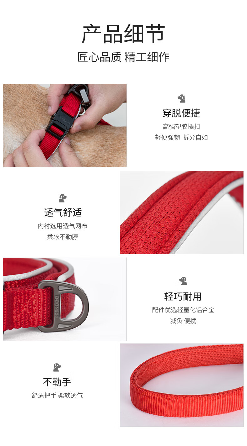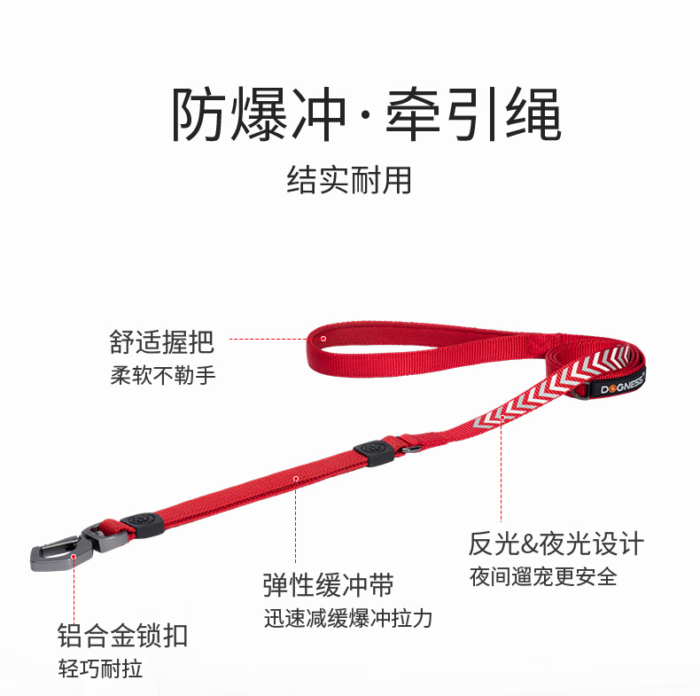 多尼斯(DOGNESS)狗狗牵引绳遛狗绳狗链子项圈小中型犬泰迪柯基法斗博美马犬 红M