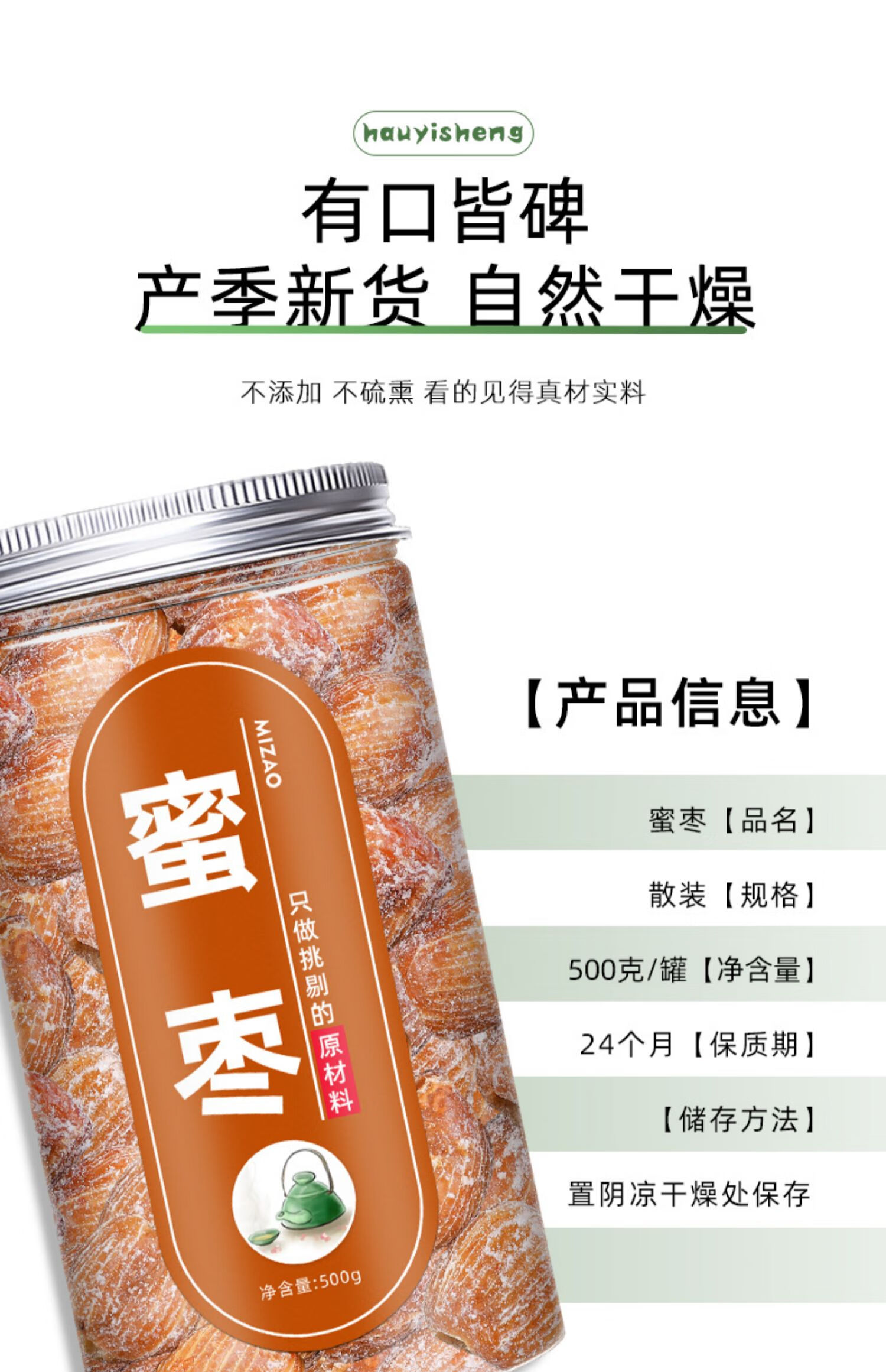 同仁堂蜜枣干500g克中药材饮片特级蜜枣泡茶煮粥水晶金丝无核蜜枣煲汤用 【手工精选】特级干蜜枣100g