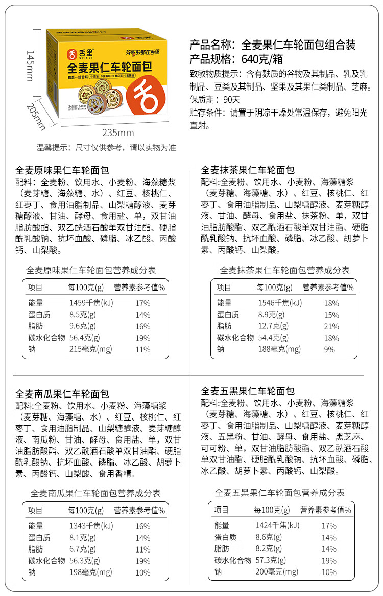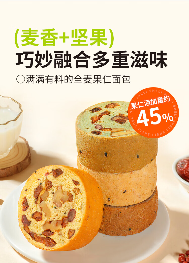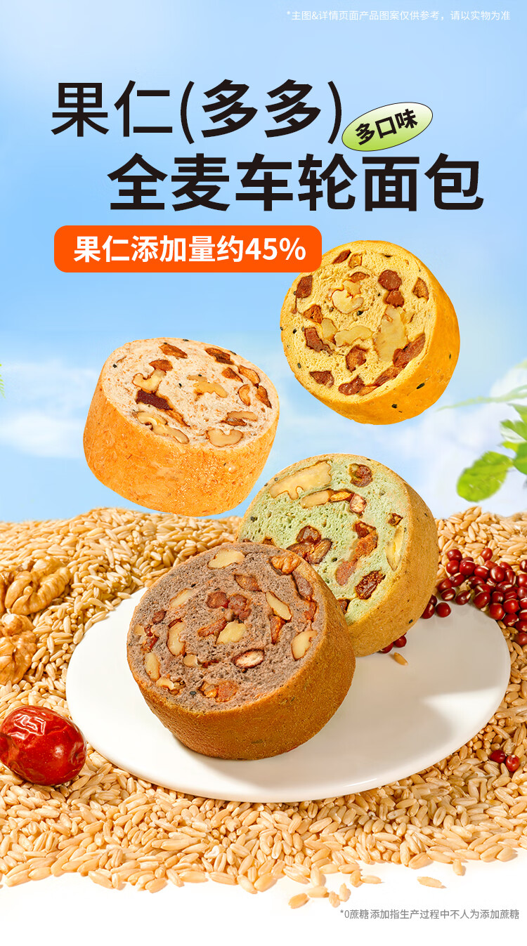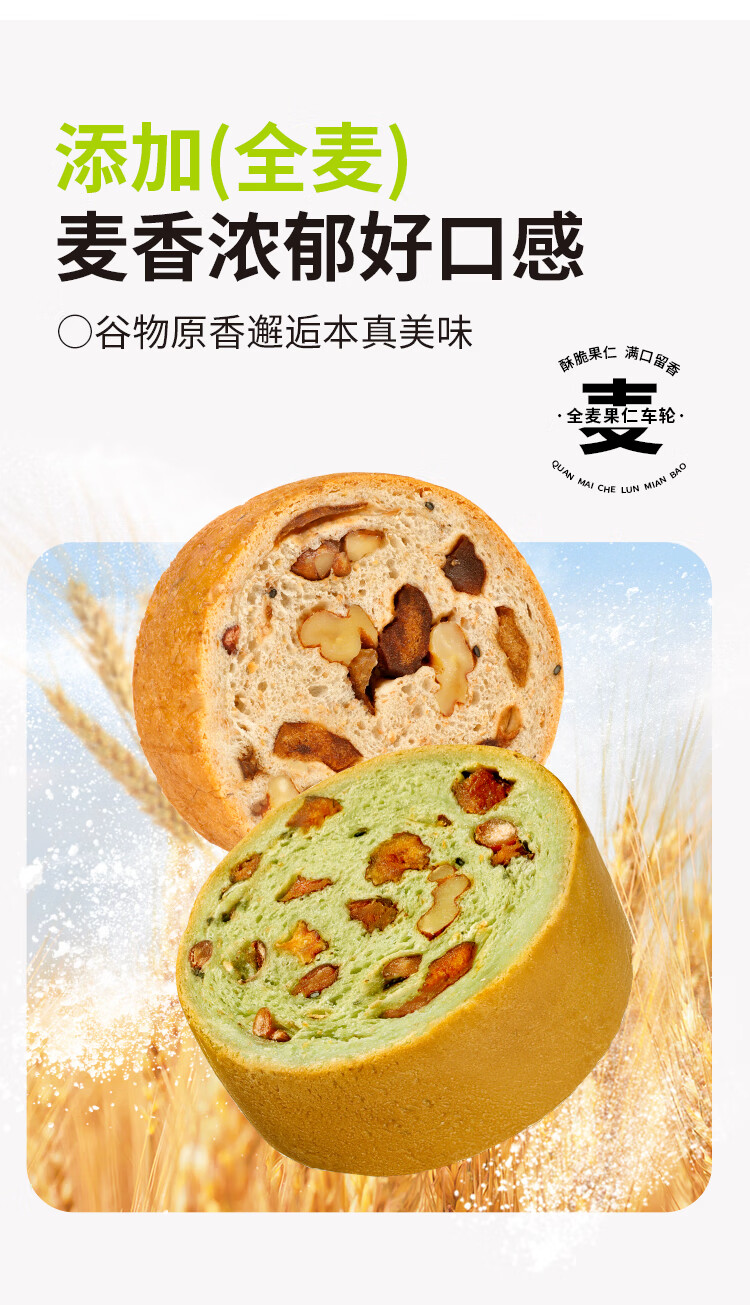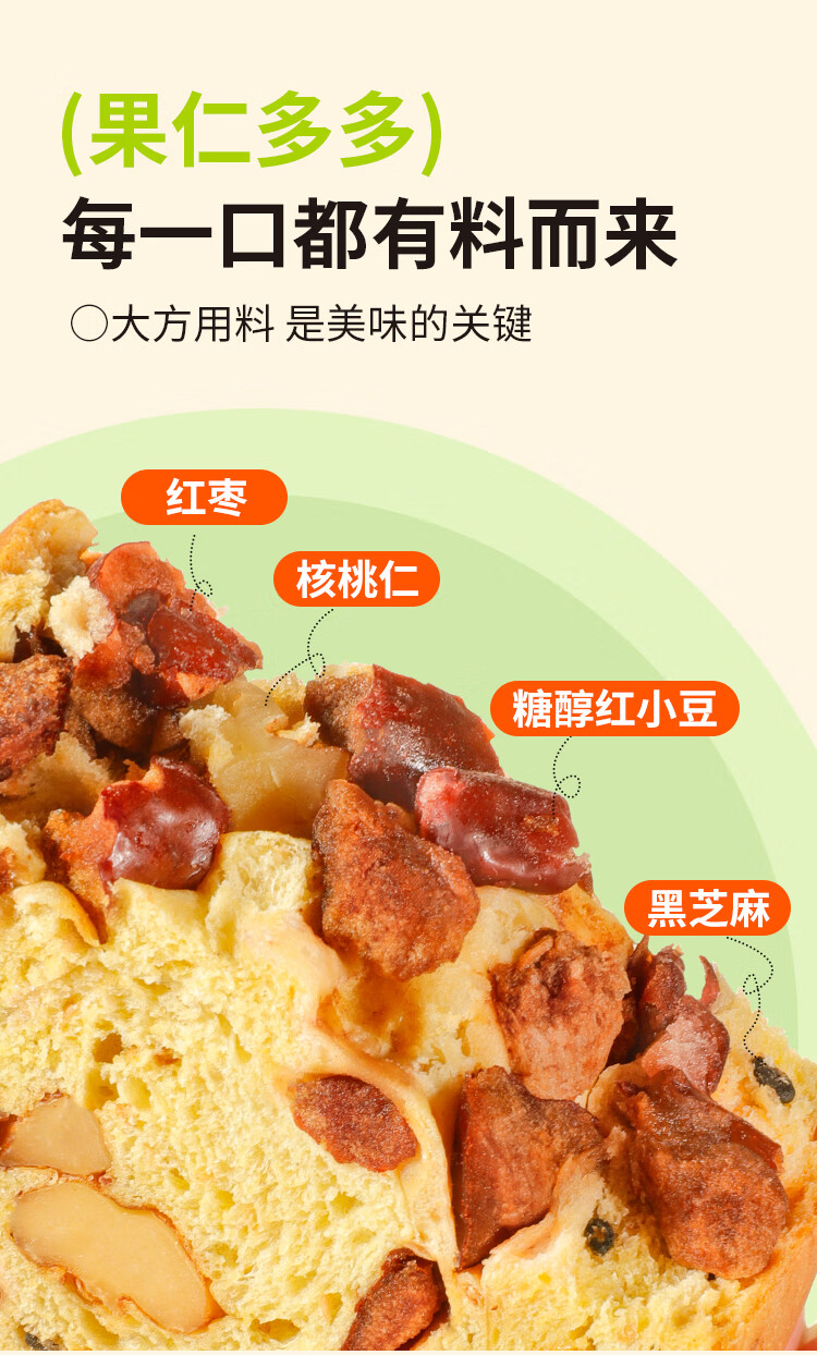 舌里坚果车轮全麦面包640g果仁吐司五黑核桃仁红枣早餐休闲零食大列巴