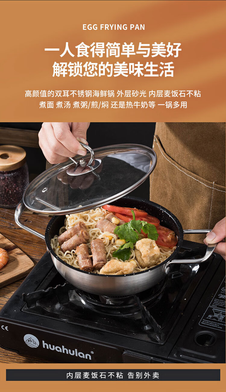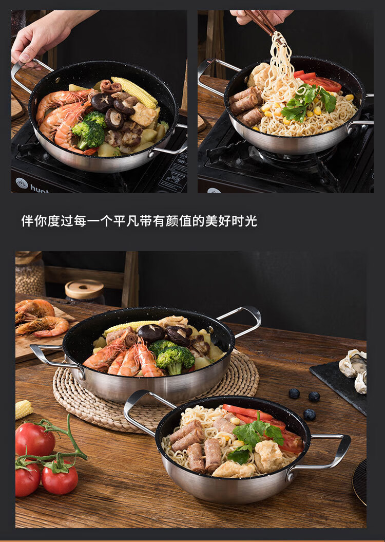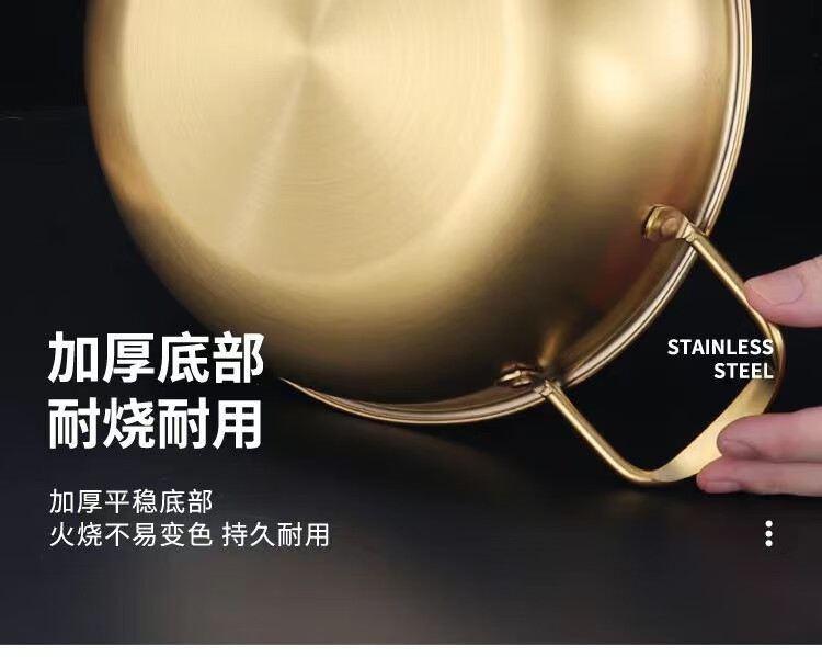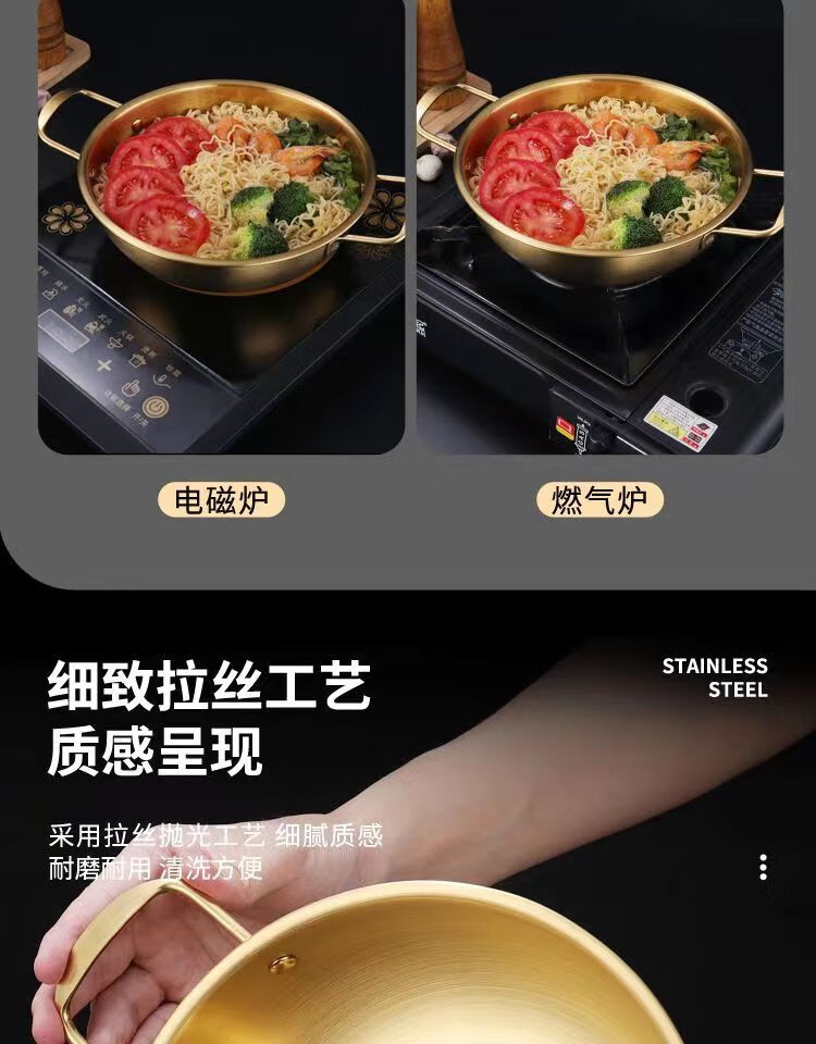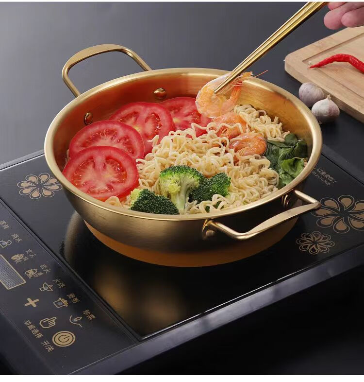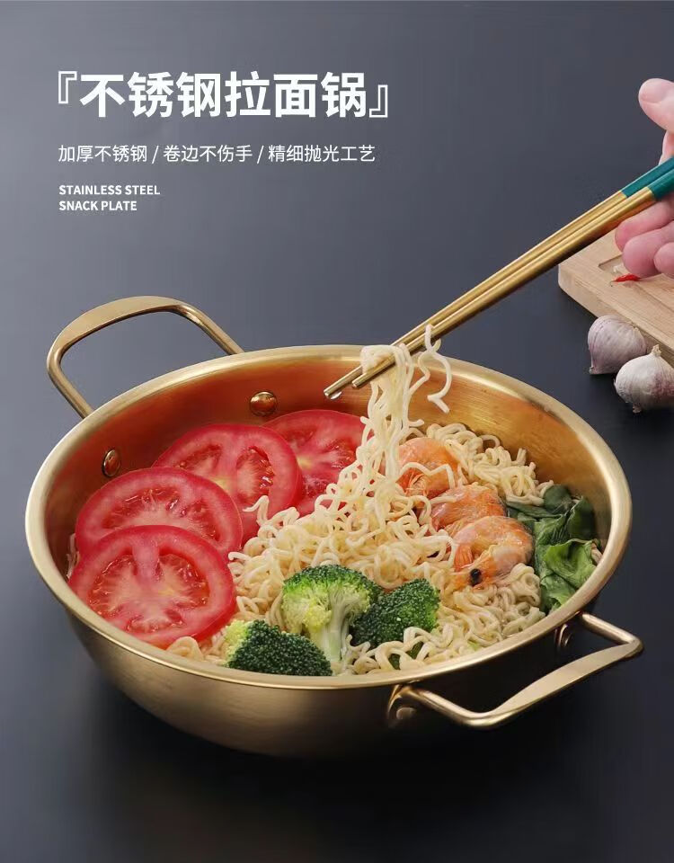【精选直发】不锈钢单人拉面锅韩式泡面锅单人小火锅海鲜干锅家用 18cm 【金色】单人拉面锅