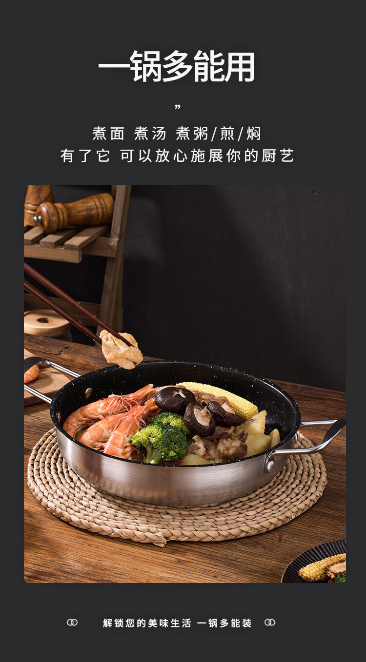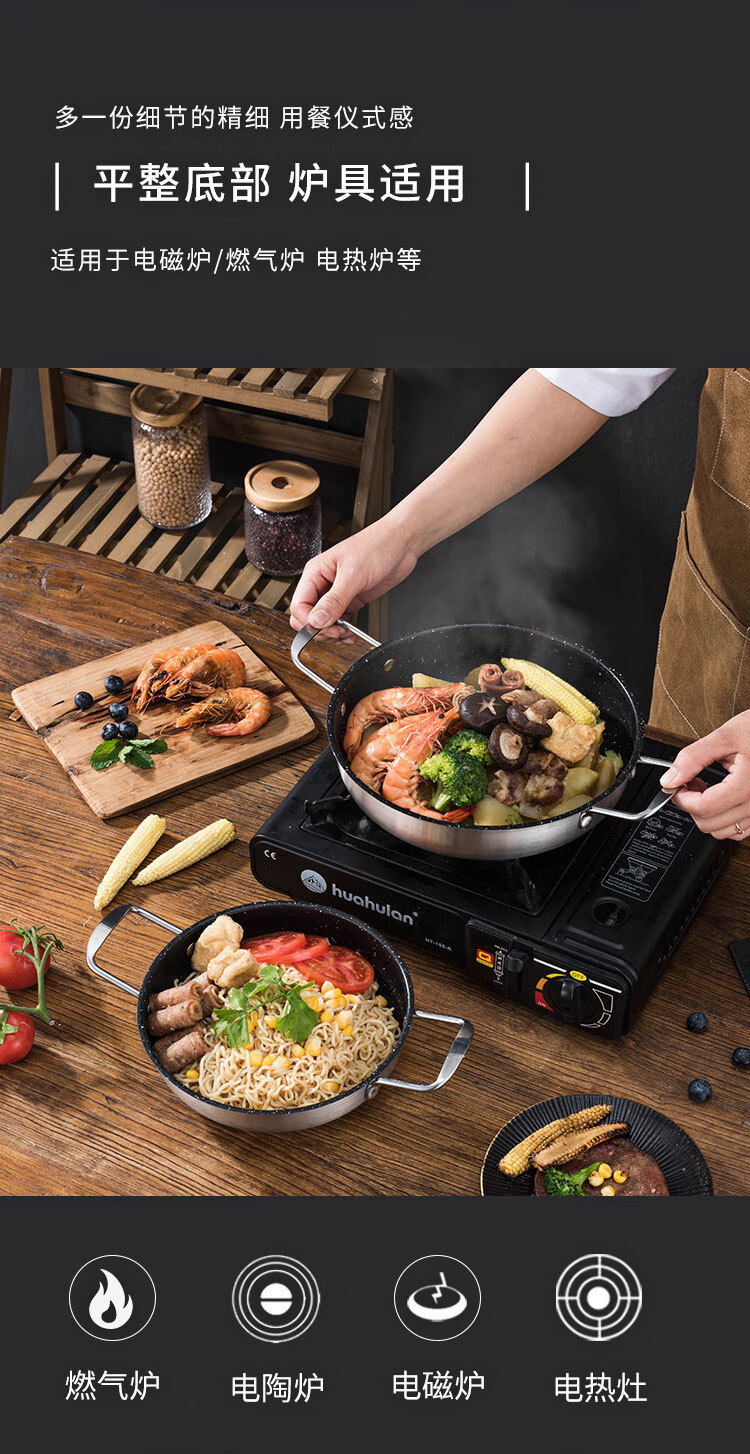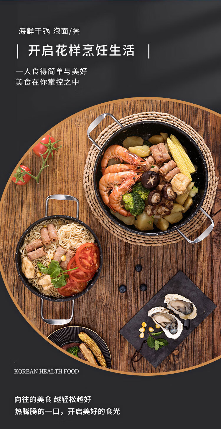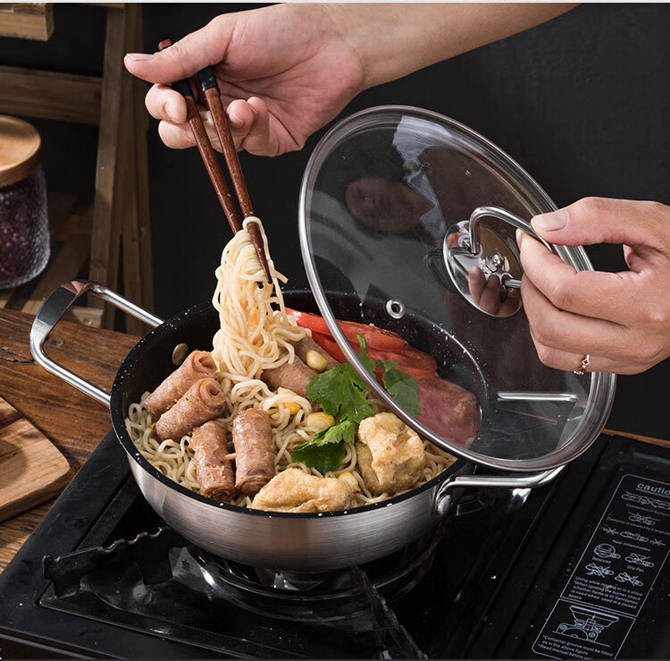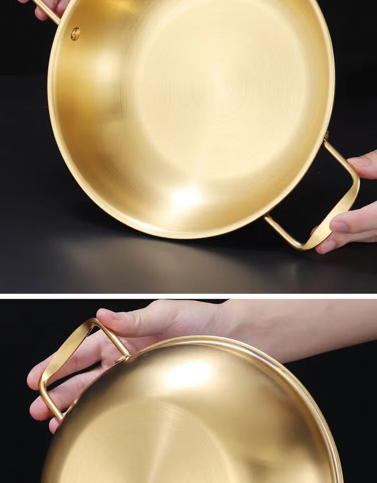【精选直发】不锈钢单人拉面锅韩式泡面锅单人小火锅海鲜干锅家用 18cm 【金色】单人拉面锅
