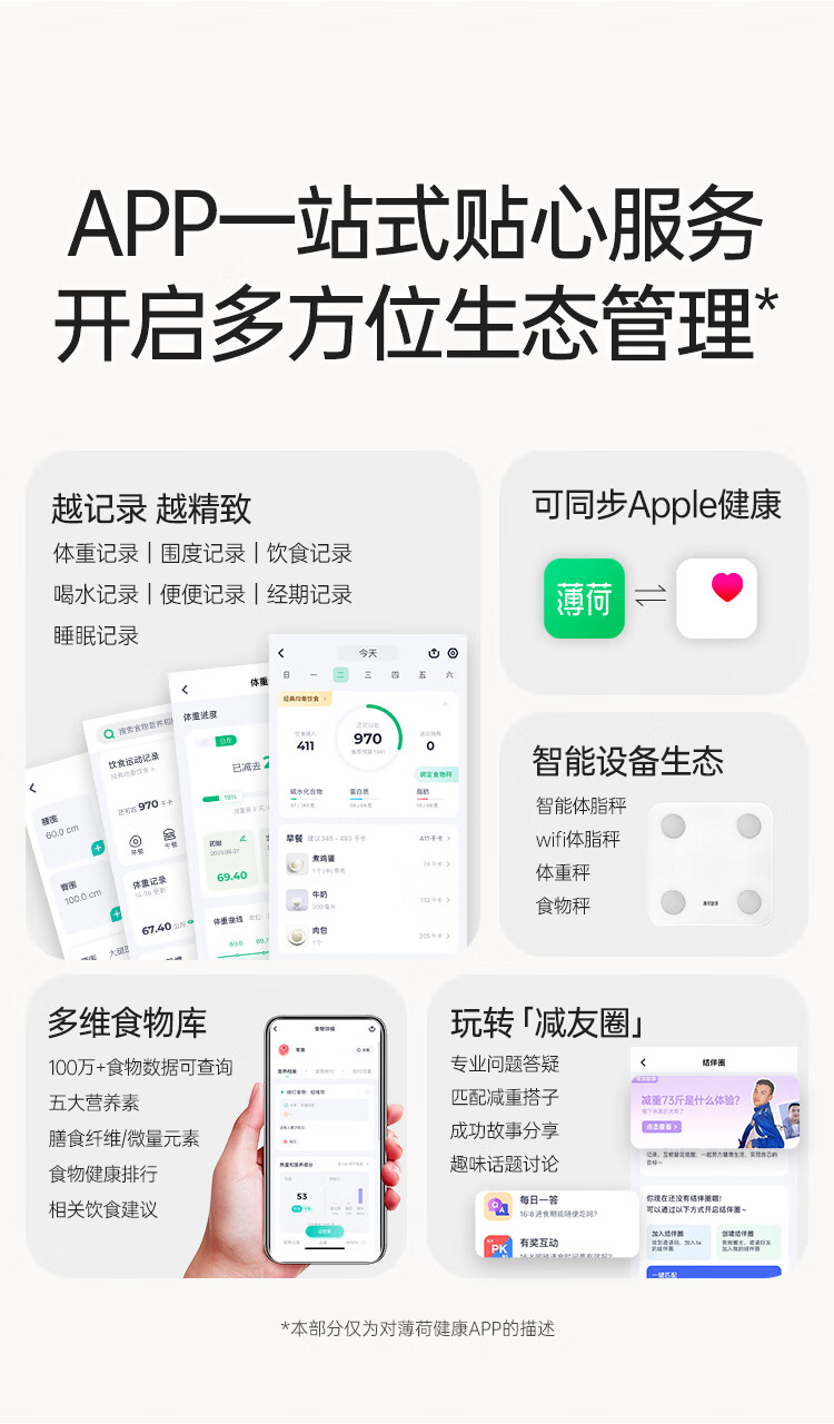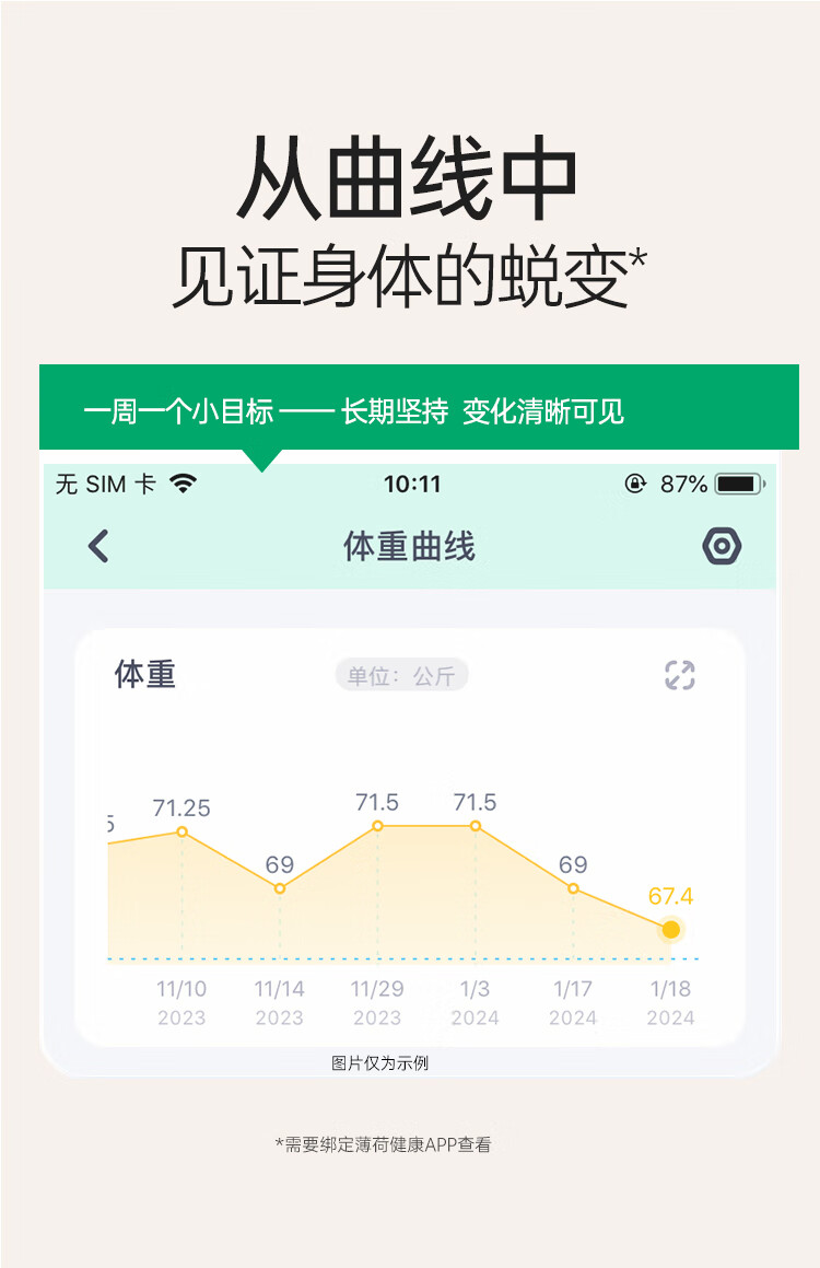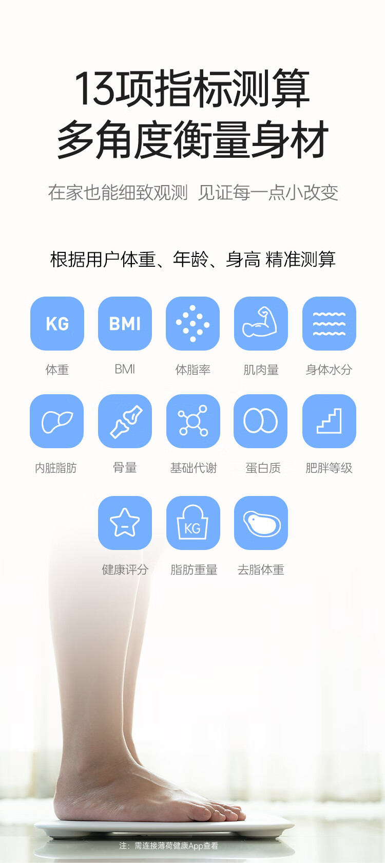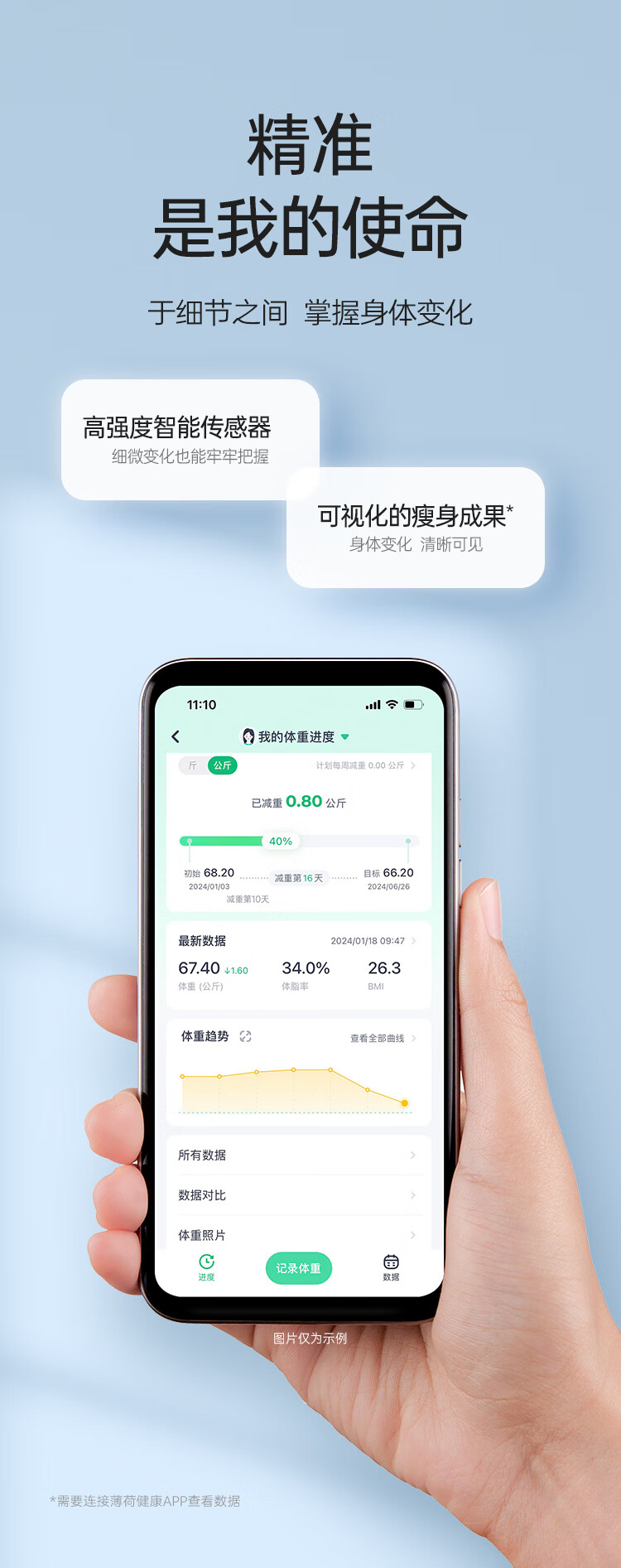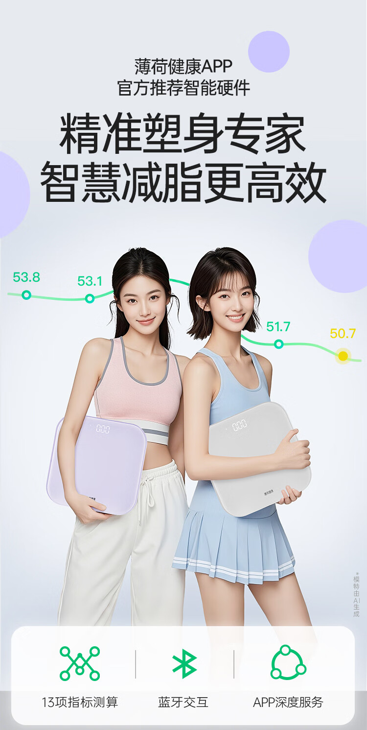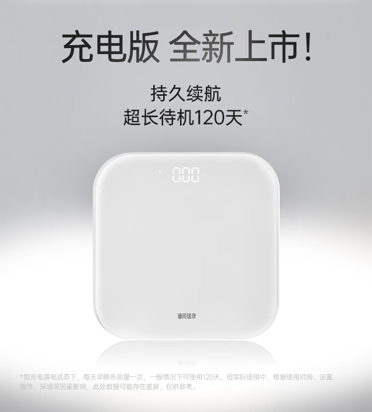 薄荷健康智能电子秤小型体重秤精准测算人体脂家用宿舍耐用(充电版)