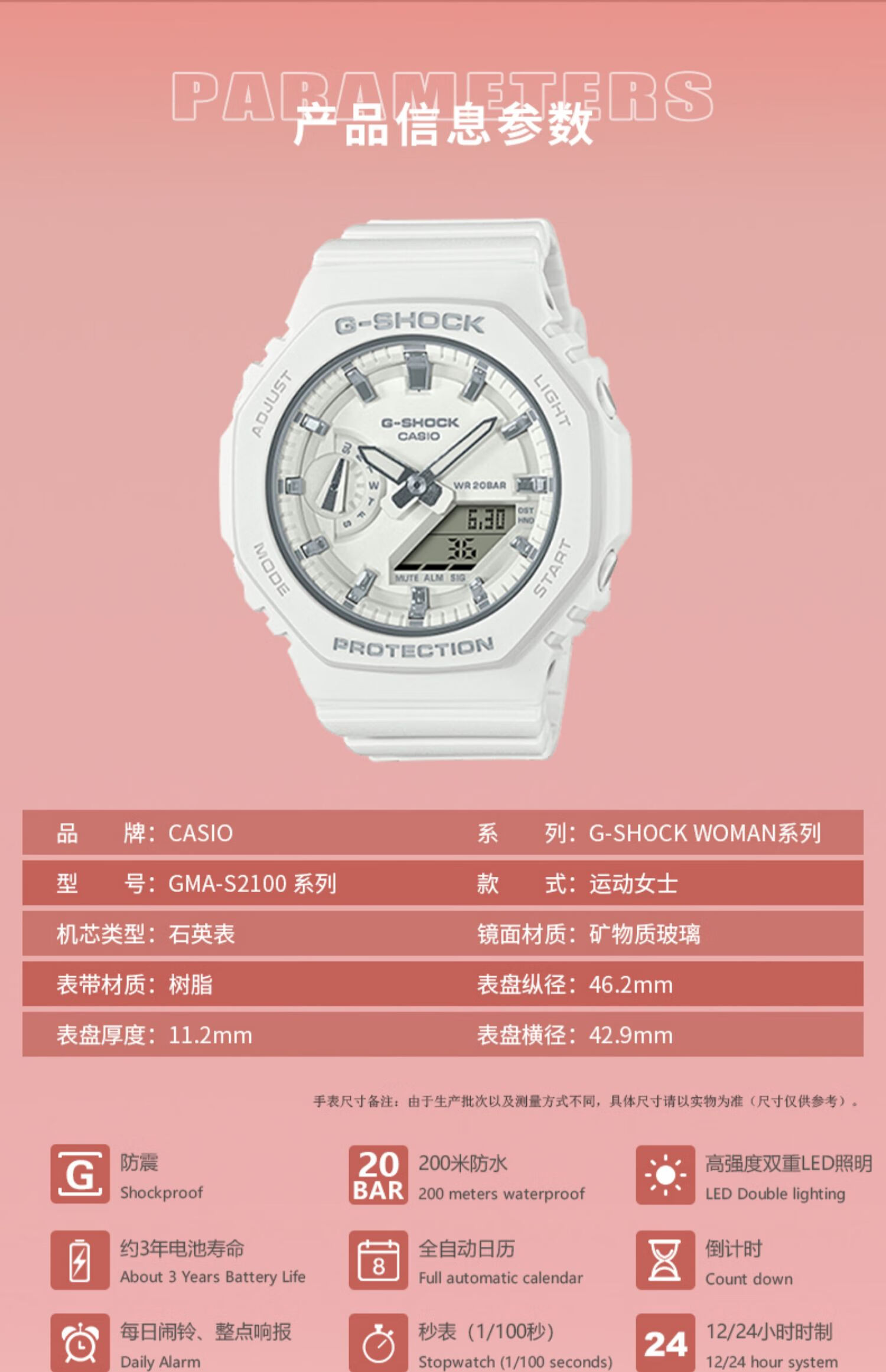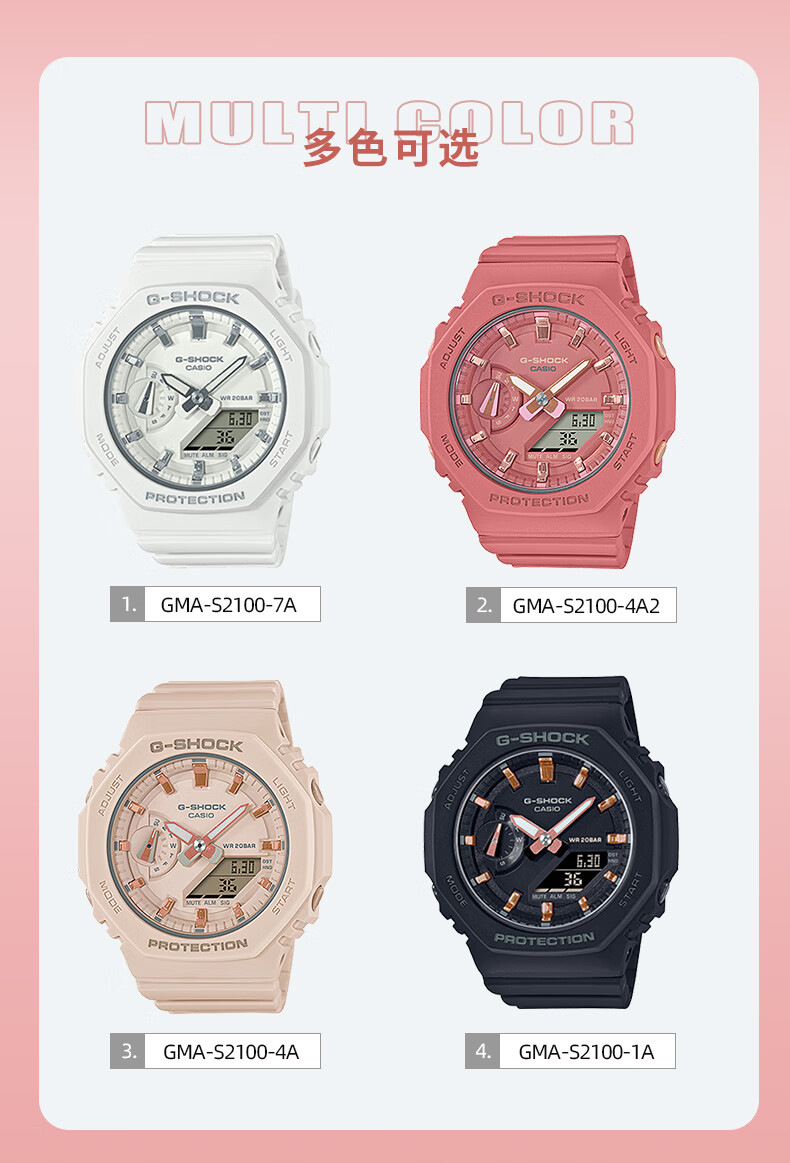 卡西欧(CASIO) G-SHOCK GIRLS GMA-S2100运动女表防水手表 GMA-S2100GA-7APR