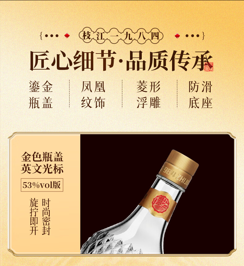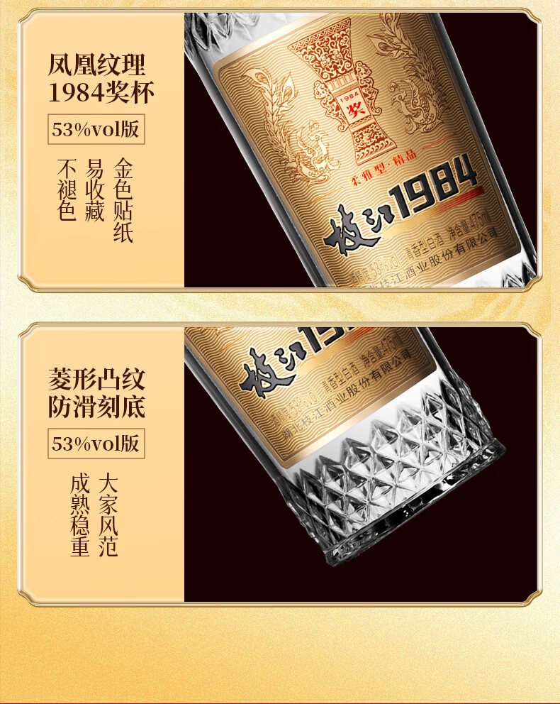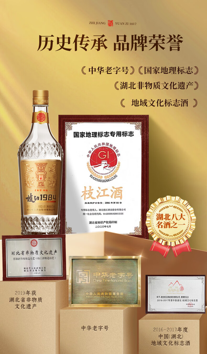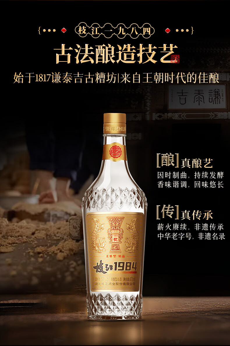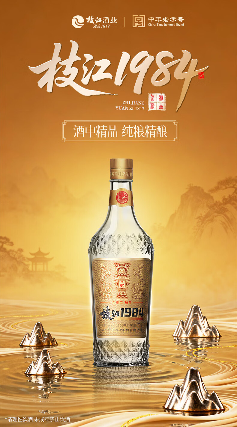 枝江1984柔雅精品 纯粮食绵柔清香型白酒 湖北名酒中华老字号 53%vol 475mL 1瓶