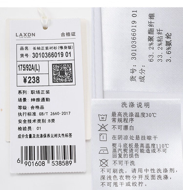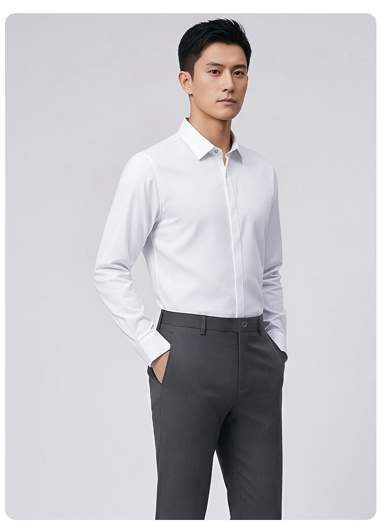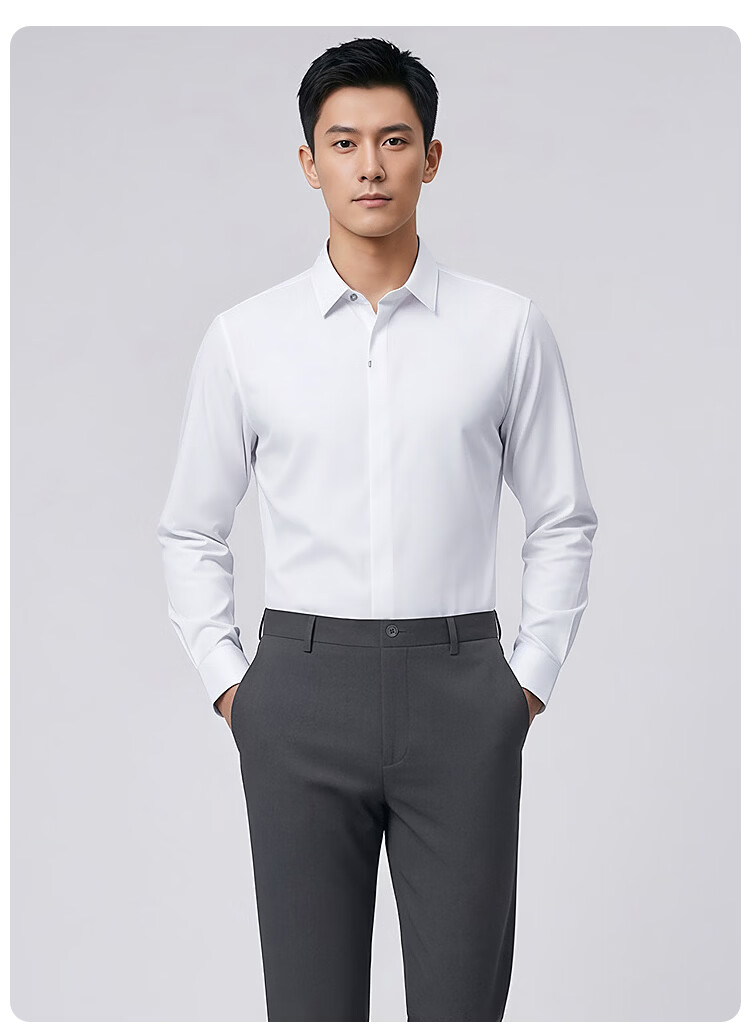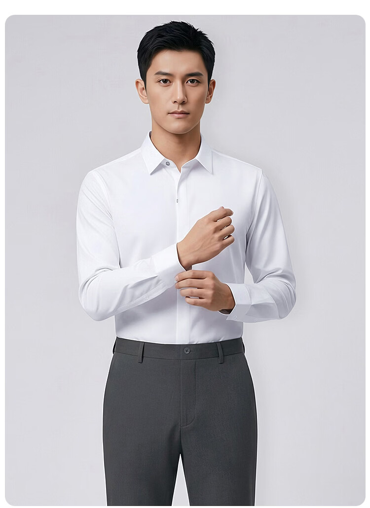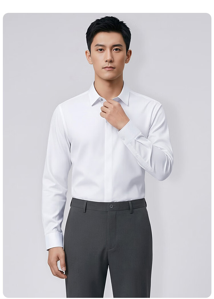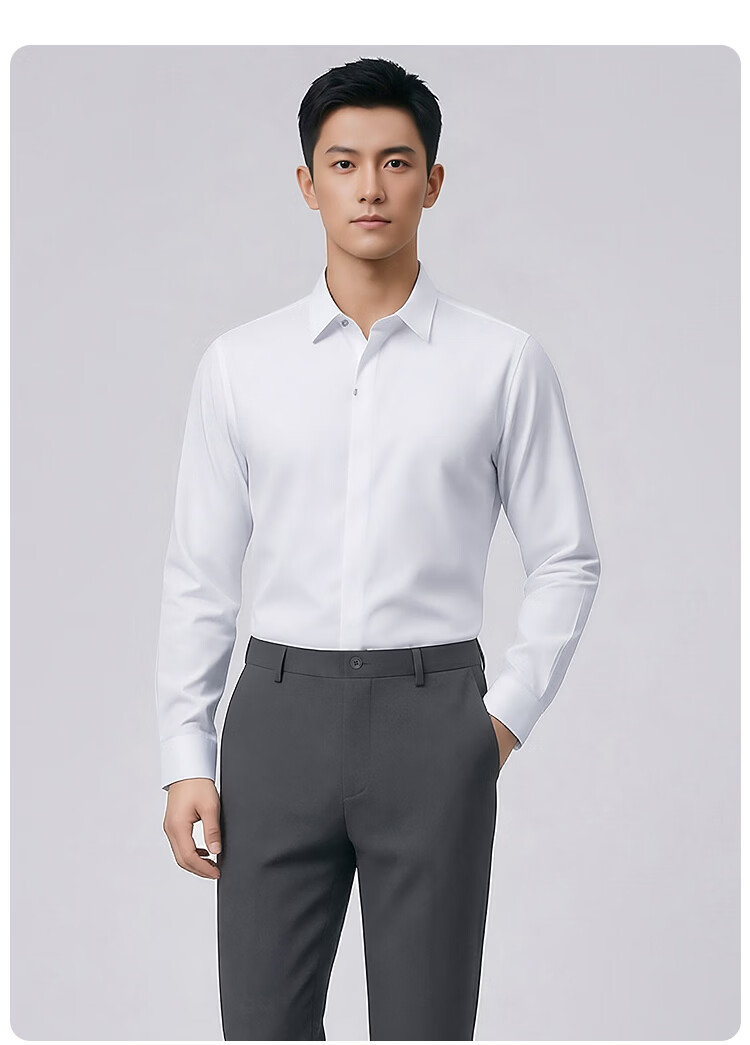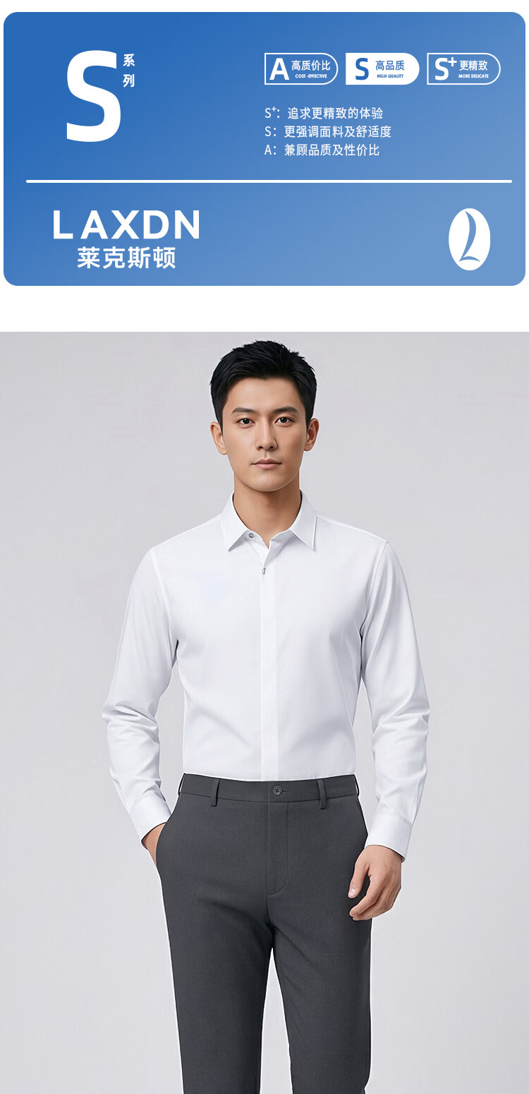 莱克斯顿(laxdn)男士长袖衬衫春秋莫代尔棉混纺舒适亲肤纯色正装商务休闲上衣男装 本白 S