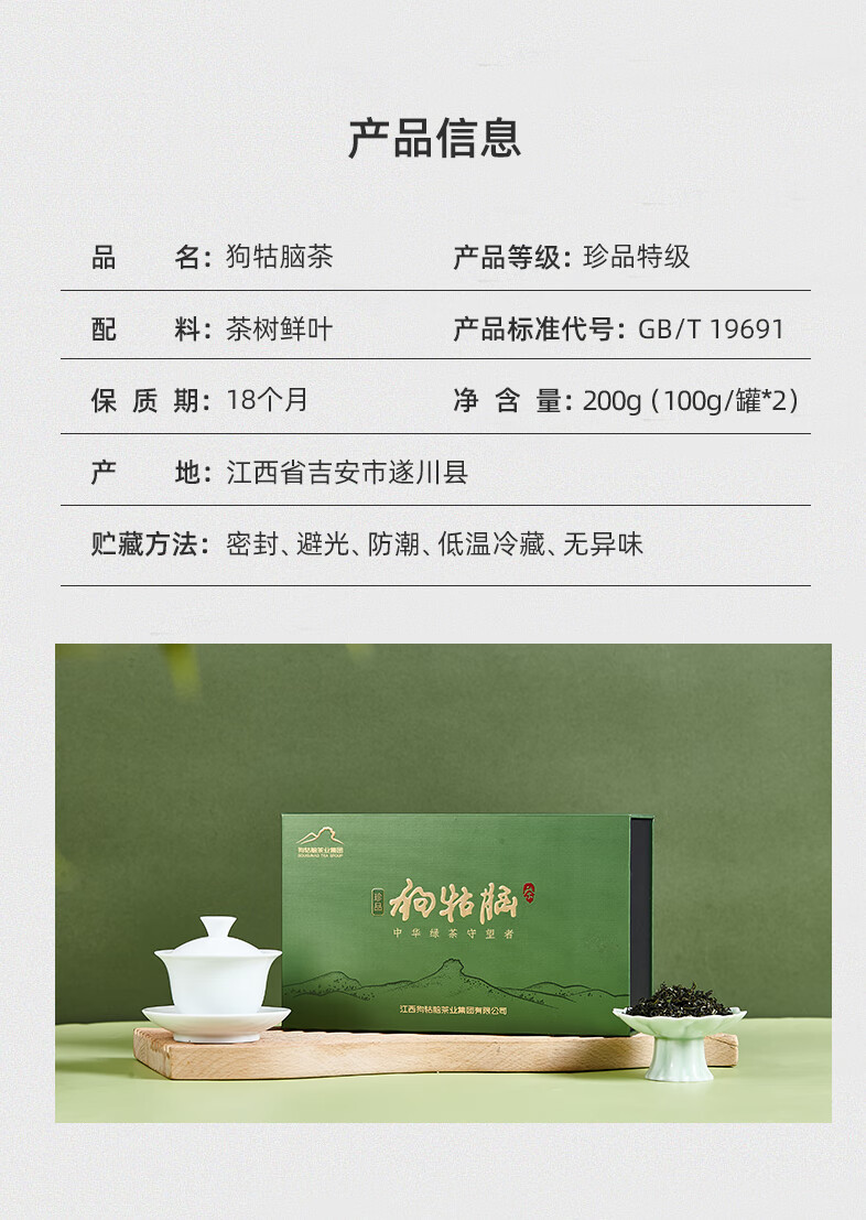狗牯脑2025新茶雨前春茶江西遂川狗牯脑茶叶珍品特级绿茶礼盒 100g*2罐