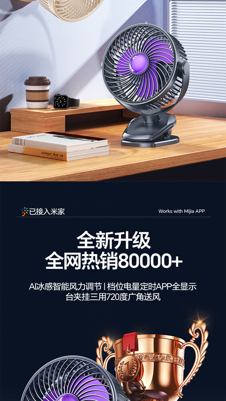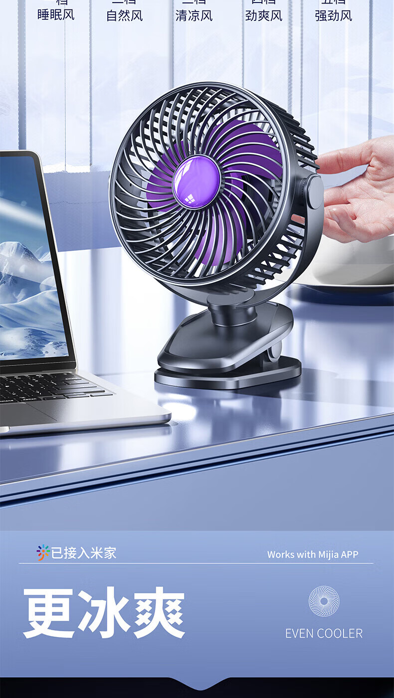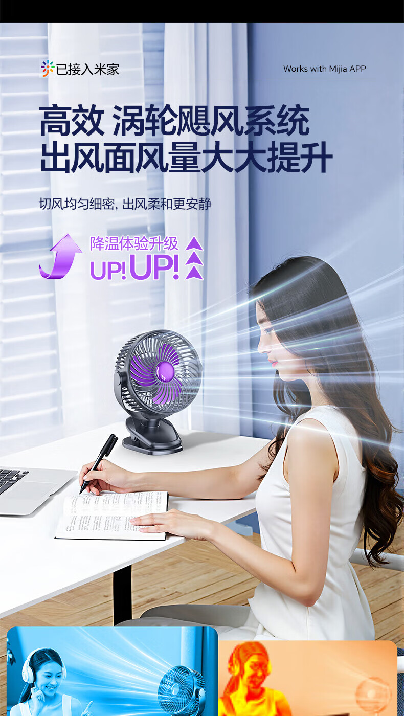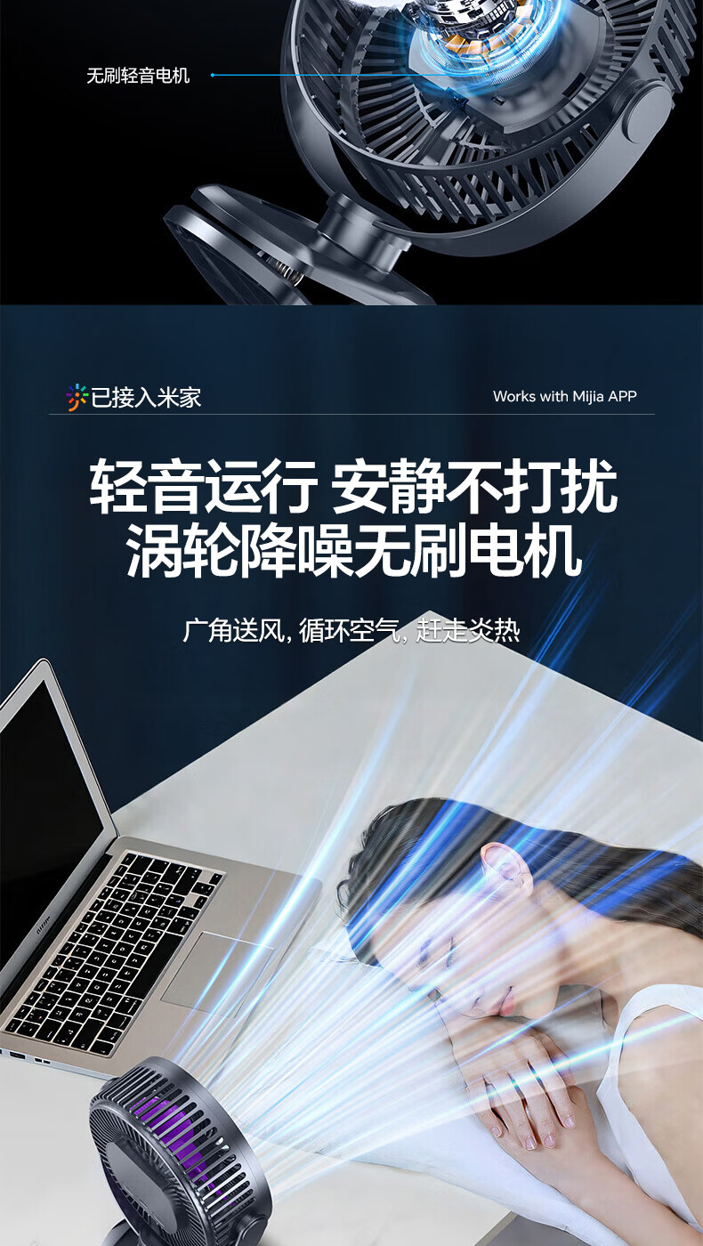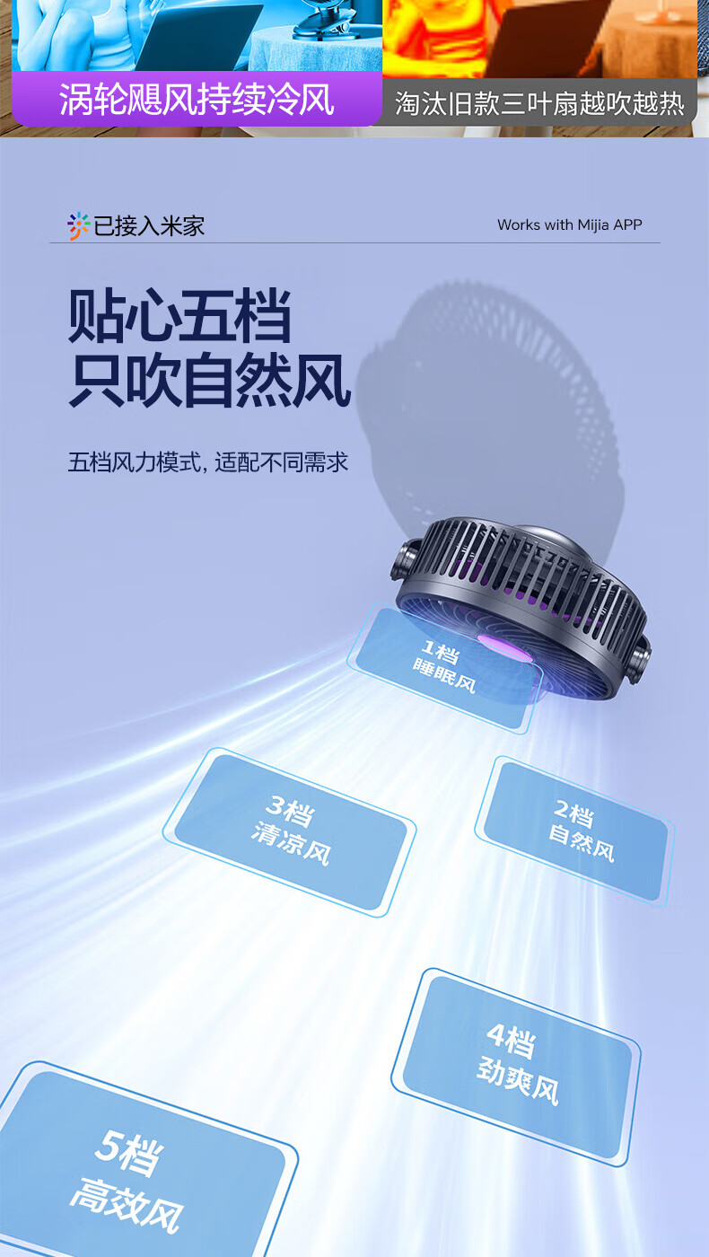 梦多福桌面小风扇【米家智能联动】空气循环扇卧室超静音小型电风扇台扇学生宿舍充电超长续航制冷空调扇 米白【超长续航】轻音低噪-五档冷风 充插两用-冰感循环风扇-720°可调