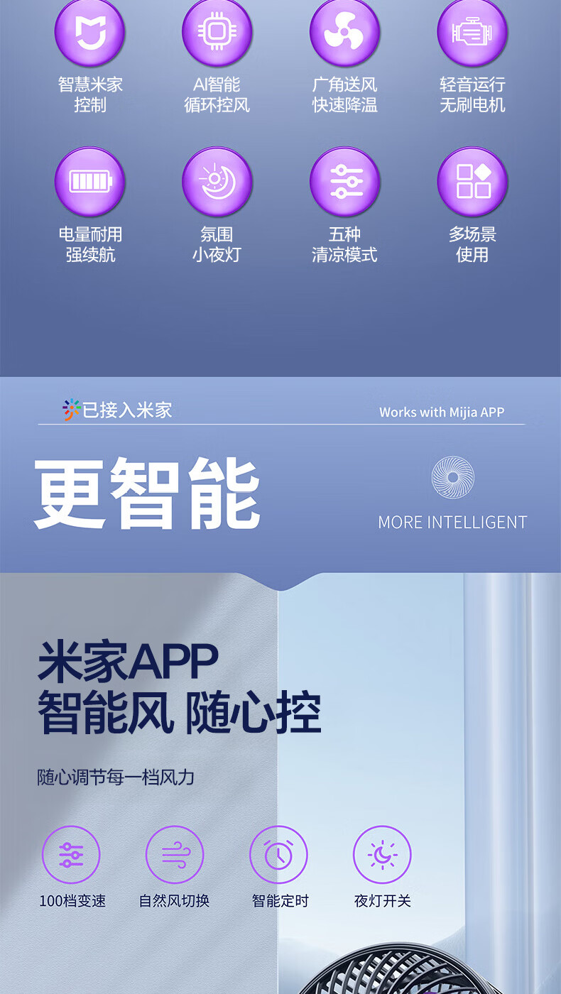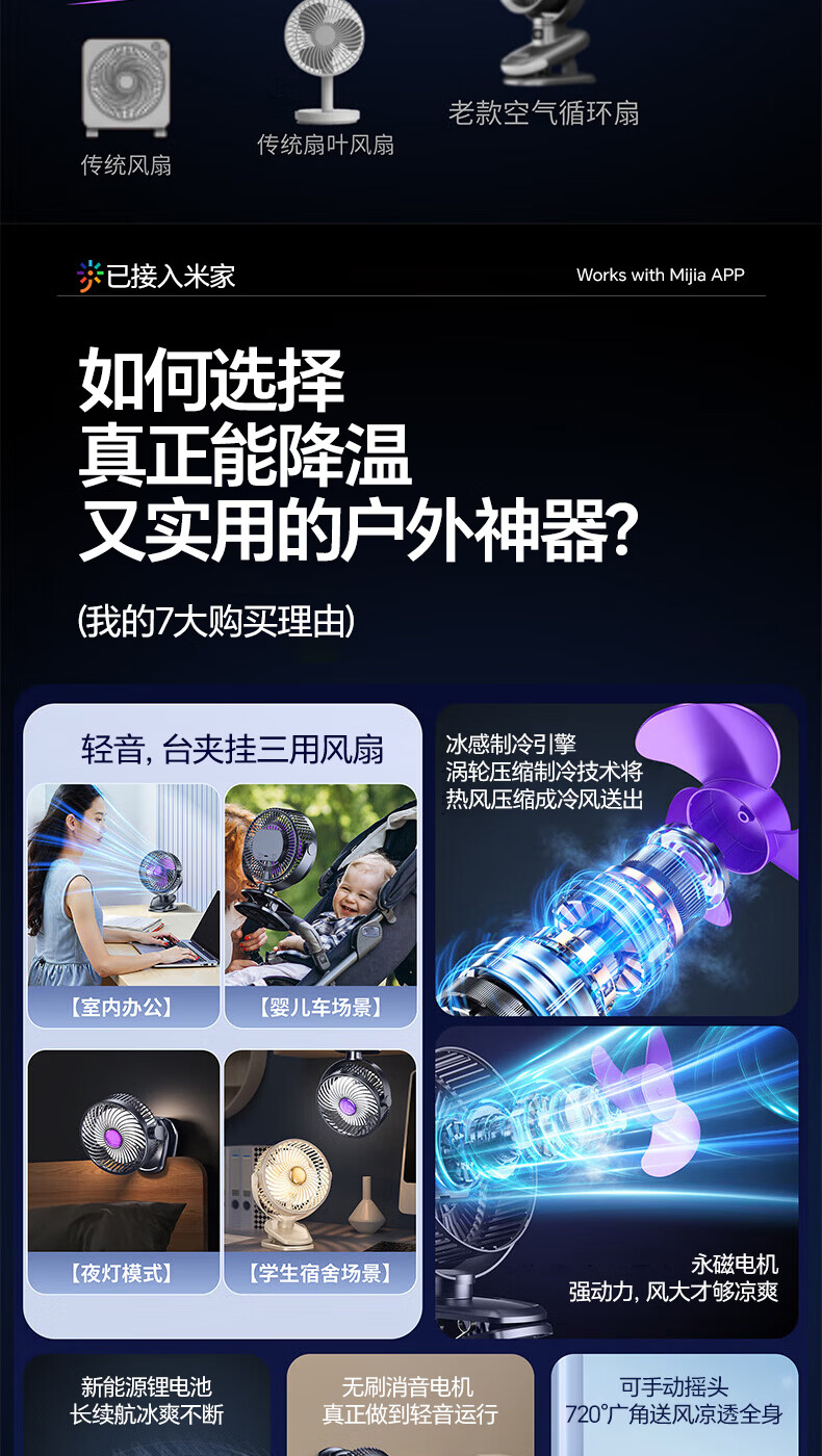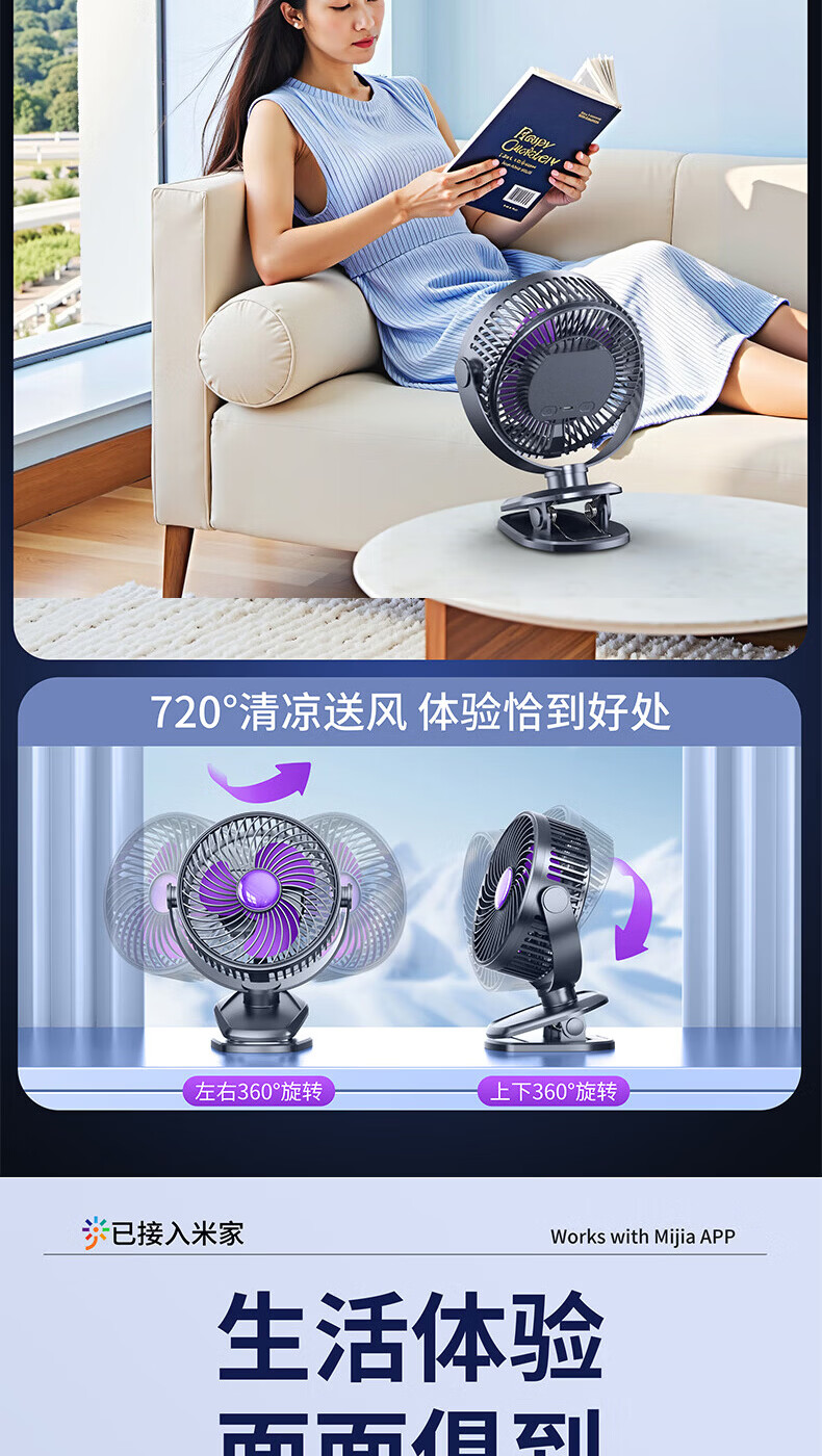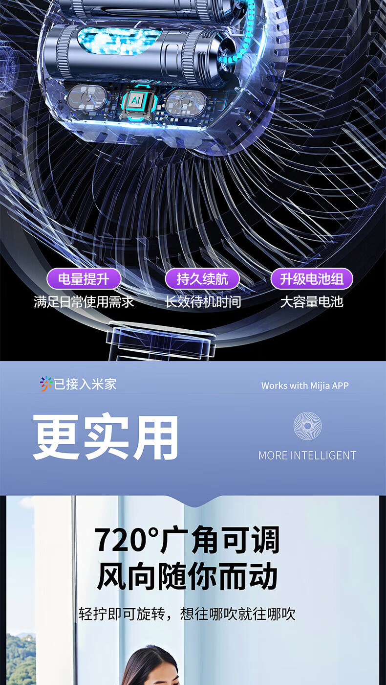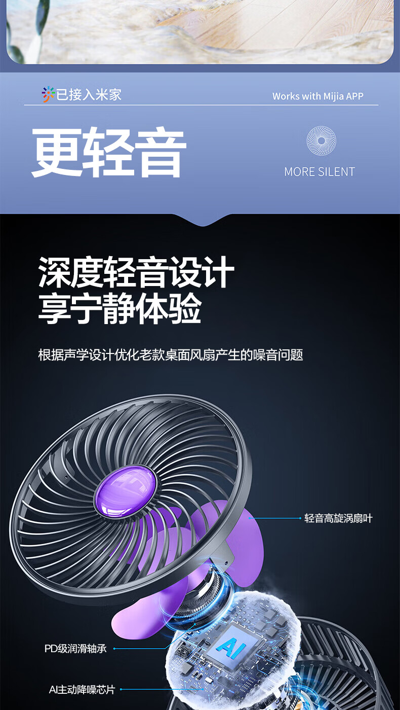 梦多福桌面小风扇【米家智能联动】空气循环扇卧室超静音小型电风扇台扇学生宿舍充电超长续航制冷空调扇 米白【超长续航】轻音低噪-五档冷风 充插两用-冰感循环风扇-720°可调