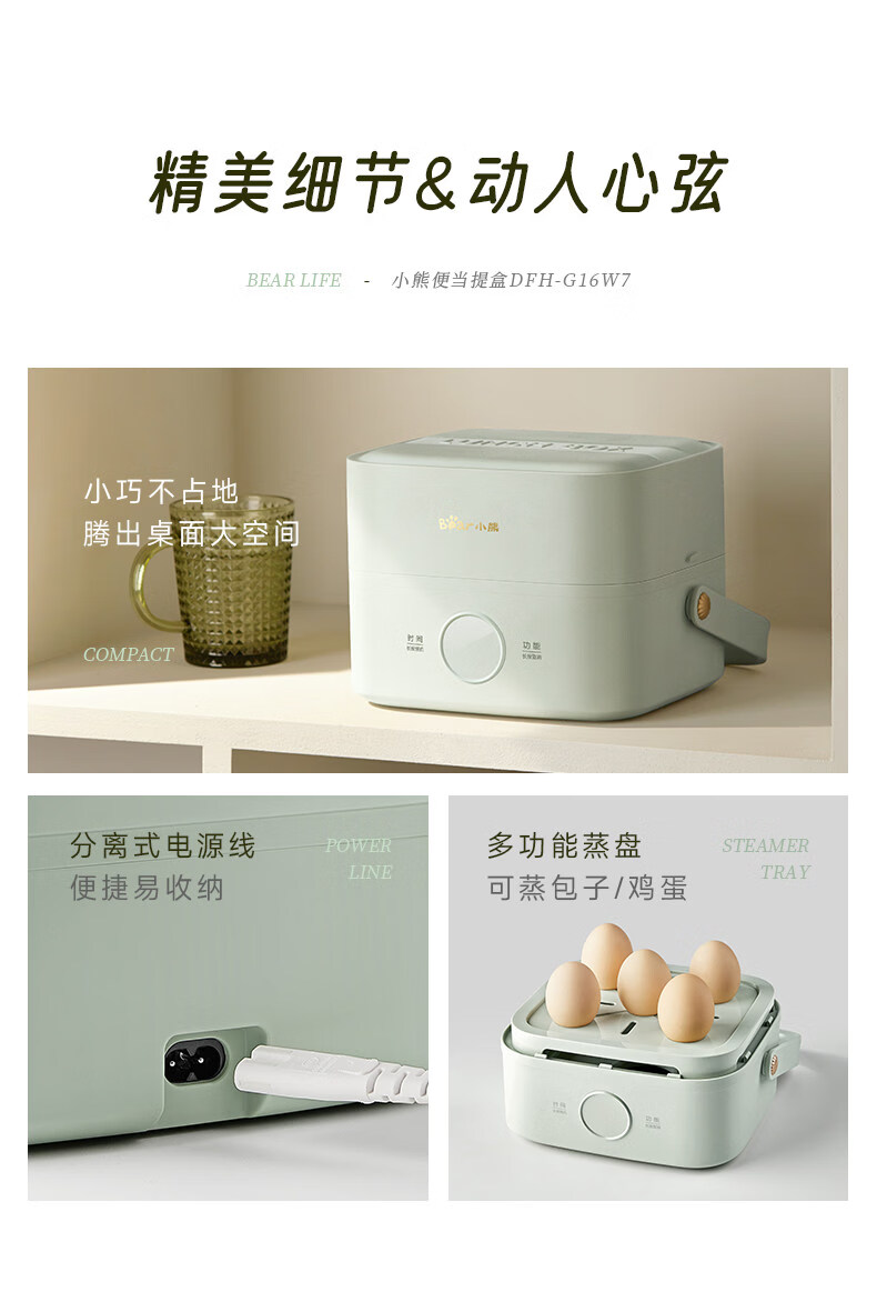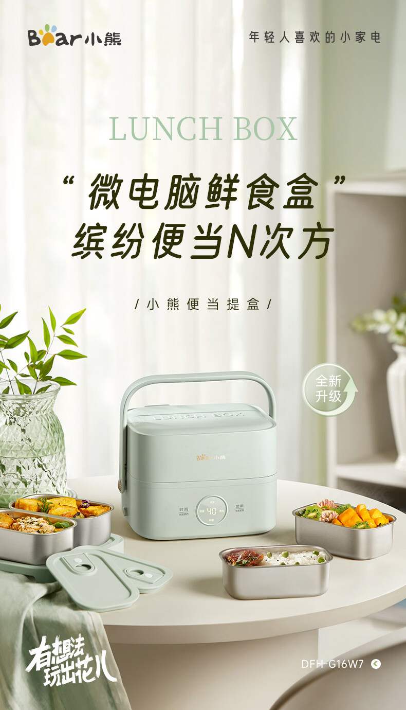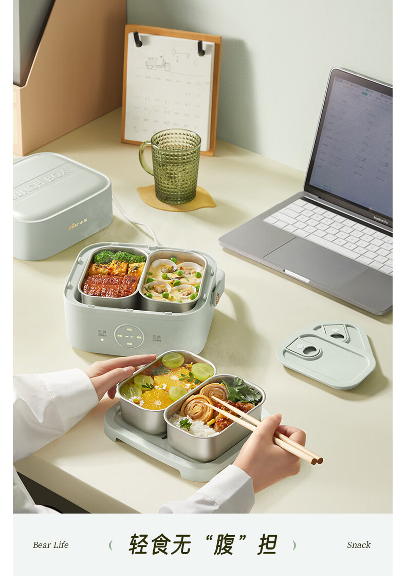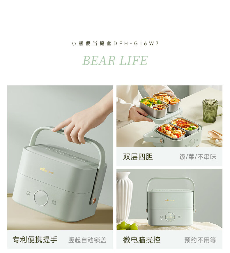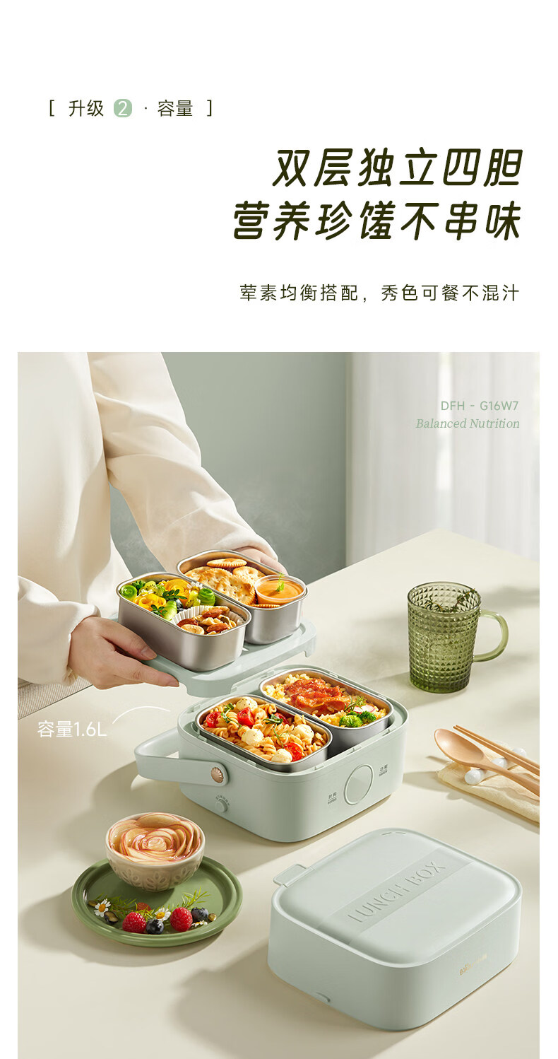 小熊(Bear)电热饭盒 加热饭盒 热饭神器上班族双层304不锈钢办公室可插电加热饭盒DFH-G16W7