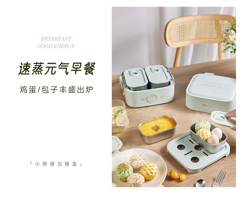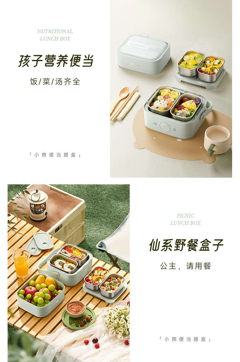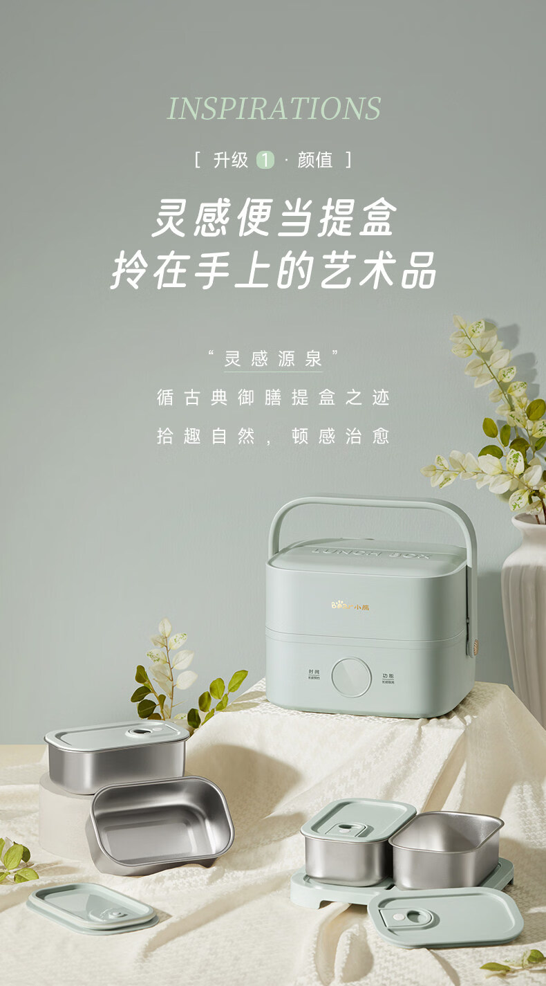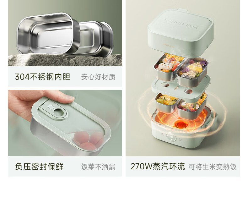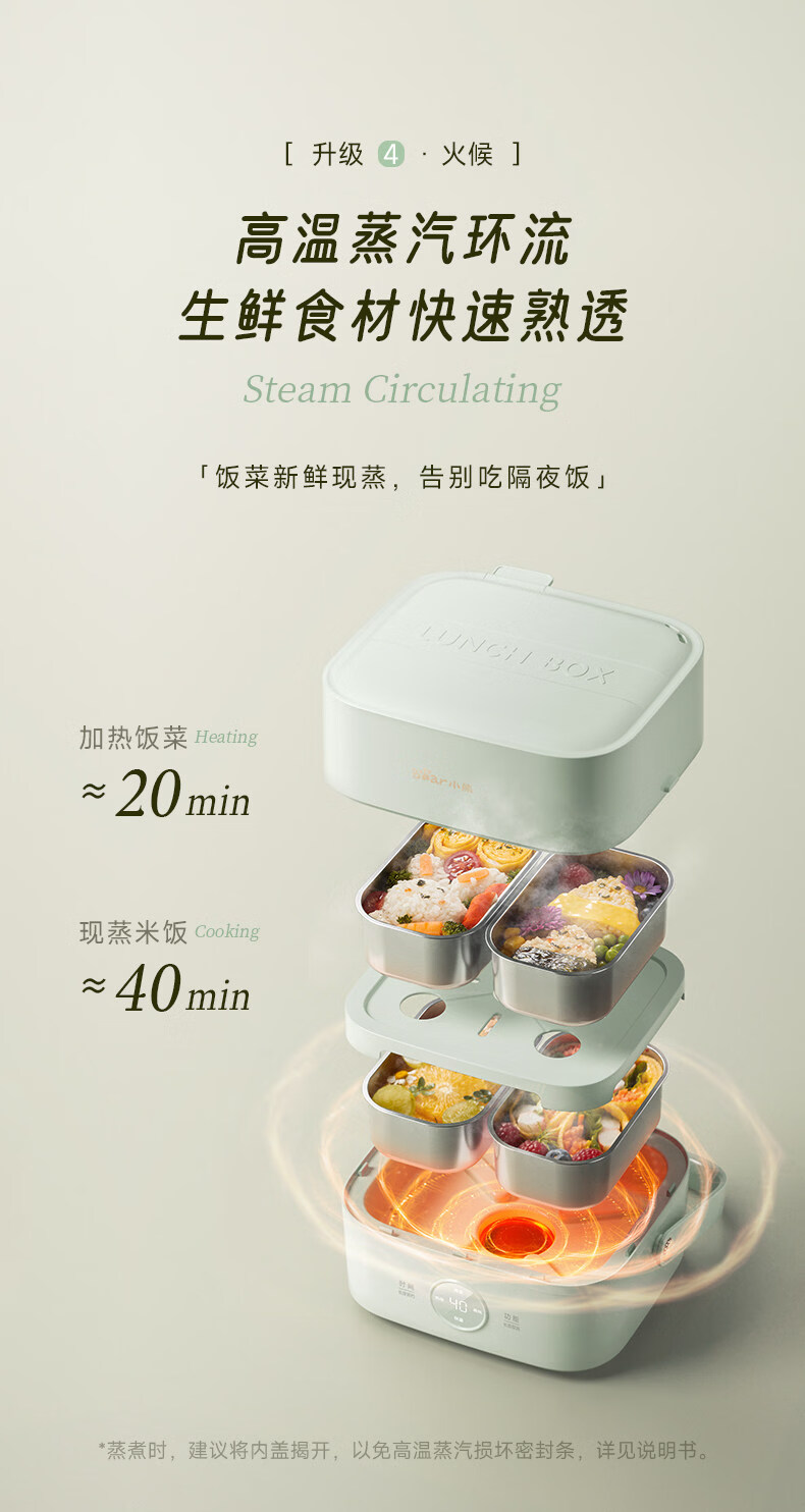 小熊(Bear)电热饭盒 加热饭盒 热饭神器上班族双层304不锈钢办公室可插电加热饭盒DFH-G16W7