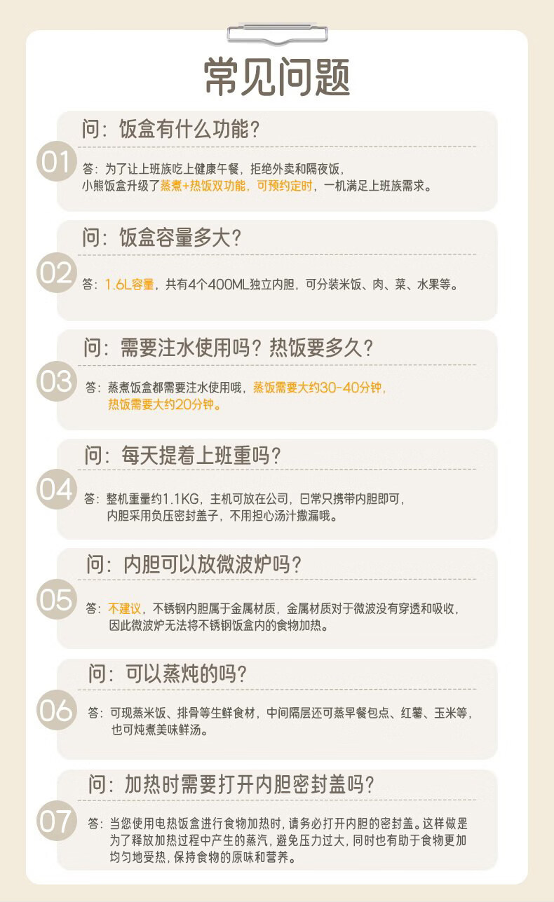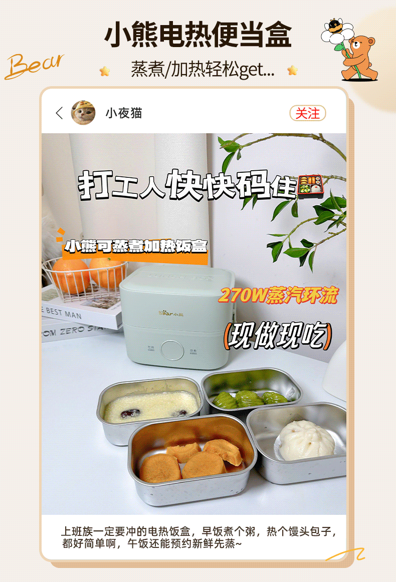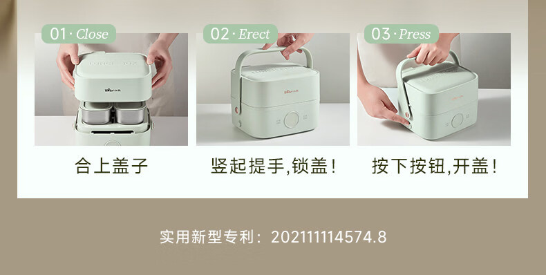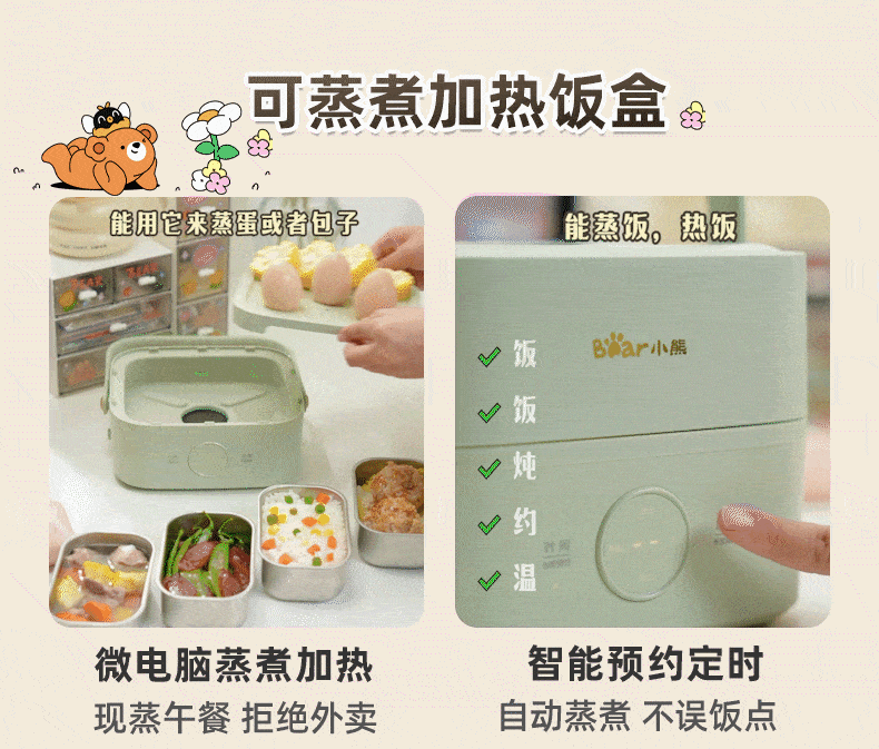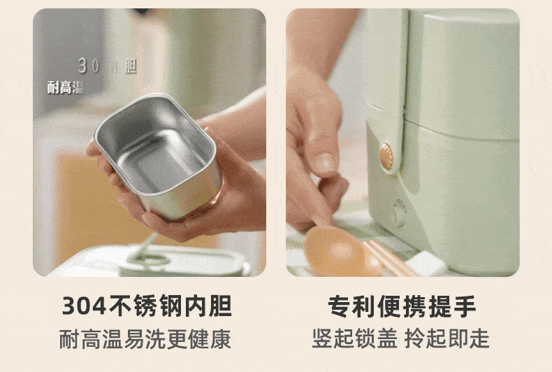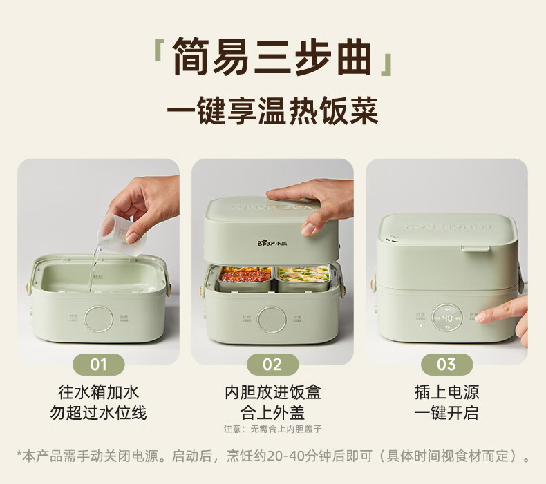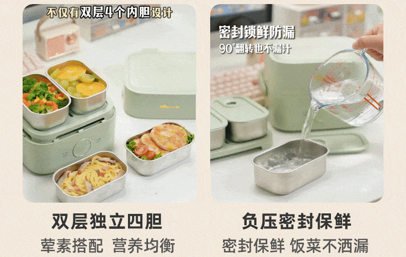 小熊(Bear)电热饭盒 加热饭盒 热饭神器上班族双层304不锈钢办公室可插电加热饭盒DFH-G16W7