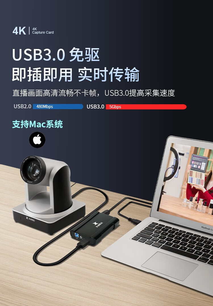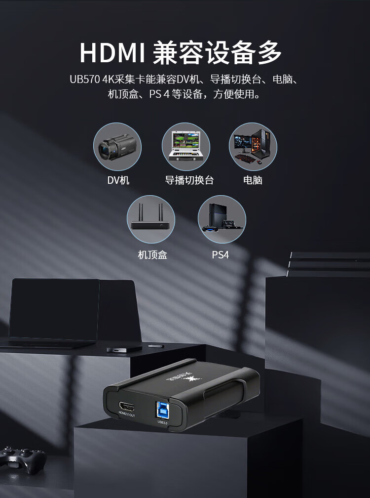 TCHD VideoTC- UB530 4K 视频采集卡 hdmi高清钉钉会议游戏switch/ps5直播USB外置电脑图像录制盒