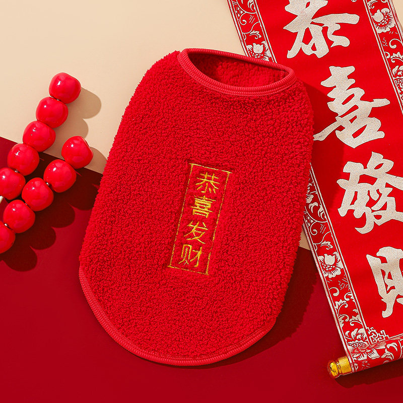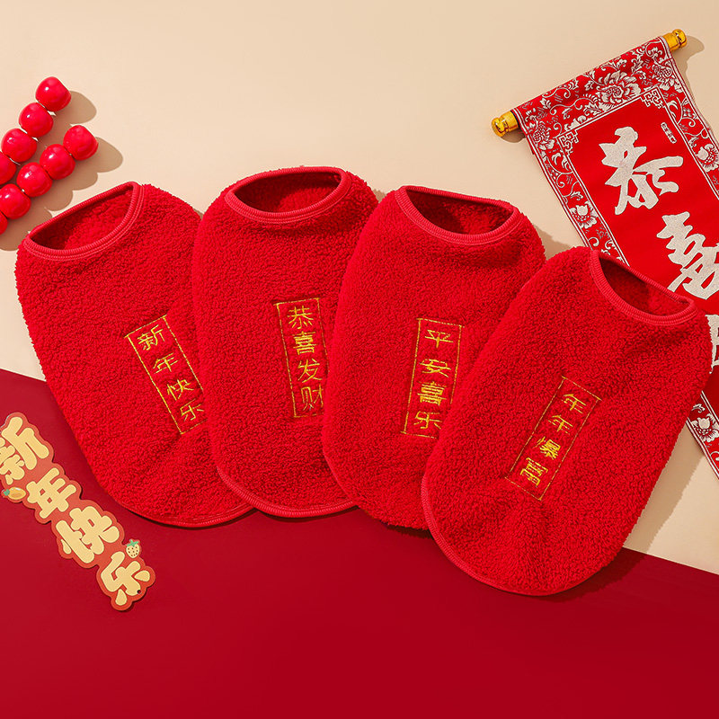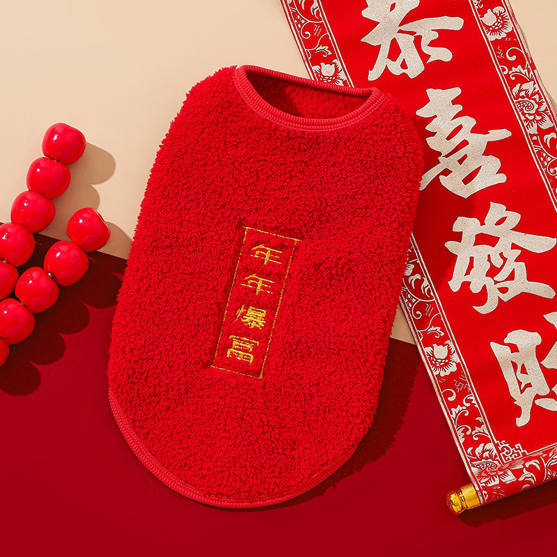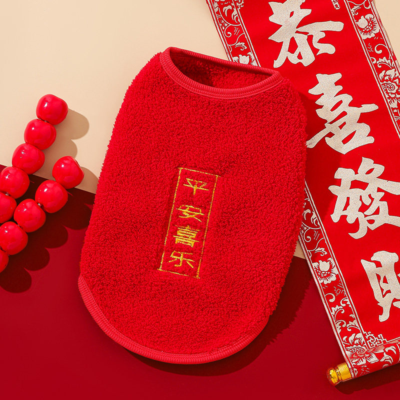 瓜洲牧新年猫咪衣服秋冬加绒保暖背心布偶小猫蓝猫幼猫宠物过年喜庆唐装 新年快乐【加厚双面毛绒刺绣】 S 【建议3-5斤】