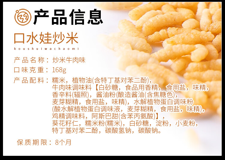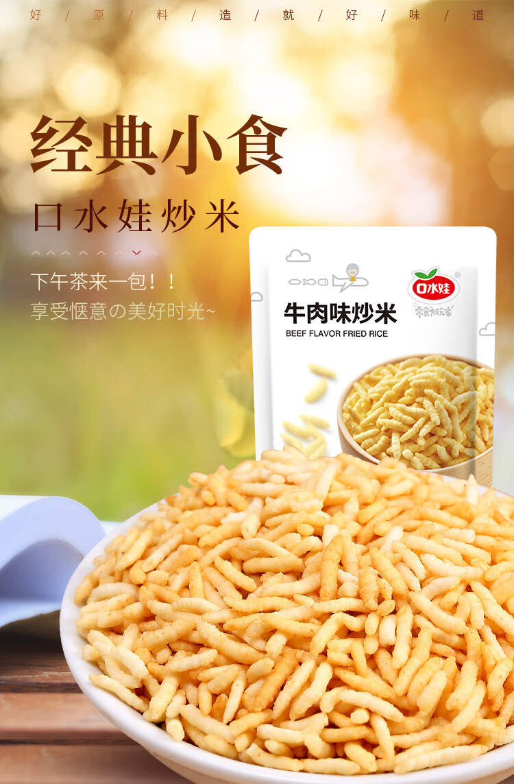 口水娃炒米牛肉味168g休闲零食膨化食品追剧办公室解馋小零食
