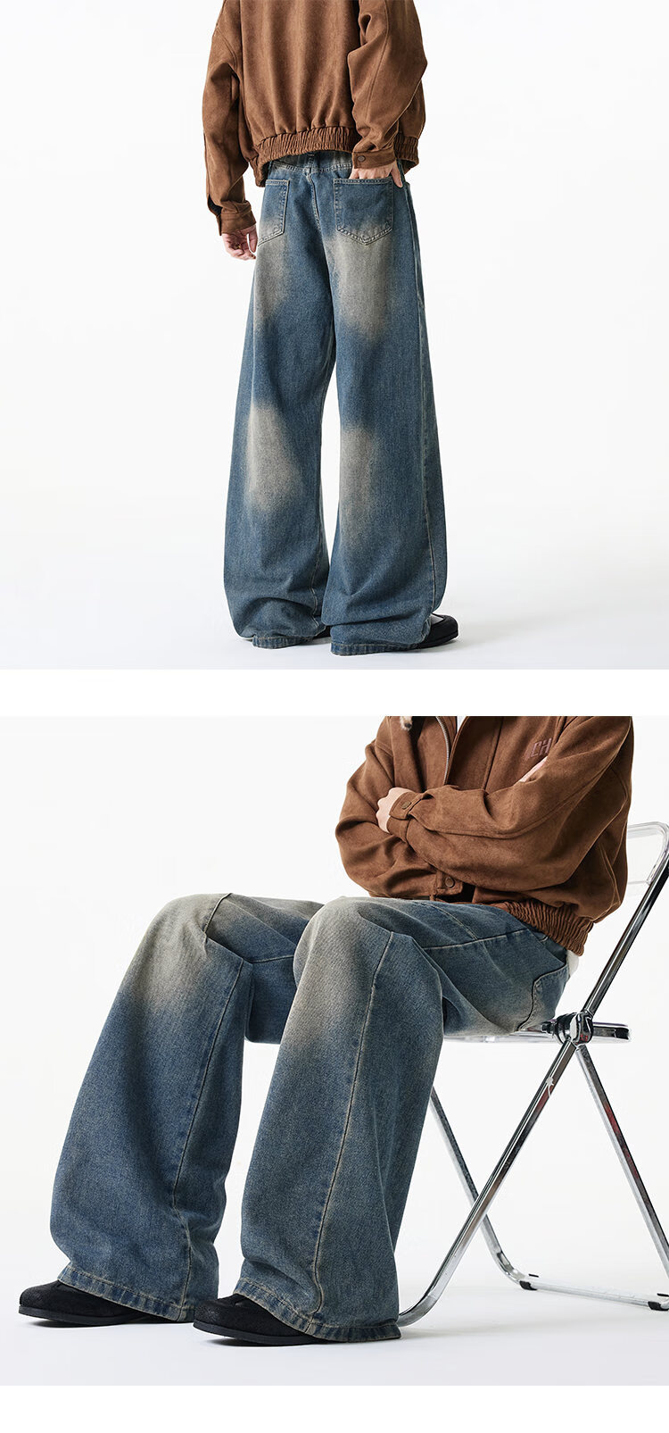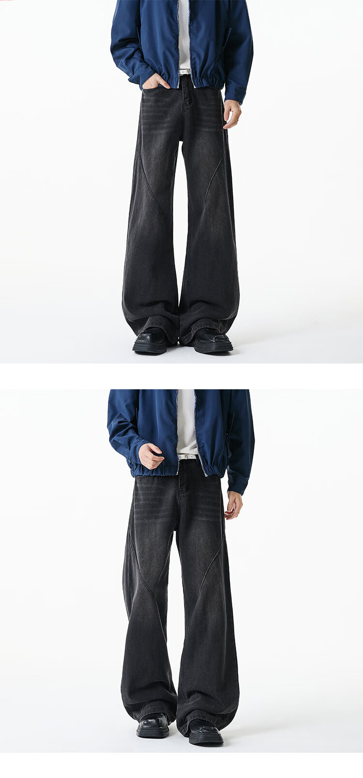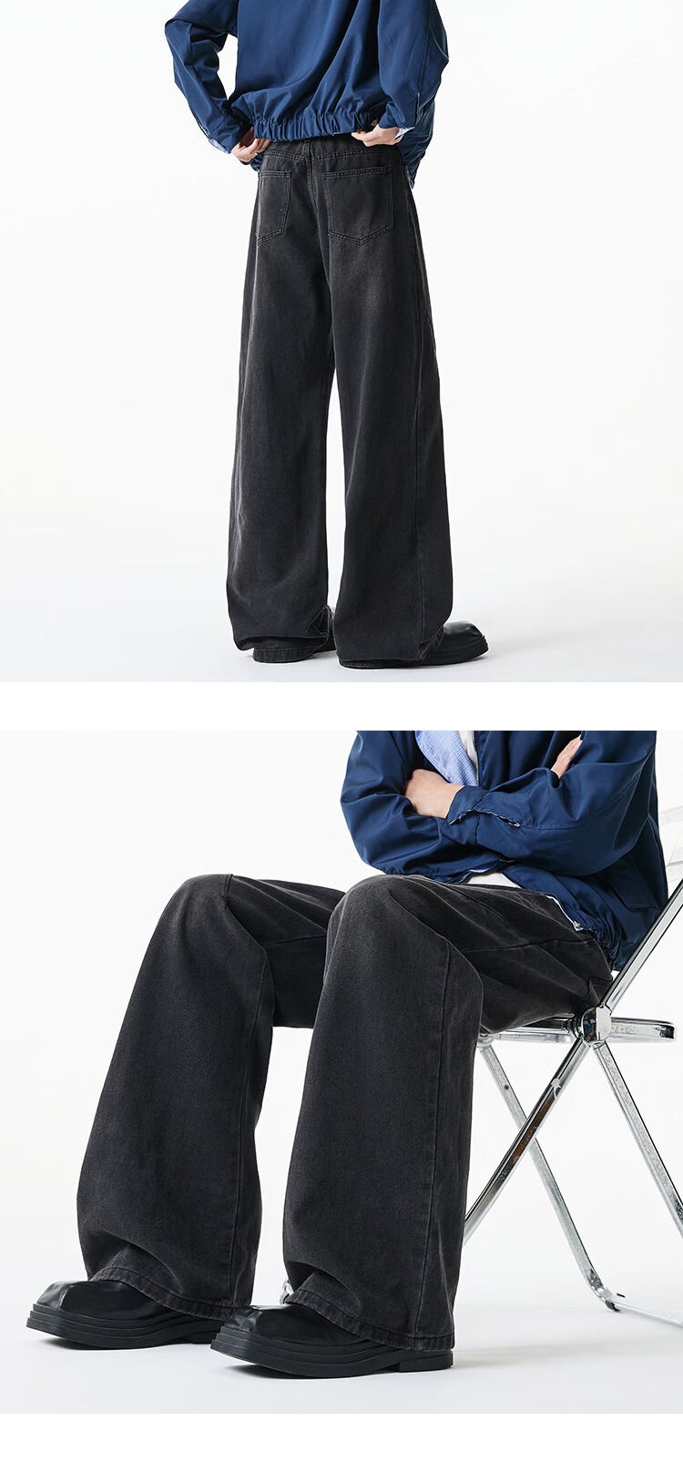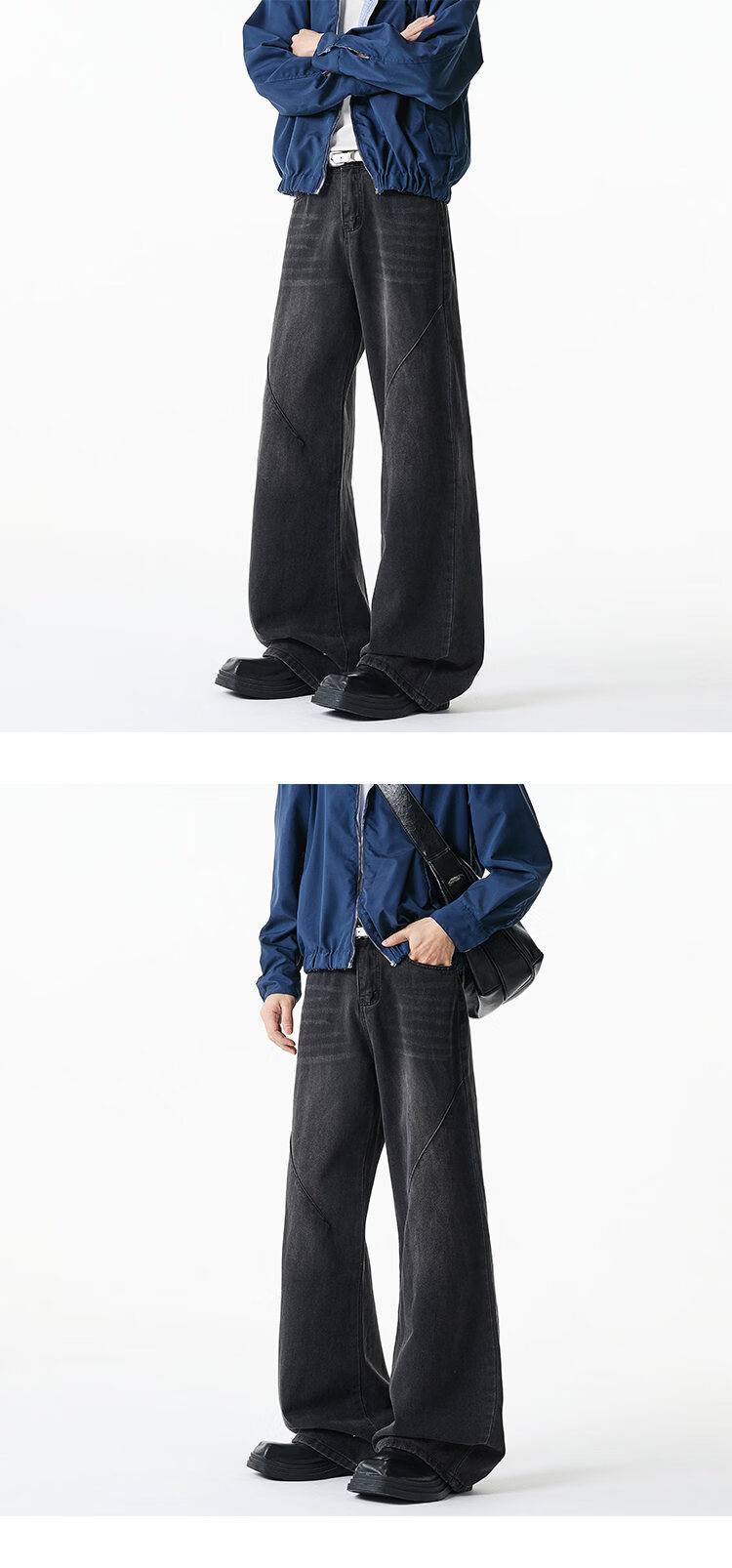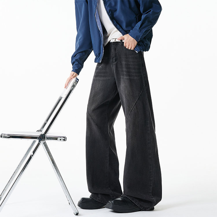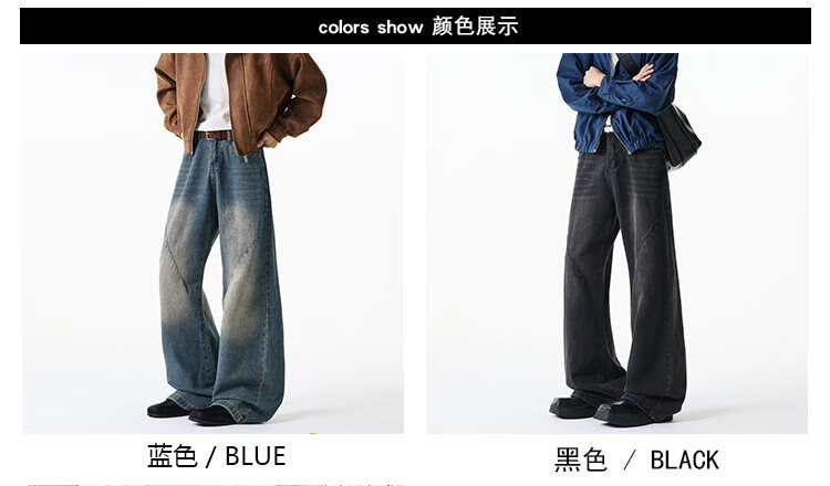 NEW OR MODE美式复古牛仔裤男士冬季新款加绒加厚保暖宽松休闲直筒阔腿长裤子 黑色加绒 M 【建议90-110斤】