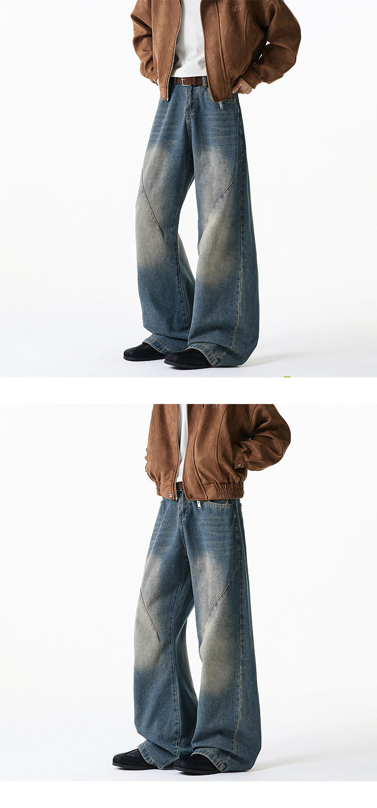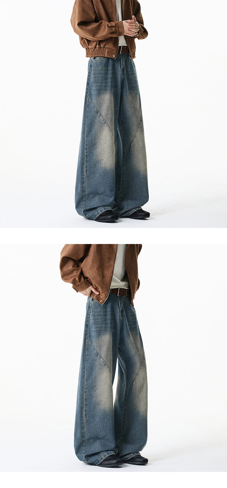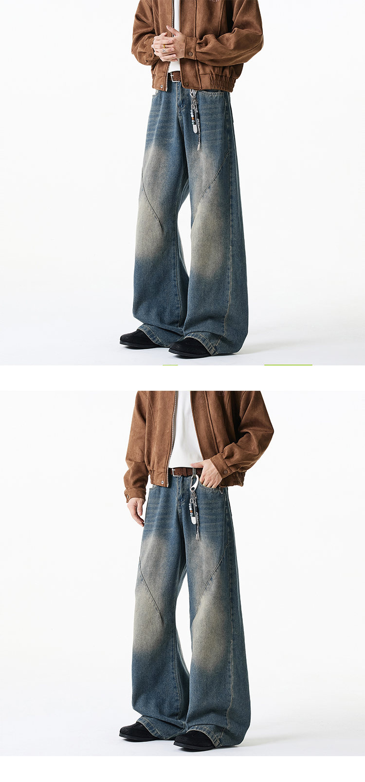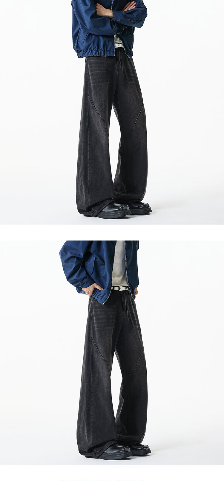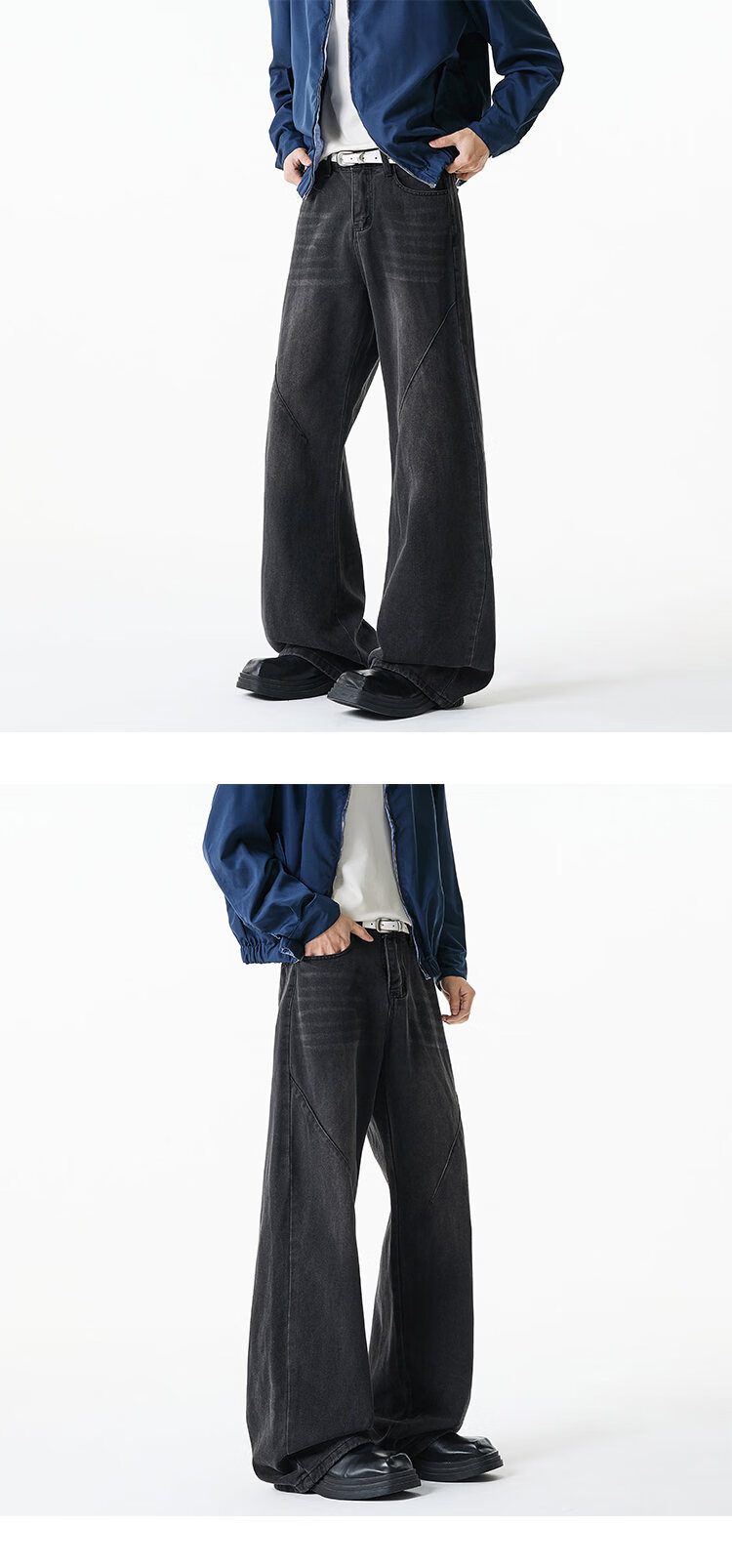 NEW OR MODE美式复古牛仔裤男士冬季新款加绒加厚保暖宽松休闲直筒阔腿长裤子 黑色加绒 M 【建议90-110斤】