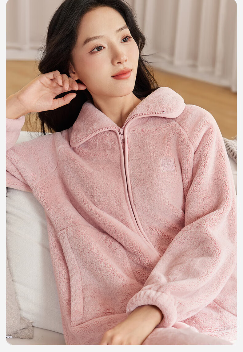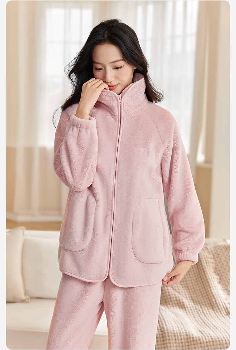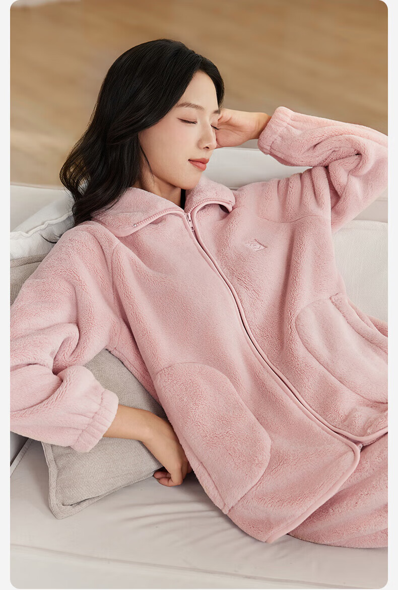 十月结晶双面绒家居服女士秋冬家居可外出服加厚蓬松抗静电不掉毛 【双面暖绒绒】黛月粉-推荐温度:-5-5℃ L(推荐体重120-140斤)