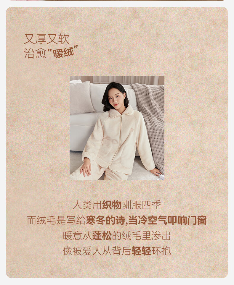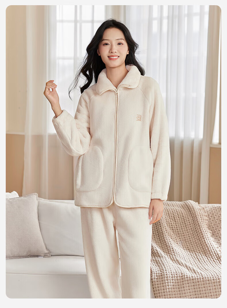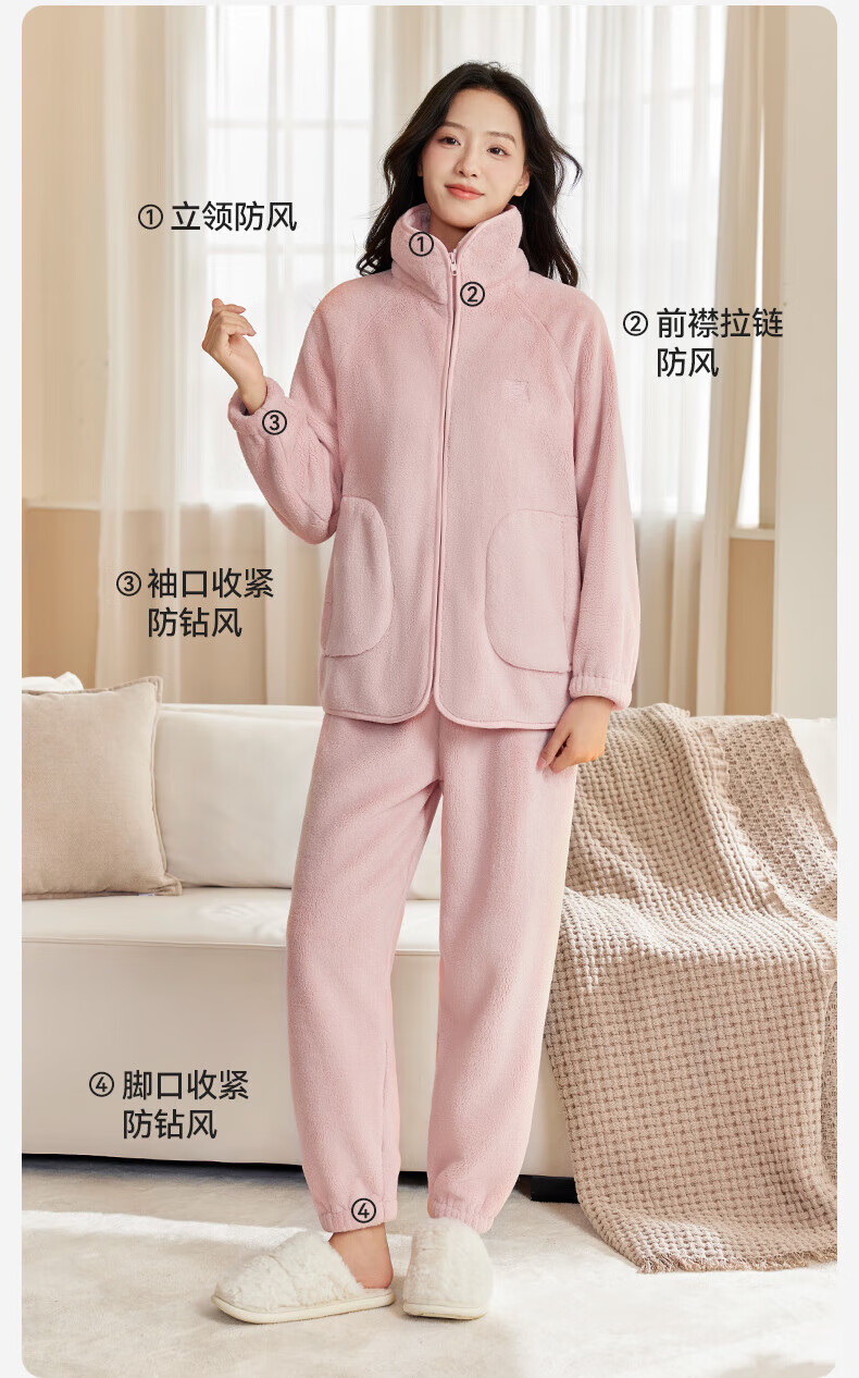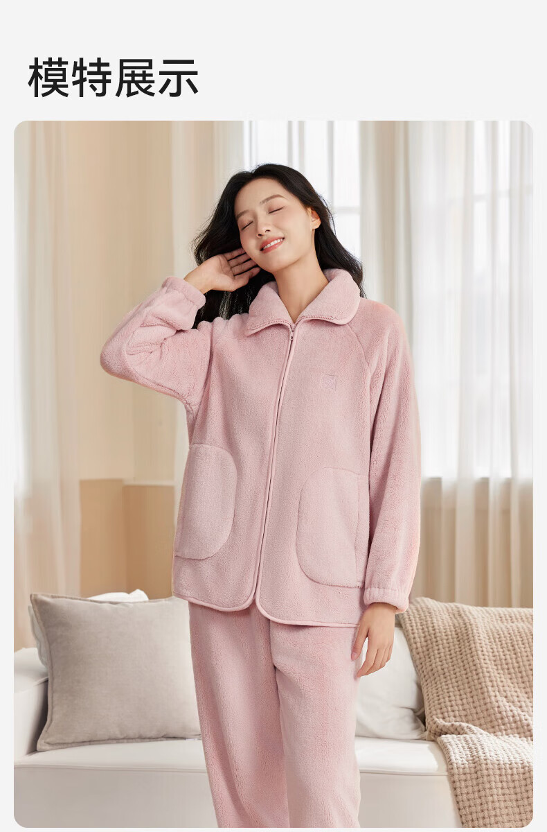 十月结晶双面绒家居服女士秋冬家居可外出服加厚蓬松抗静电不掉毛 【双面暖绒绒】黛月粉-推荐温度:-5-5℃ L(推荐体重120-140斤)