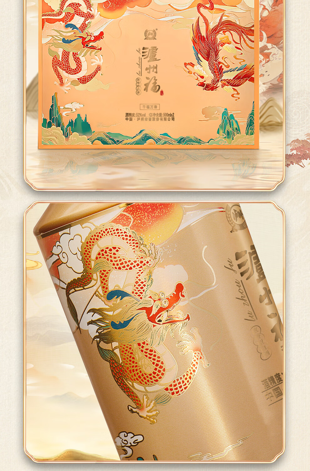 泸州福龙凤呈祥礼盒 泸州老窖股份出品 52度优级 浓香型白酒 52%vol 500mL 2瓶