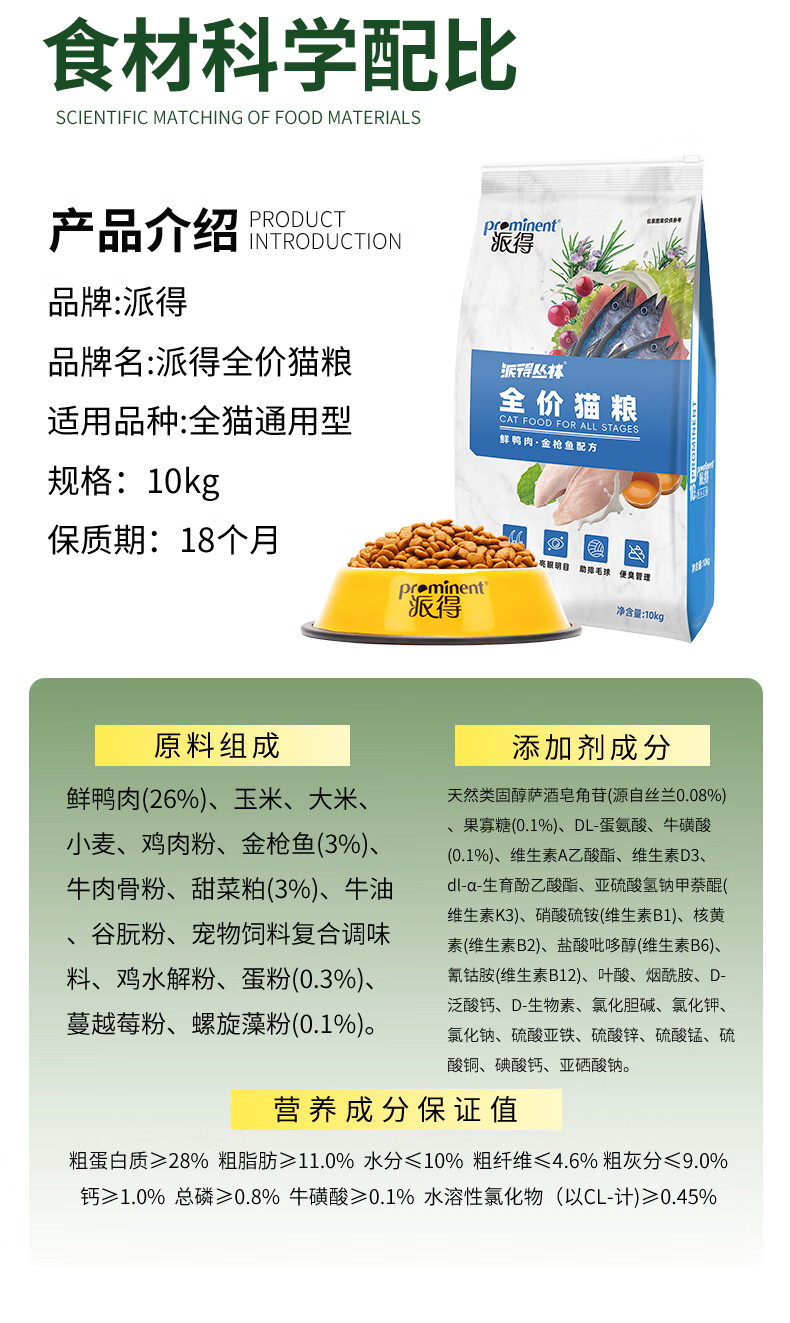 派得猫粮 幼猫成猫 英短蓝猫布偶流浪猫美短全价全阶段通用猫咪主粮 鲜鸭肉金枪鱼配方丨20斤丨送猫条