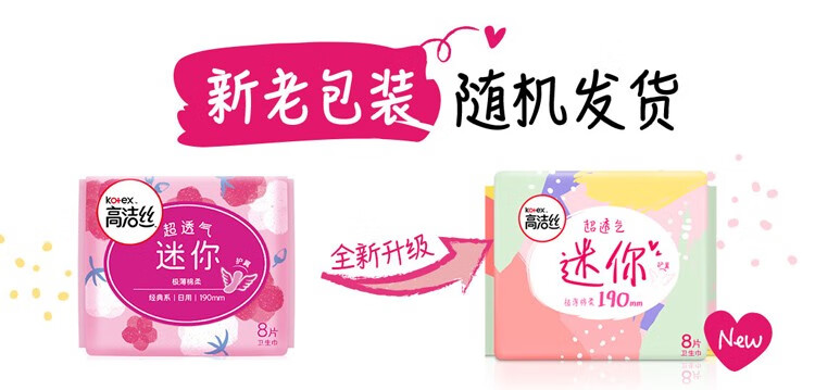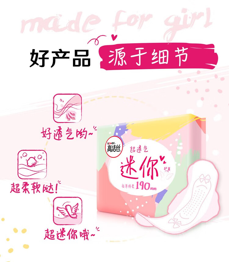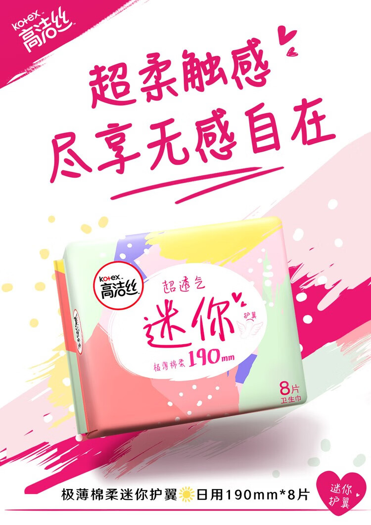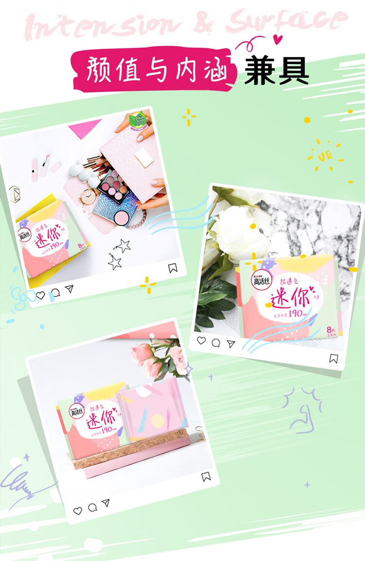 高洁丝迷你卫生巾护翼薄绵柔直条款迷你护垫卫生巾套装 少女肌直条 190mm 60片 10片*6包